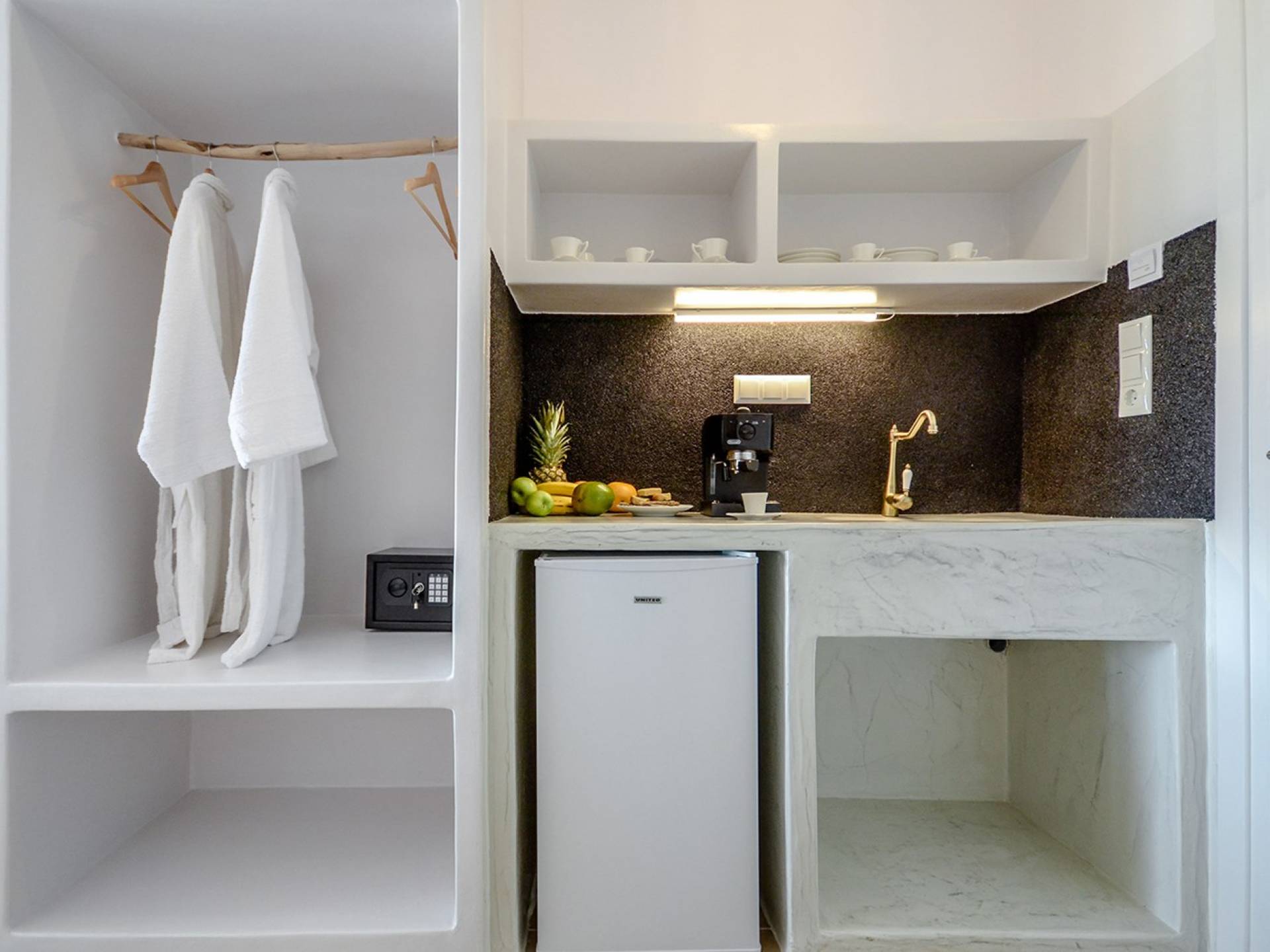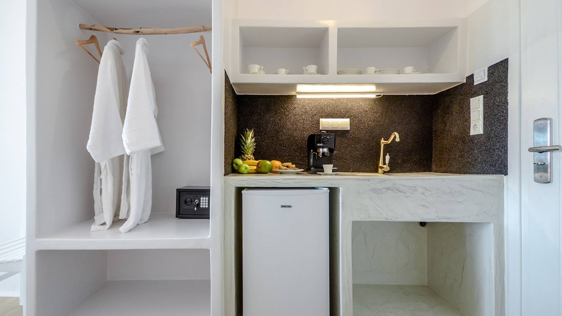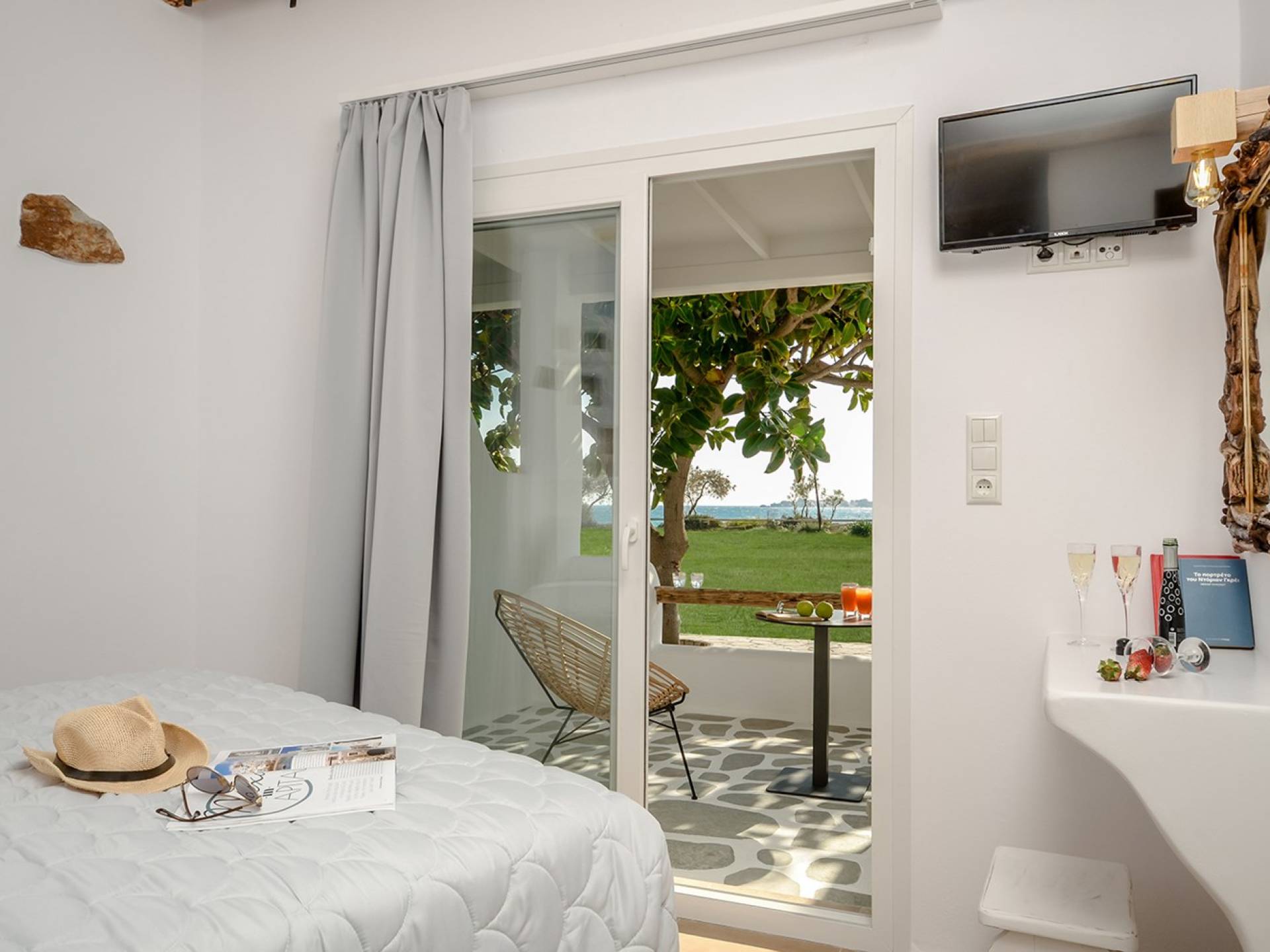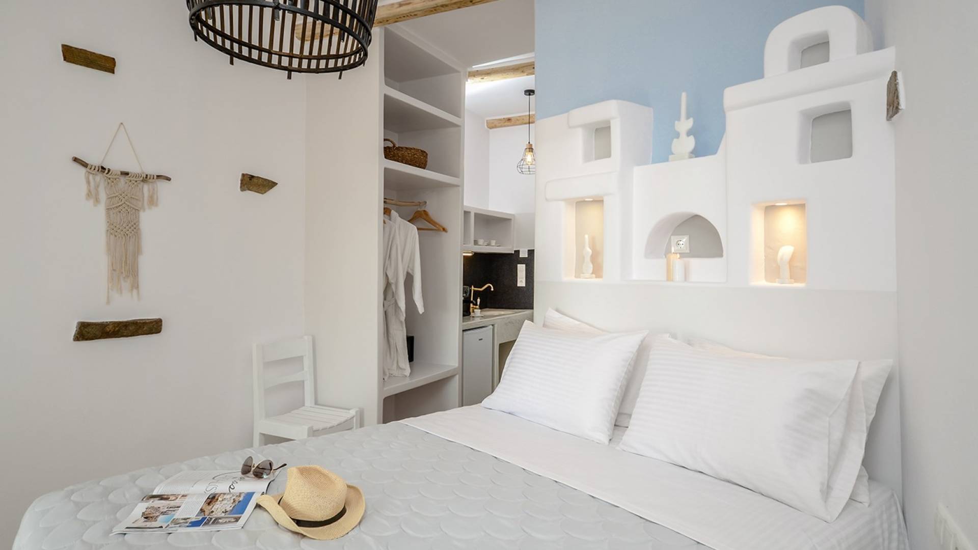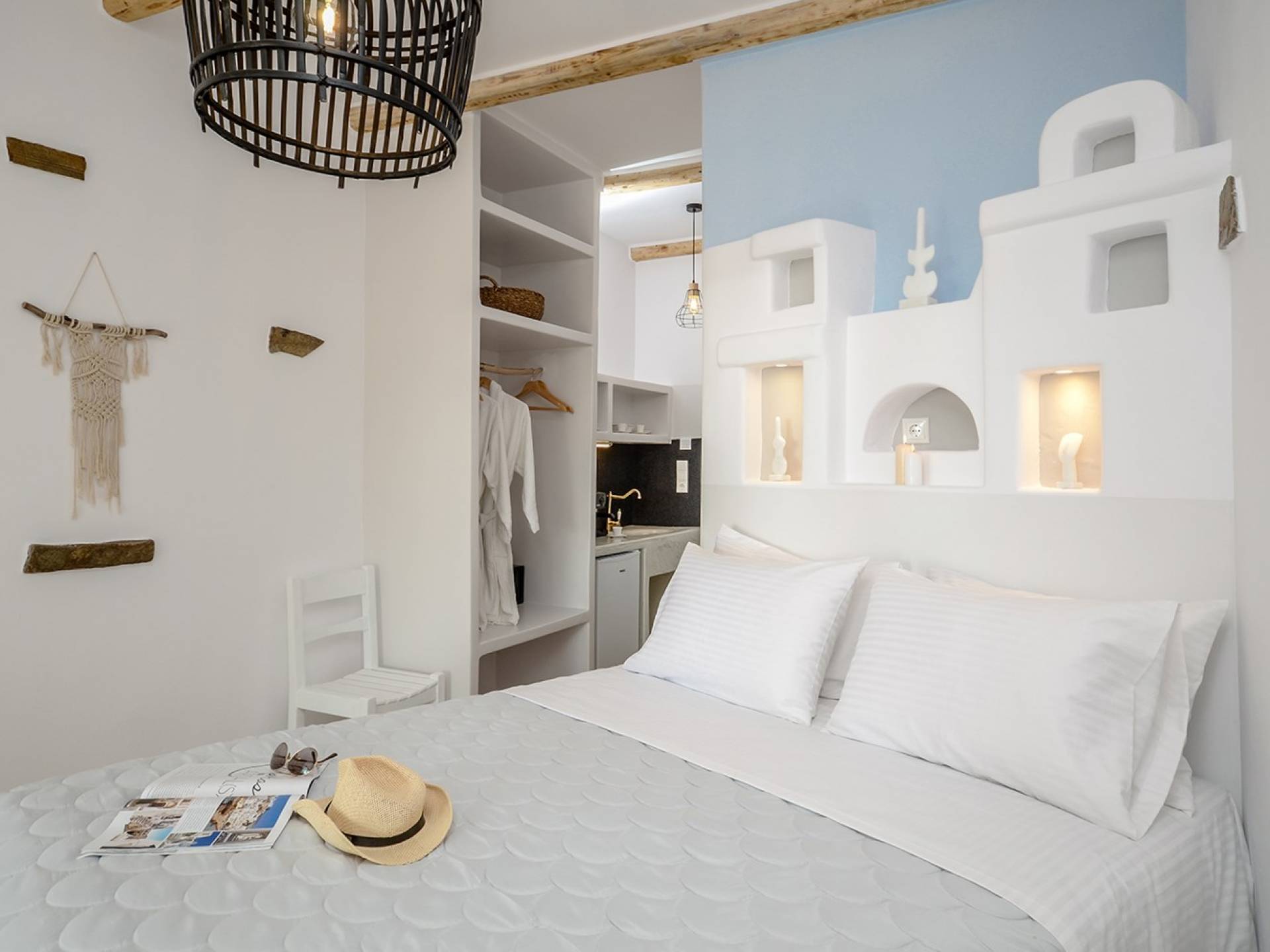 Ваш отпуск на Наксосе и Гларонисси не будет полным, если вы не испытаете гостеприимство Наксоса и не отведаете вкусных местных продуктов. Наслаждайтесь домашним завтраком, который мы предлагаем, с вкусными органическими продуктами, которые мы ежедневно собираем для вас с фермы, и ощутите подлинное гостеприимство в полной мере. Белые цвета и четкие линии доминируют в номере Deluxe Suite, освещенном большим количеством естественного света. Сочетание кикладской архитектуры с деревенскими деталями создает элегантную и удобную обстановку. Полностью оборудованный всем необходимым, он создает ощущение интимности вашего дома. Вид на море прекрасно дополняет это место и готов принять вас в утренние и вечерние минуты отдыха.