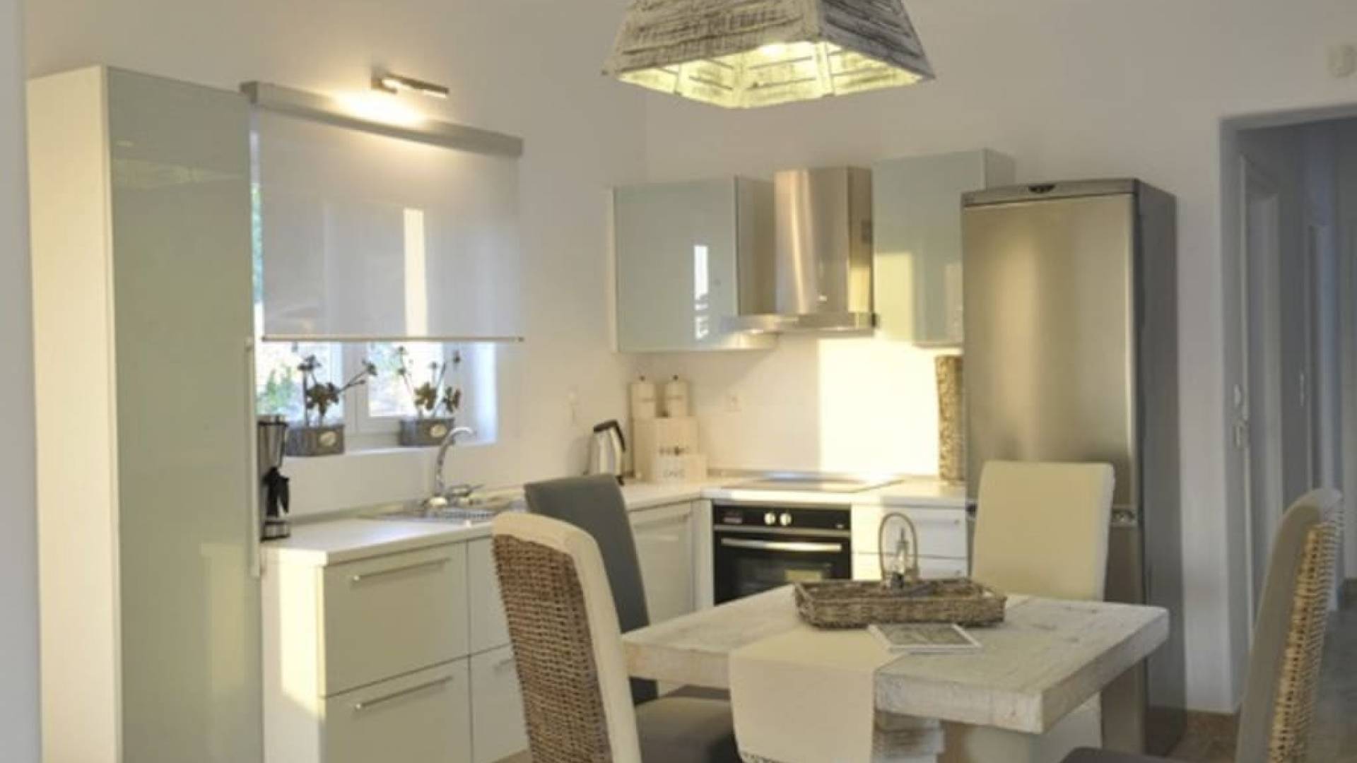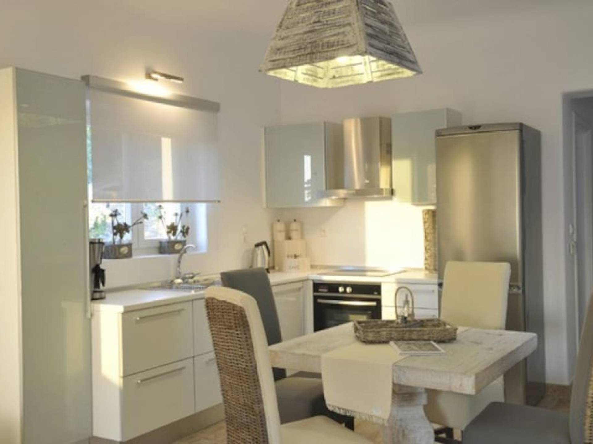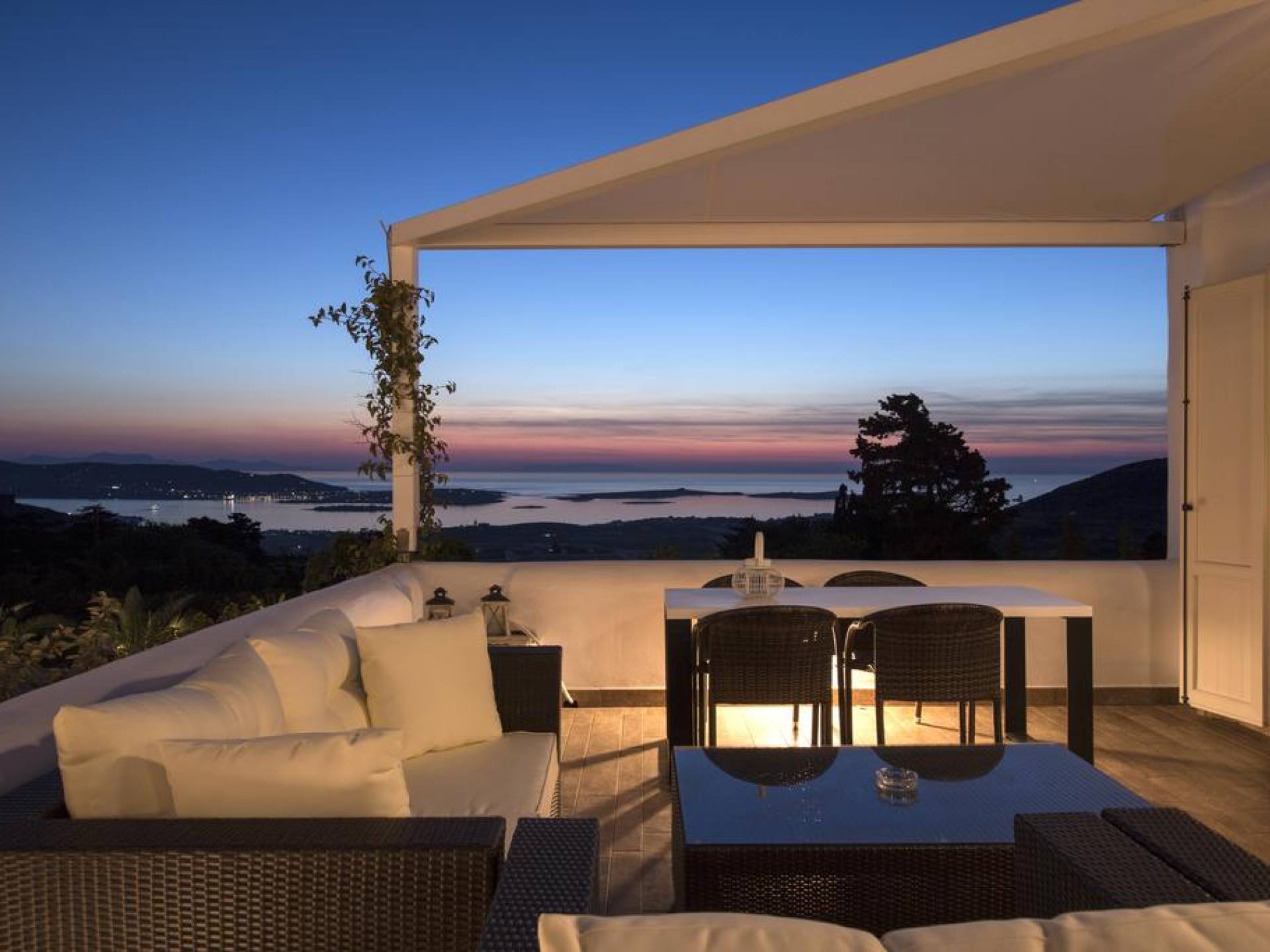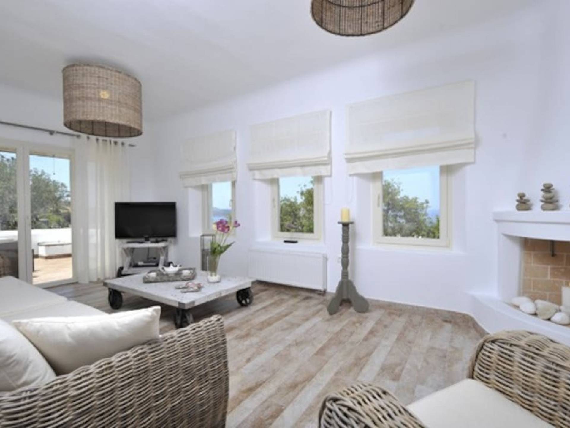 Paros Butterfly Villa 1 - это роскошная вилла в аренду с 2 спальнями с двуспальными кроватями и встроенным шкафом в одной из спален. В нем также есть ванная комната с ванной и душем-джакузи, полностью оборудованная кухня и удобная гостиная-столовая с камином. Он имеет красивую и очень удобную веранду с красивым и беспрепятственным видом на море и Антипарос. Вилла предлагает бесплатные парковочные места на частной и безопасной территории.