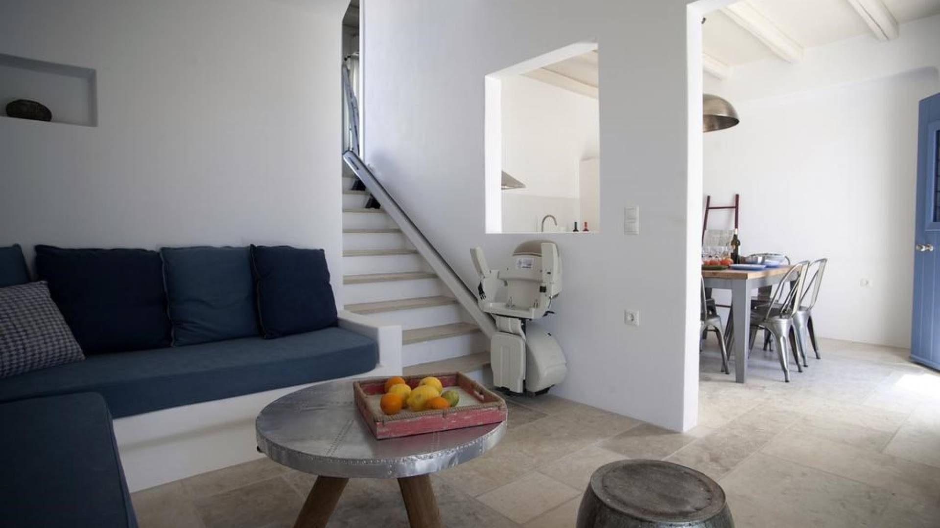 Вилла Стелла построена на двух уровнях. Это 74 кв.м. и может вместить до 6 человек. Это вилла для гостей с ограниченными физическими возможностями, предлагающая все необходимые удобства для отдыха на Паросе в Греции для гостей с особыми требованиями доступа. Первый этаж: Первый этаж полностью отвечает требованиям доступности для людей с ограниченными возможностями, обеспечивая им безопасную среду.