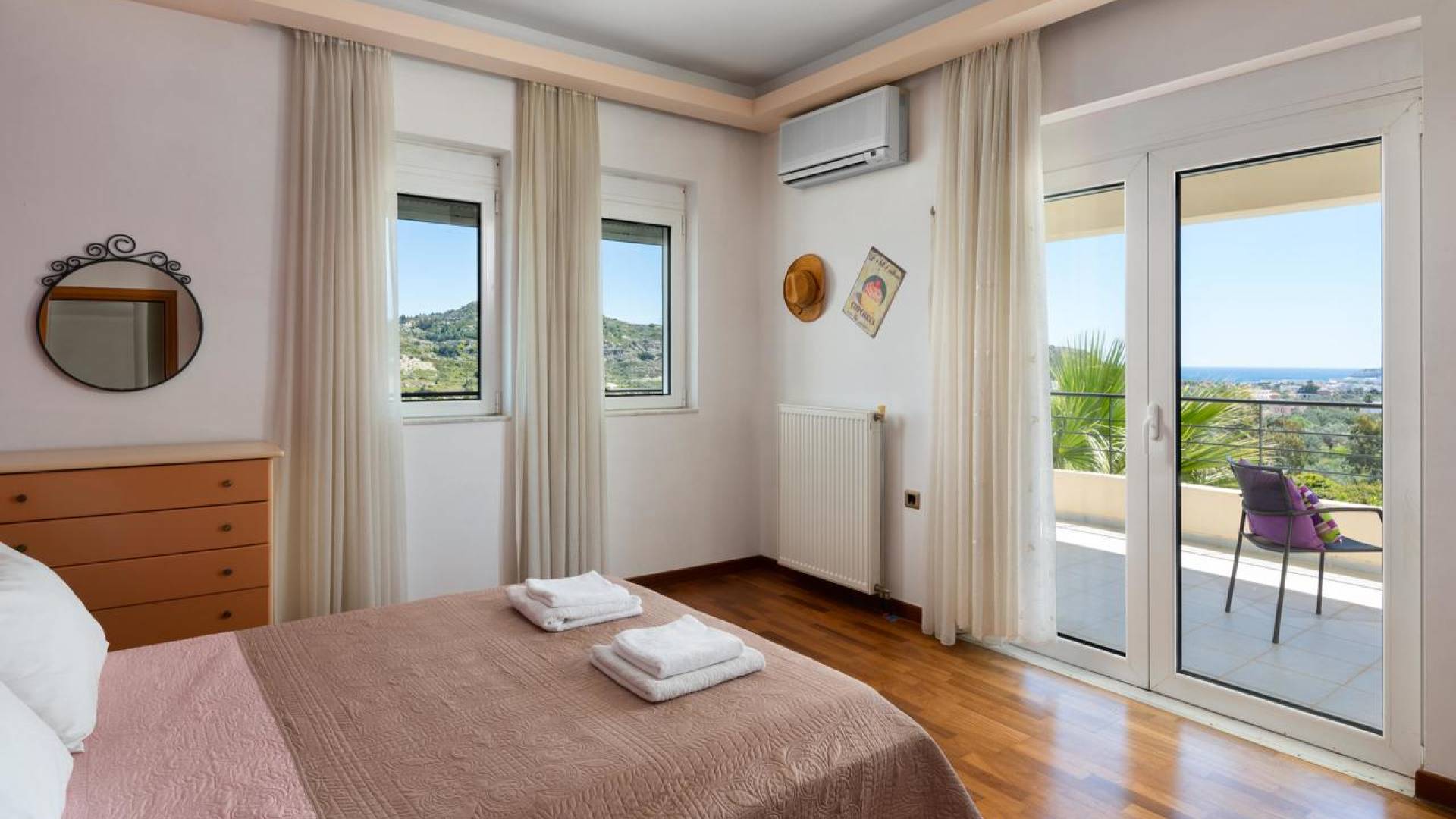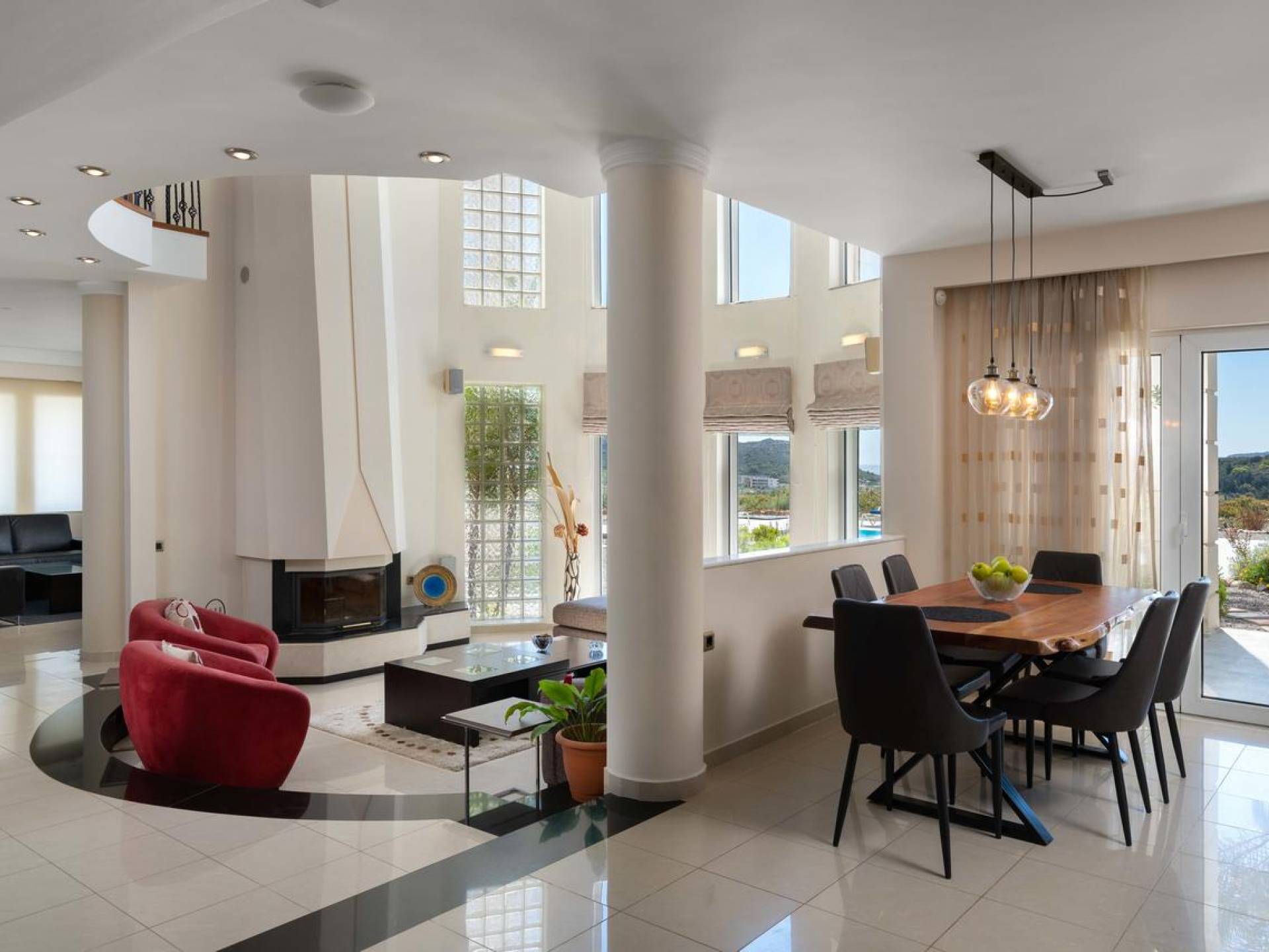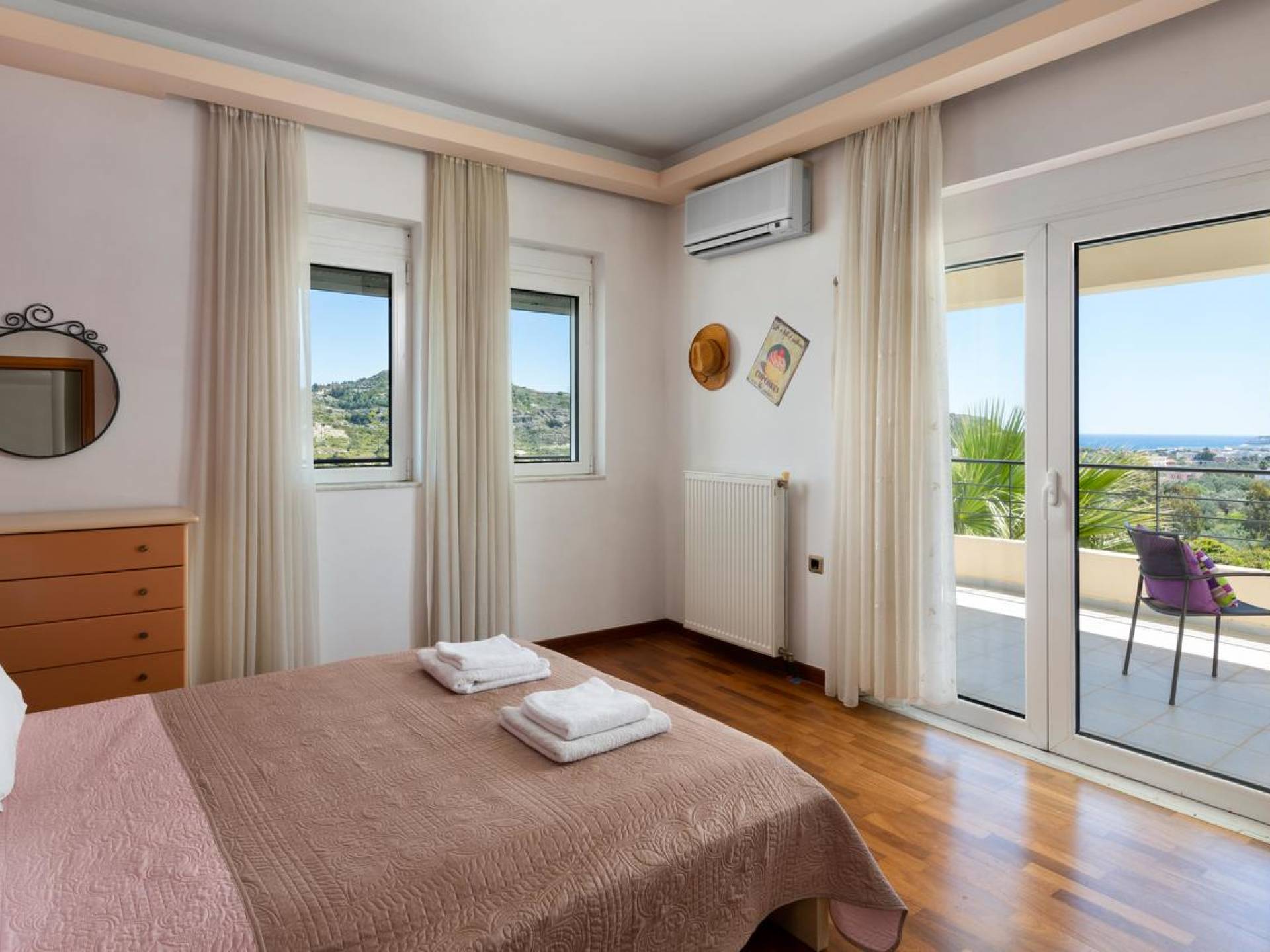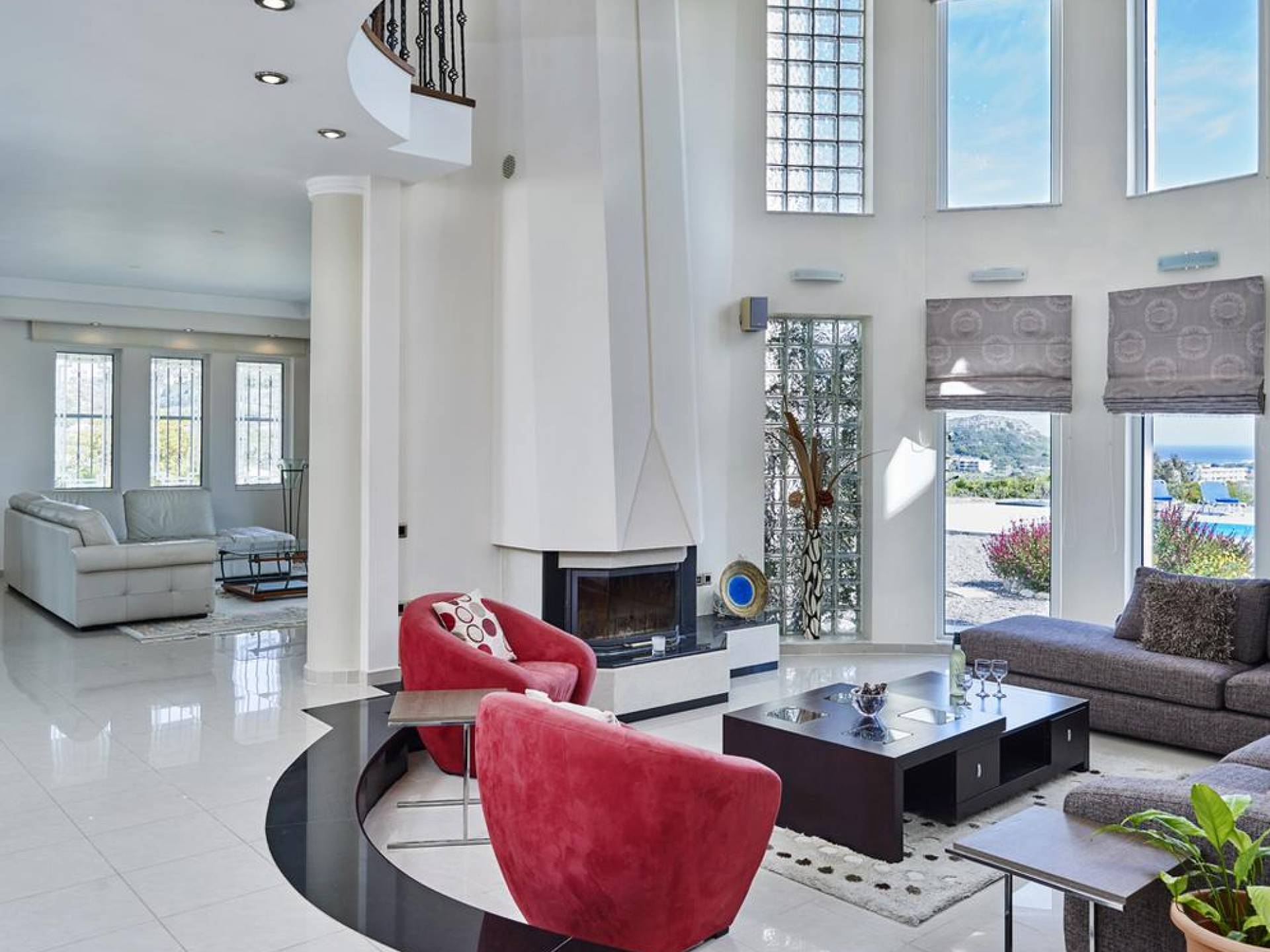 Вилла Andrealexia Rhodes расположена на холме с видом на залив Фалираки. Он уединенный и обеспечивает всю необходимую конфиденциальность, но в то же время идеально расположен для знакомства с островом в случае необходимости. Andrealexia - это очень просторная вилла с потолком высотой 12 футов, что делает дом очень ярким и веселым. Весь первый этаж представляет собой полностью открытое пространство, поэтому с одного взгляда можно увидеть всю жилую зону. Из обеих гостиных открывается вид на море, а также стоит стол для завтрака.