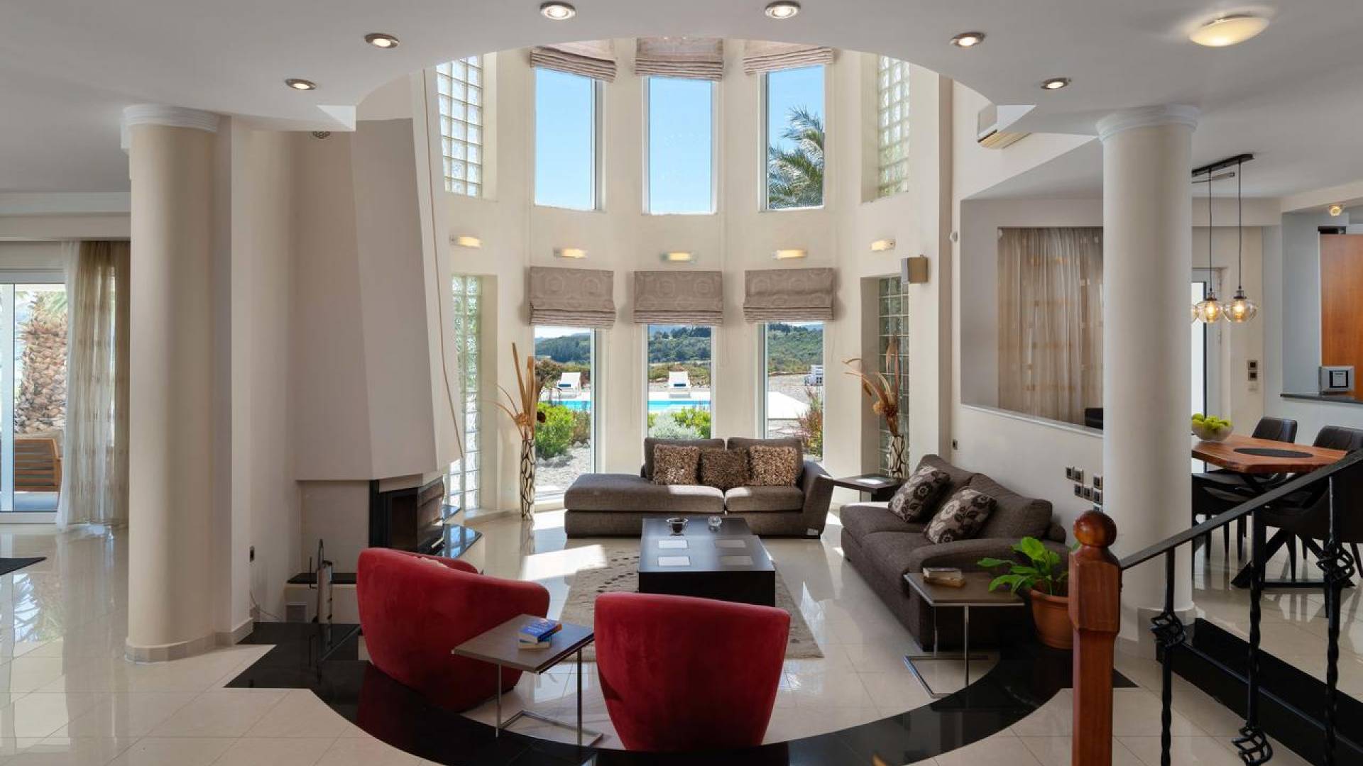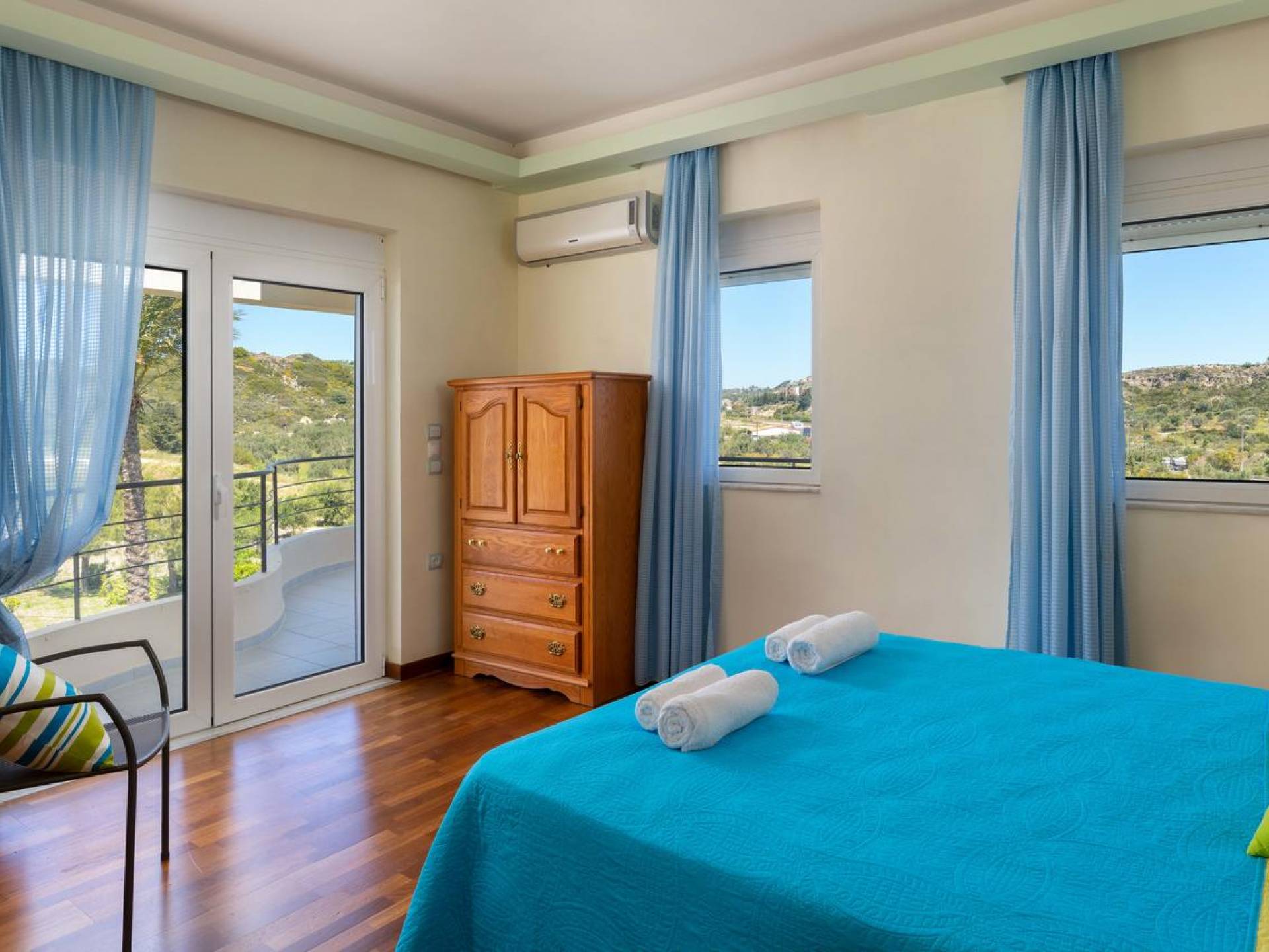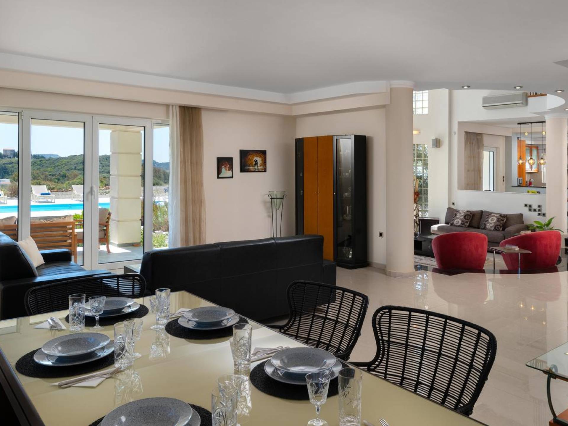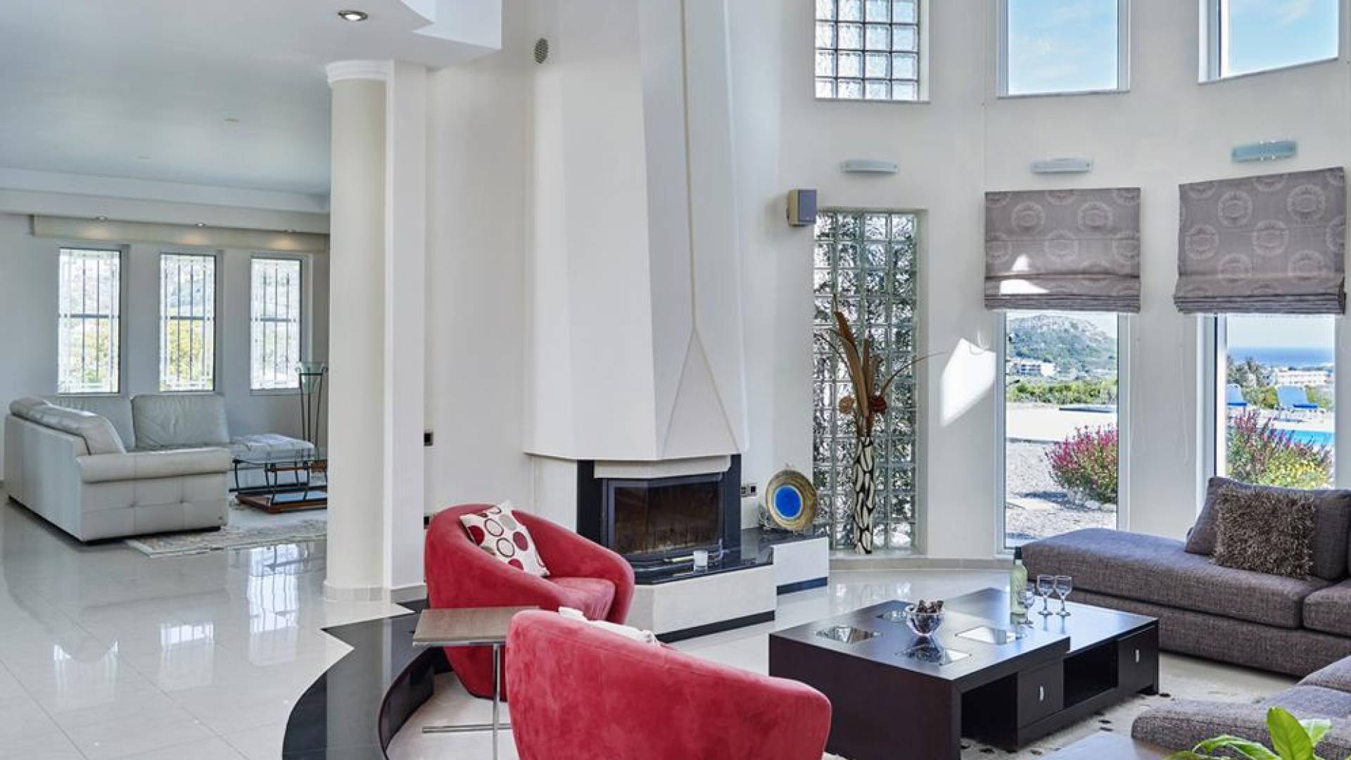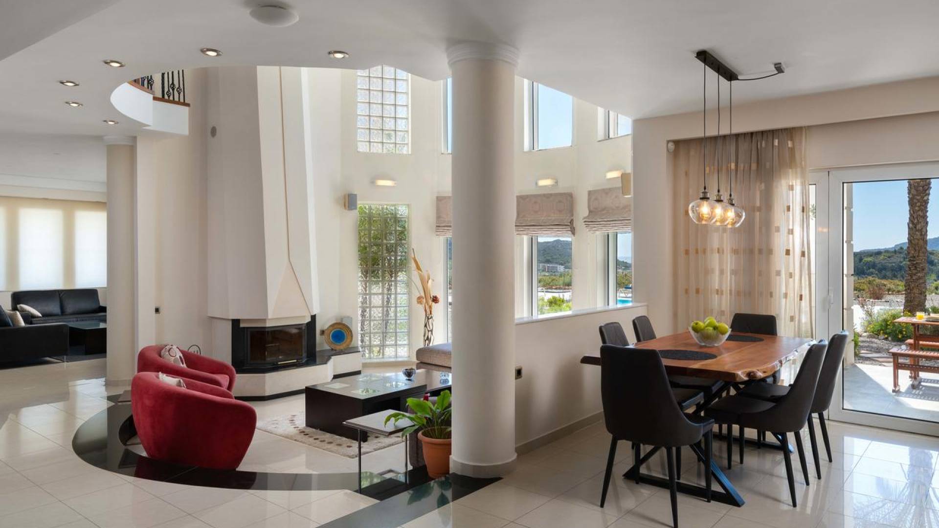 Вилла Andrealexia Rhodes расположена на холме с видом на залив Фалираки. Он уединенный и обеспечивает всю необходимую конфиденциальность, но в то же время идеально расположен для знакомства с островом в случае необходимости. Andrealexia - это очень просторная вилла с потолком высотой 12 футов, что делает дом очень ярким и веселым. Весь первый этаж представляет собой полностью открытое пространство, поэтому с одного взгляда можно увидеть всю жилую зону. Из обеих гостиных открывается вид на море, а также стоит стол для завтрака.
