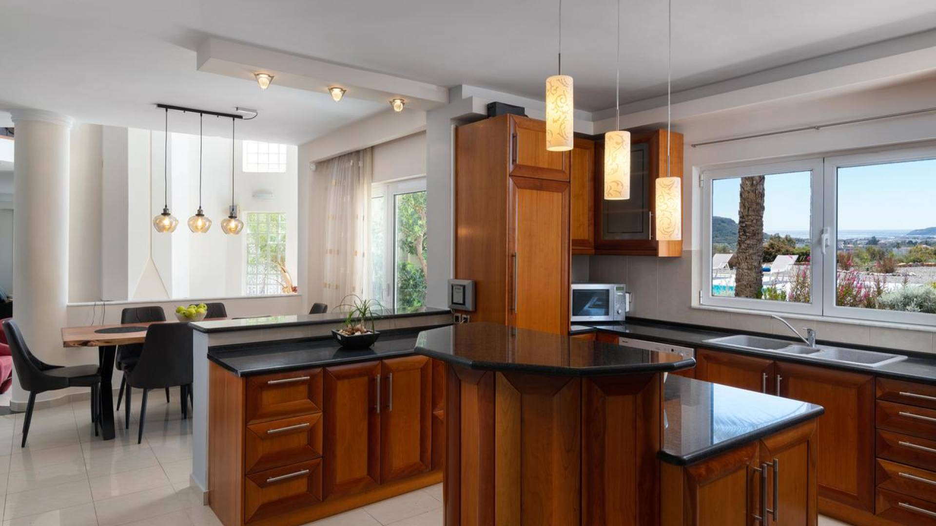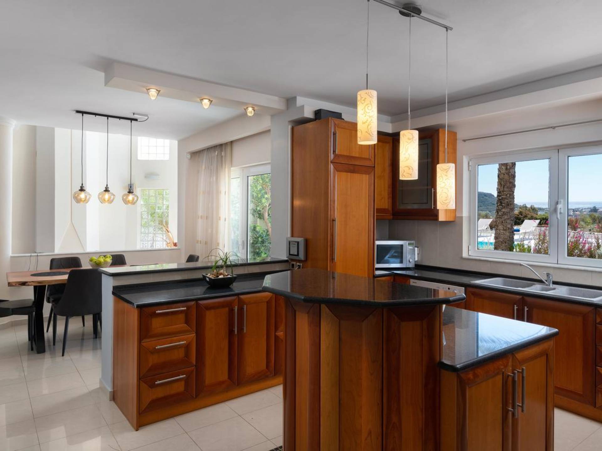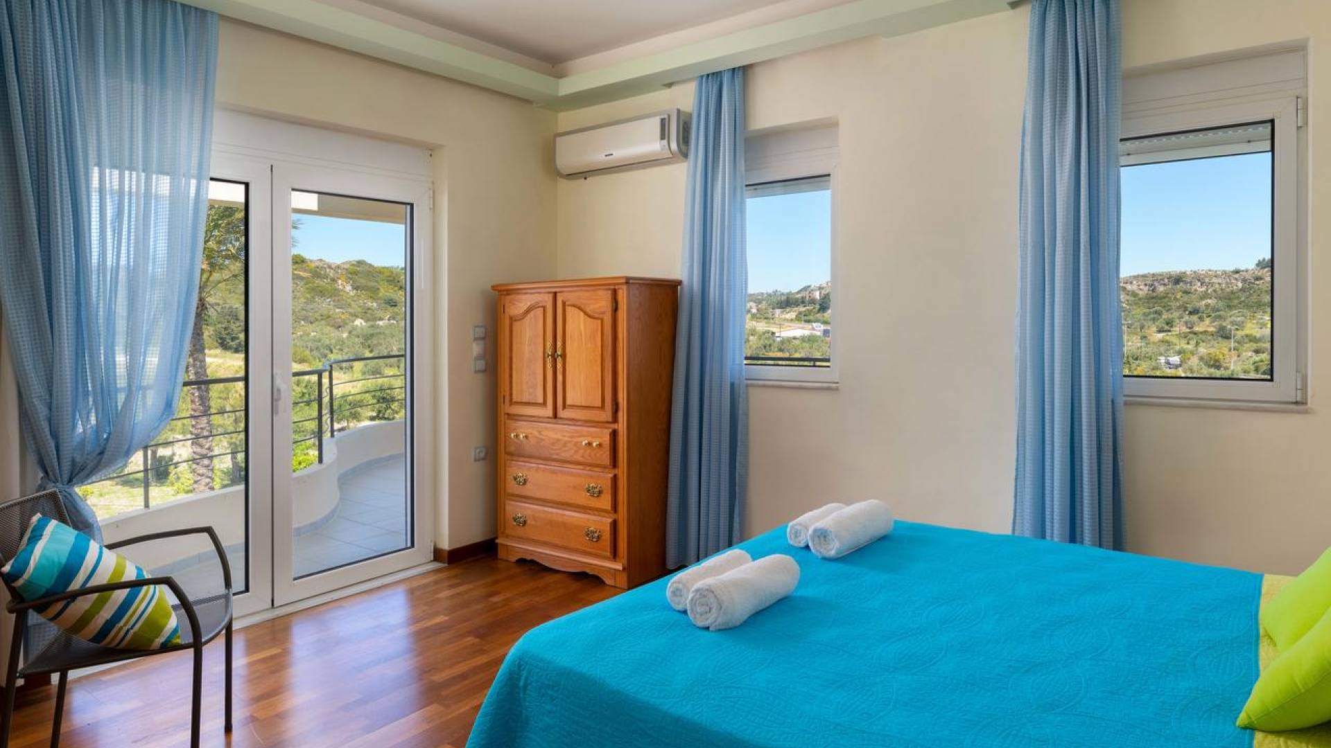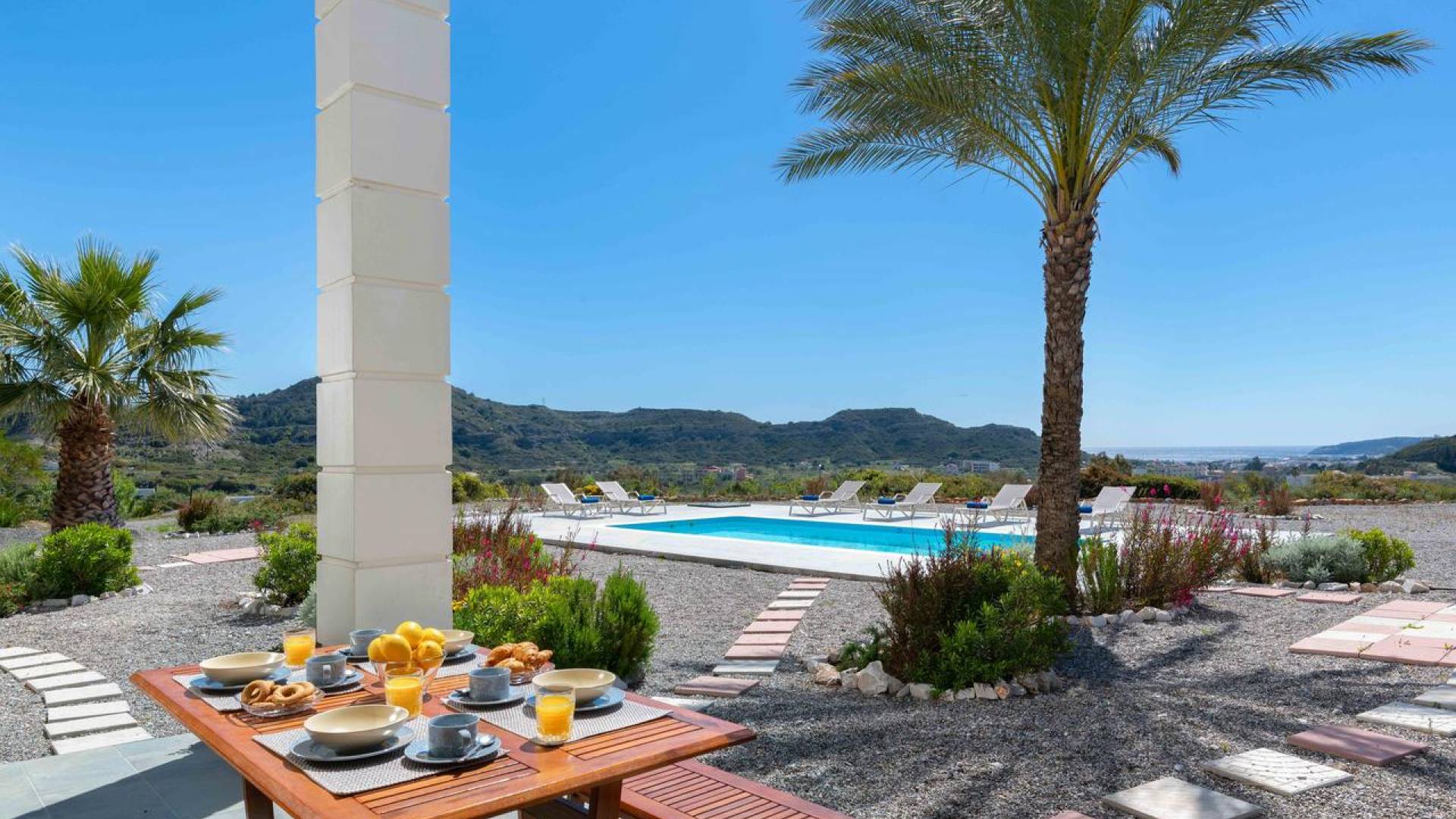 Вилла Andrealexia Rhodes расположена на холме с видом на залив Фалираки. Он уединенный и обеспечивает всю необходимую конфиденциальность, но в то же время идеально расположен для знакомства с островом в случае необходимости. Andrealexia - это очень просторная вилла с потолком высотой 12 футов, что делает дом очень ярким и веселым. Весь первый этаж представляет собой полностью открытое пространство, поэтому с одного взгляда можно увидеть всю жилую зону. Из обеих гостиных открывается вид на море, а также стоит стол для завтрака.
