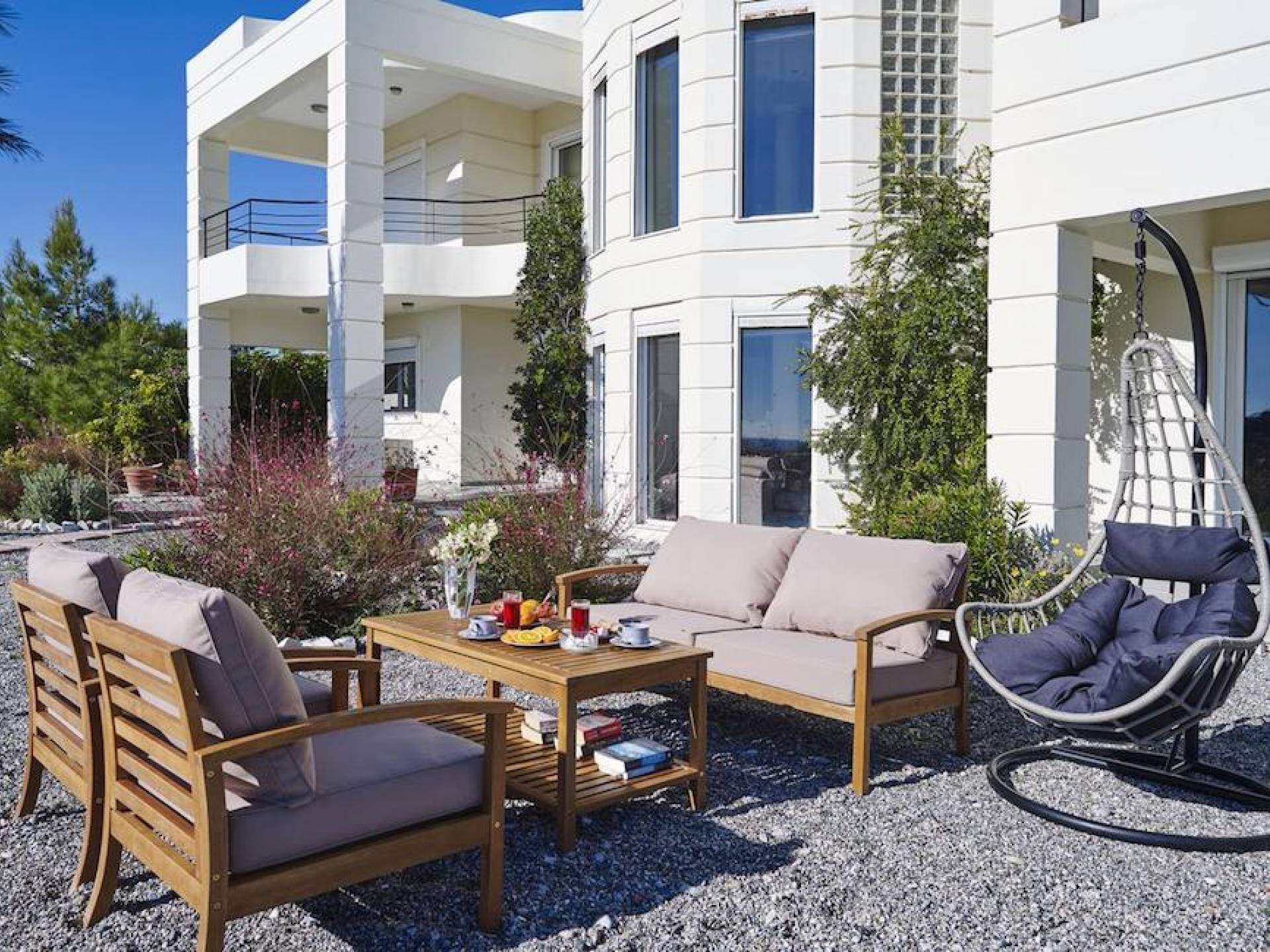 Andrealexia Villa Rhodes может принять до 8 человек. Полностью оборудован Wi-Fi в доме. Есть принтер и офис для тех, кому нужно совместить работу и отпуск, а также USB-стереосистема. Летом в саду растут абрикосовые деревья, а зимой - апельсиновые и мандариновые деревья. Уборщик будет приходить два раза в неделю.
