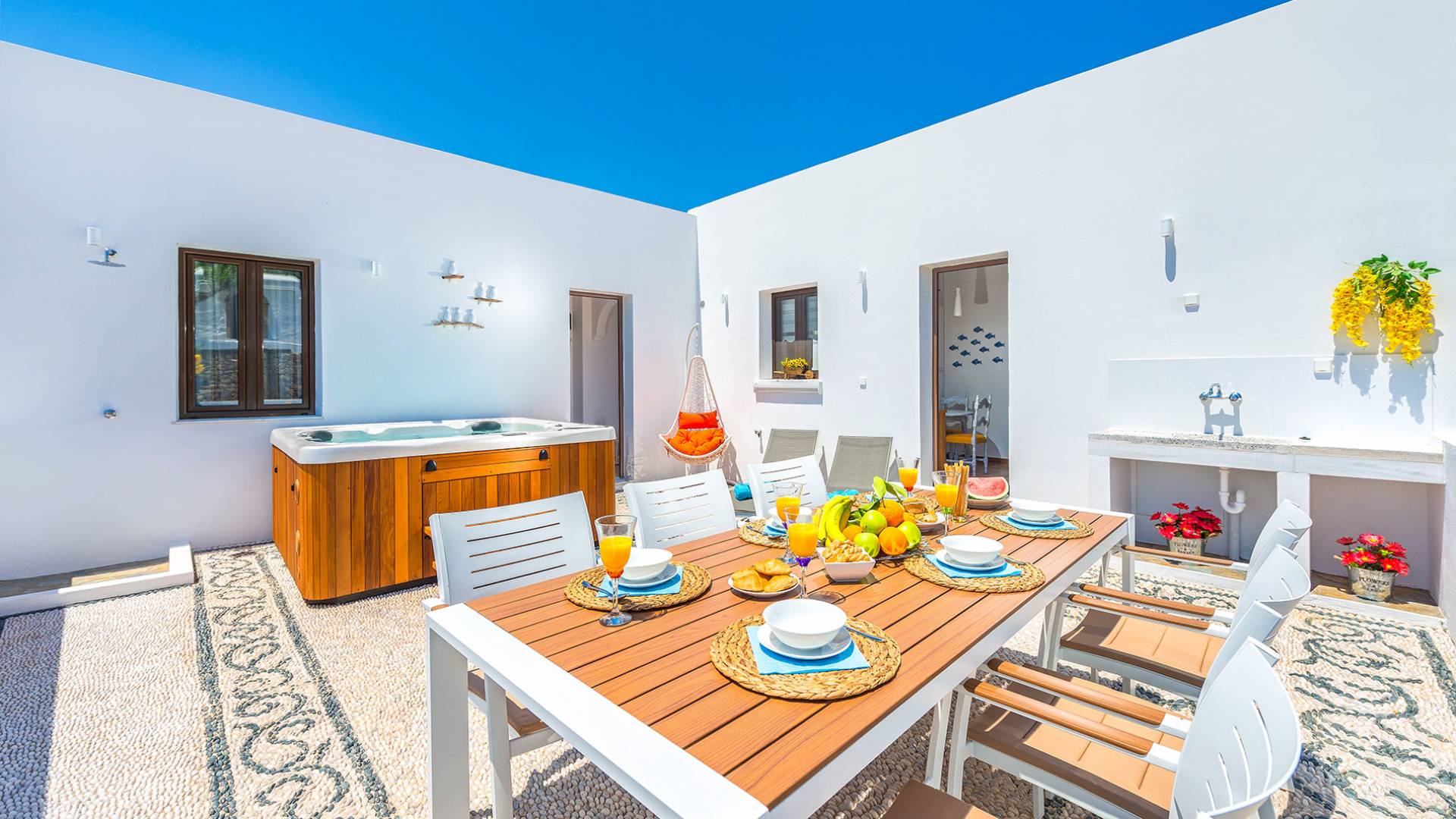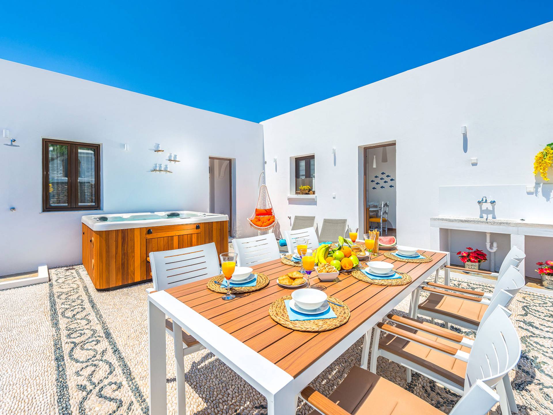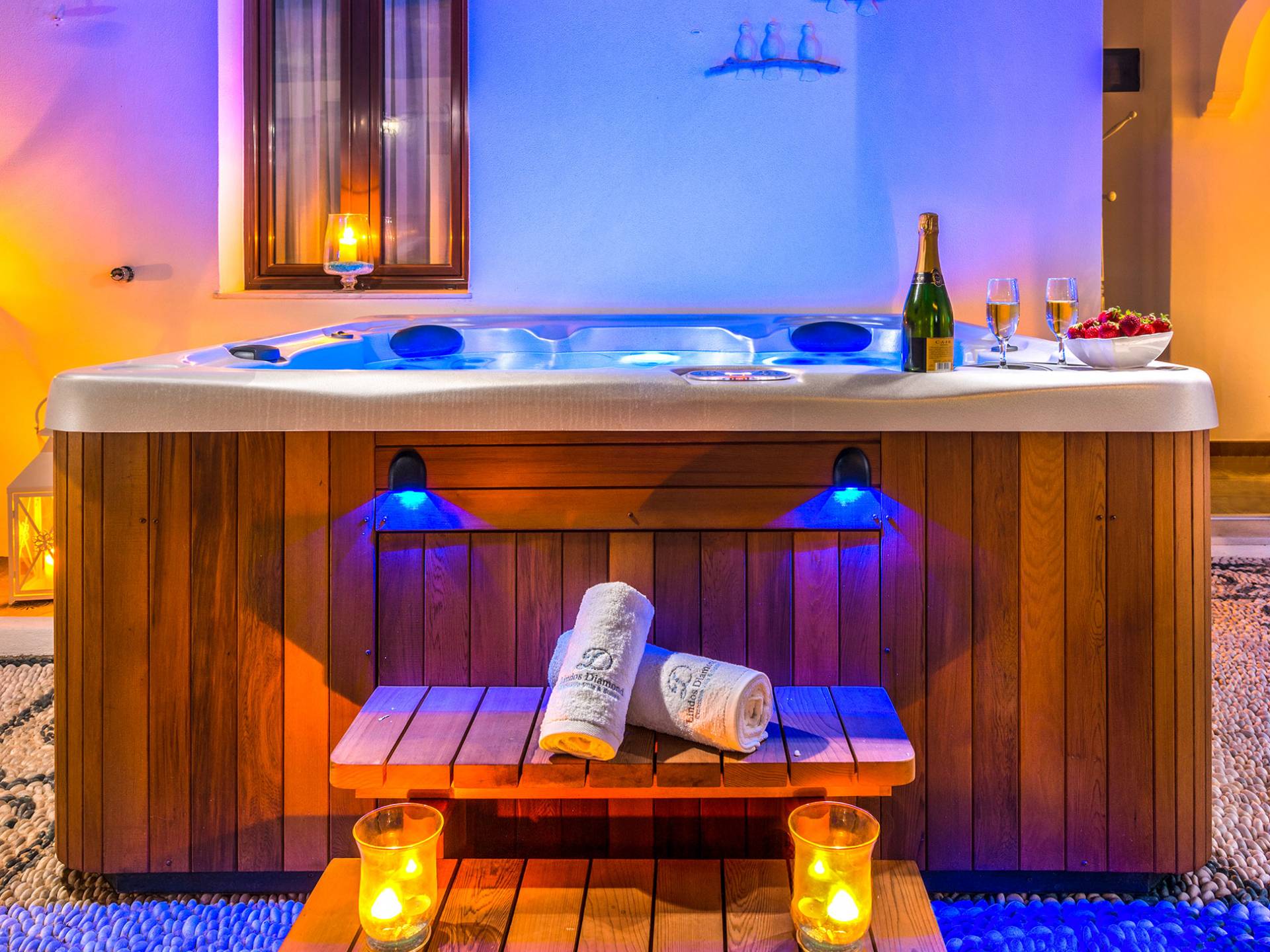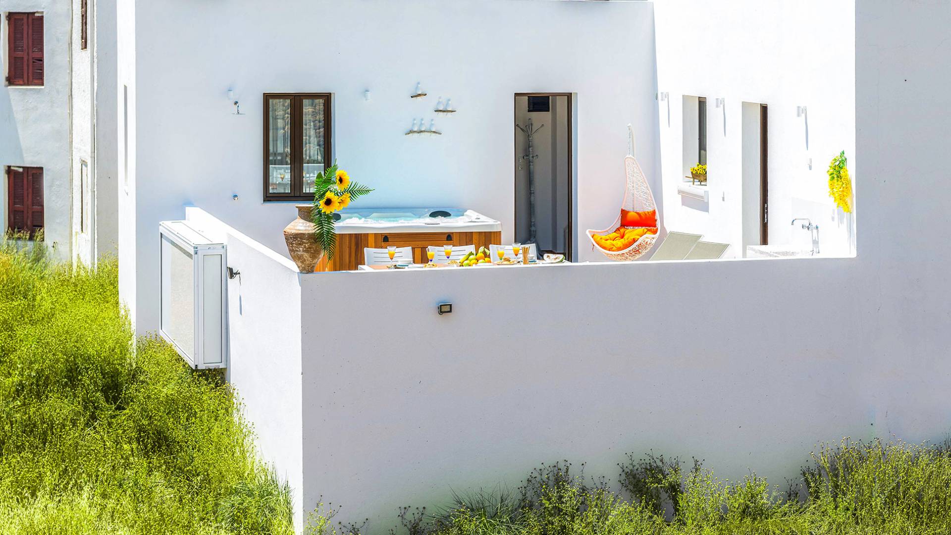 Прямо за этим окном вы можете найти большой, самый уединенный и в то же время самый спокойный солнечный двор под открытым небом с большой открытой гидромассажной ванной, а также отдохнуть на шезлонгах или пообедать на открытом воздухе рядом с древним амфитеатром Линдоса, с великолепный вид на популярную скалу Акрополя Линдоса и рядом с площадью Святого Стефана! Ночью приглушенный свет дает вам романтическую и в то же время очень умиротворяющую атмосферу расслабления и спокойствия у гидромассажной ванны и под чудесным Акрополем Линдоса.