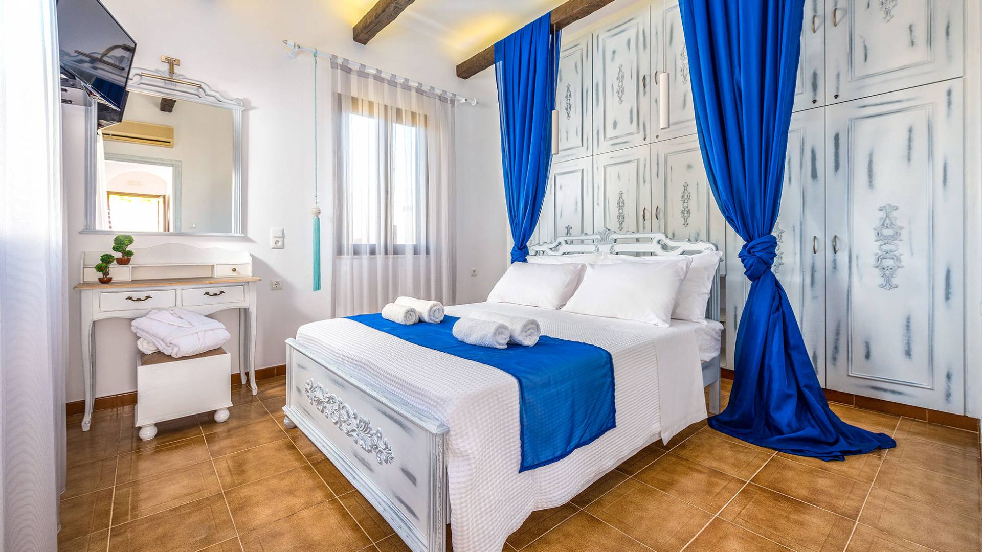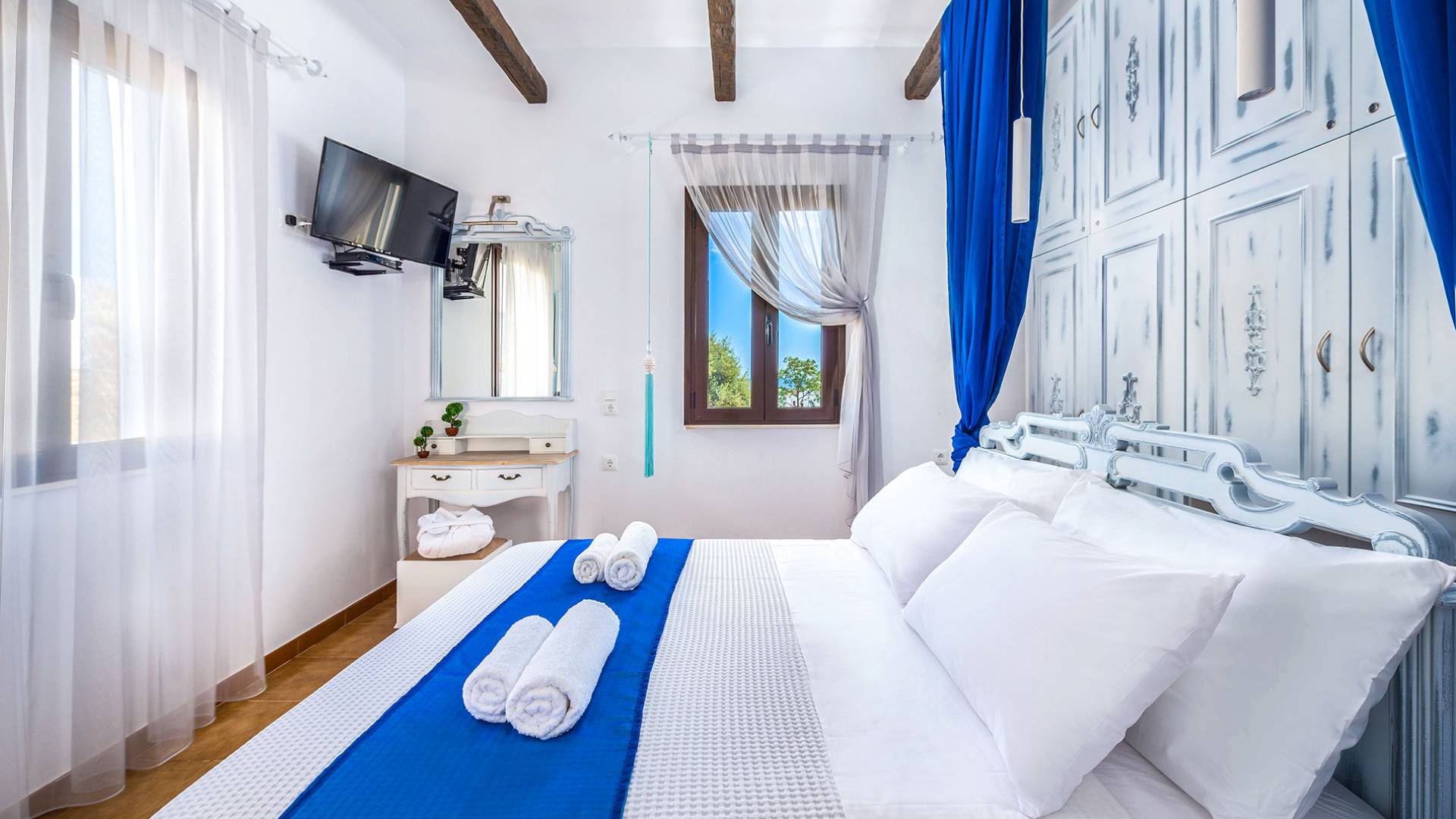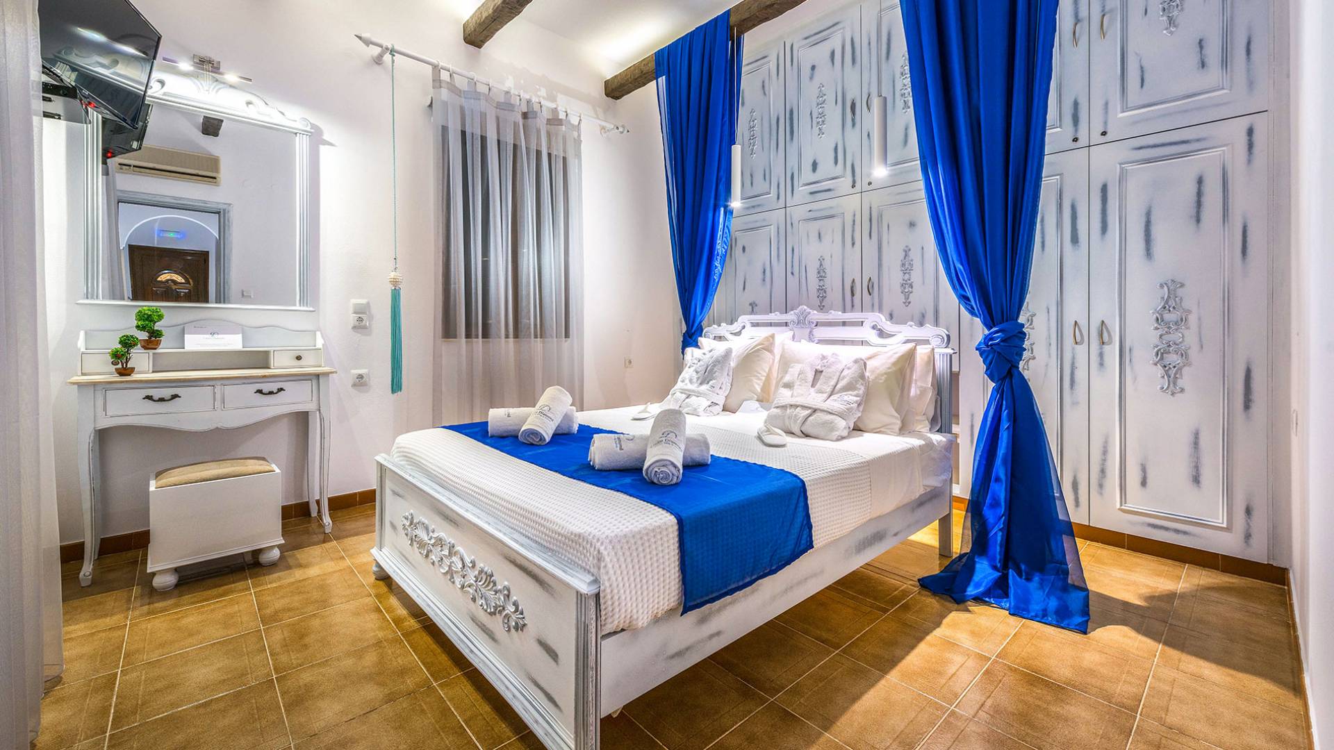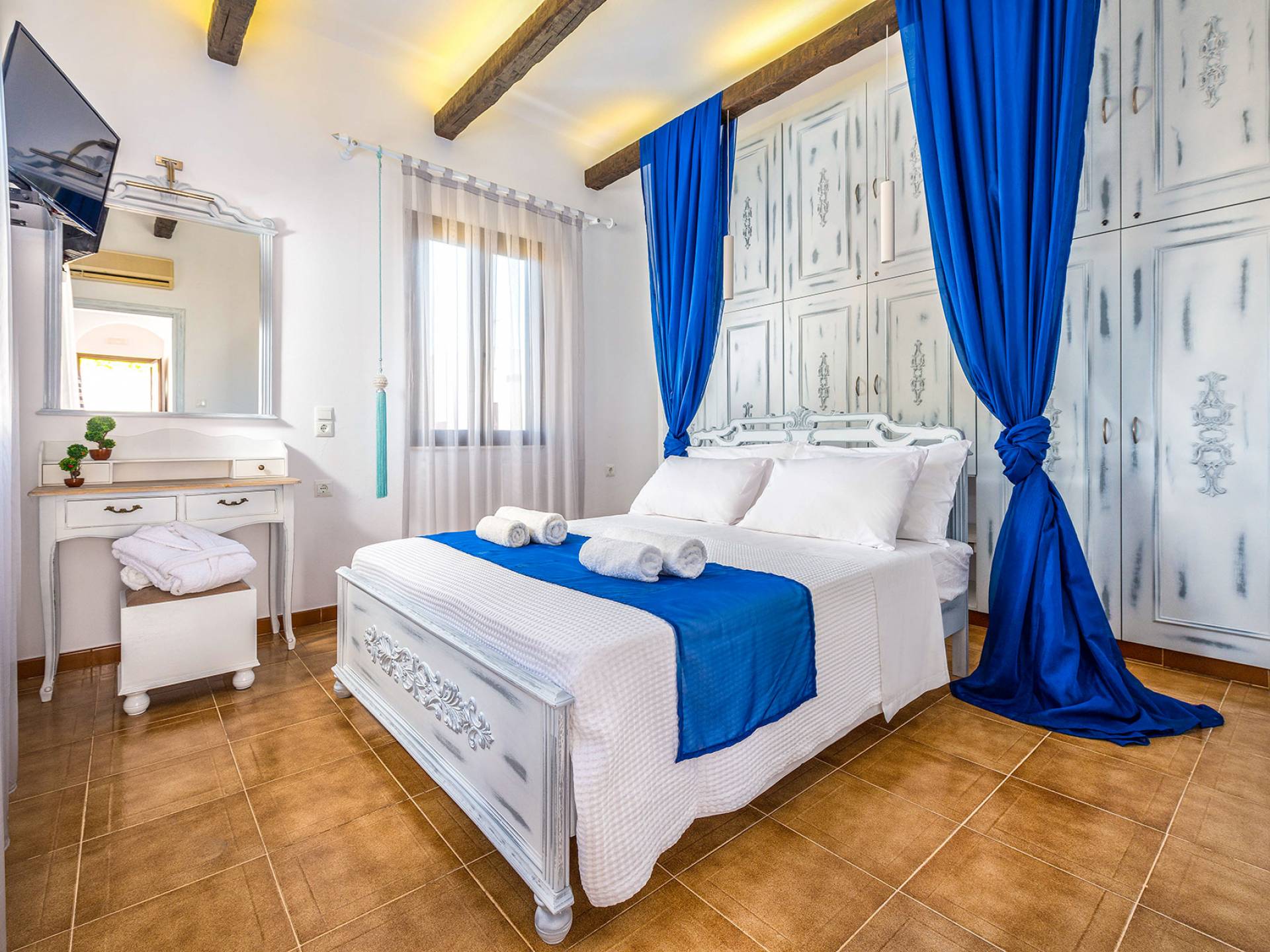 И последнее, но не менее важное: главная личная спальня с традиционно оформленным потолком и небольшим красивым сюрпризом с автоматически управляемыми светодиодными светильниками, большим и вместительным шкафом от стены до стены, двойным матрасом и подушками Cocomat (включая выбор подушек от Cocomat). Cocomat на выбор), большой плоский телевизор со спутниковыми каналами и сейф, а также потрясающий вид из окна на Акрополь Линдоса подарят вам расслабляющий и в то же время спокойный сон.