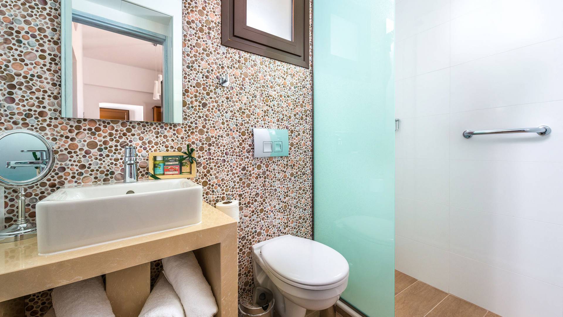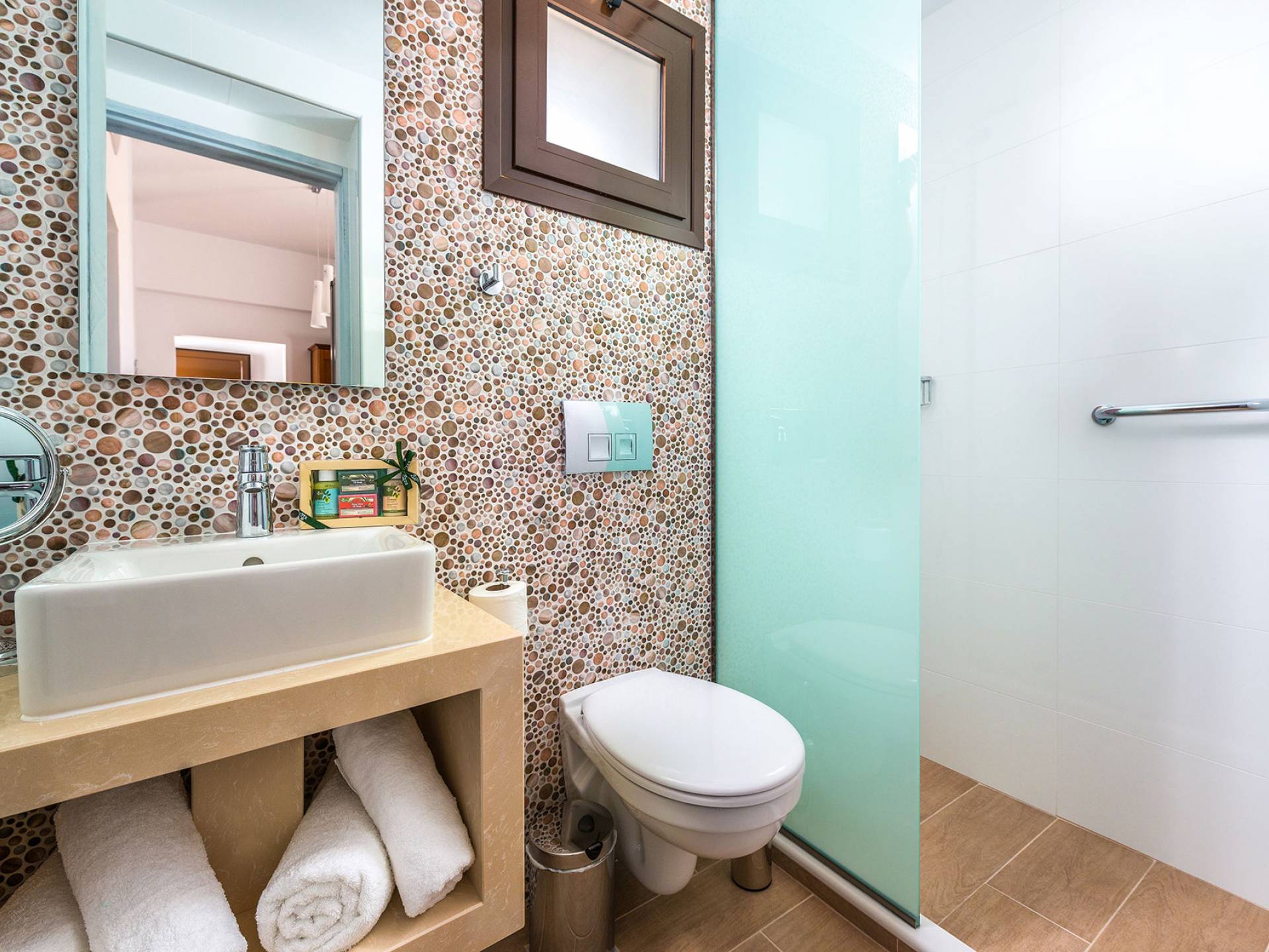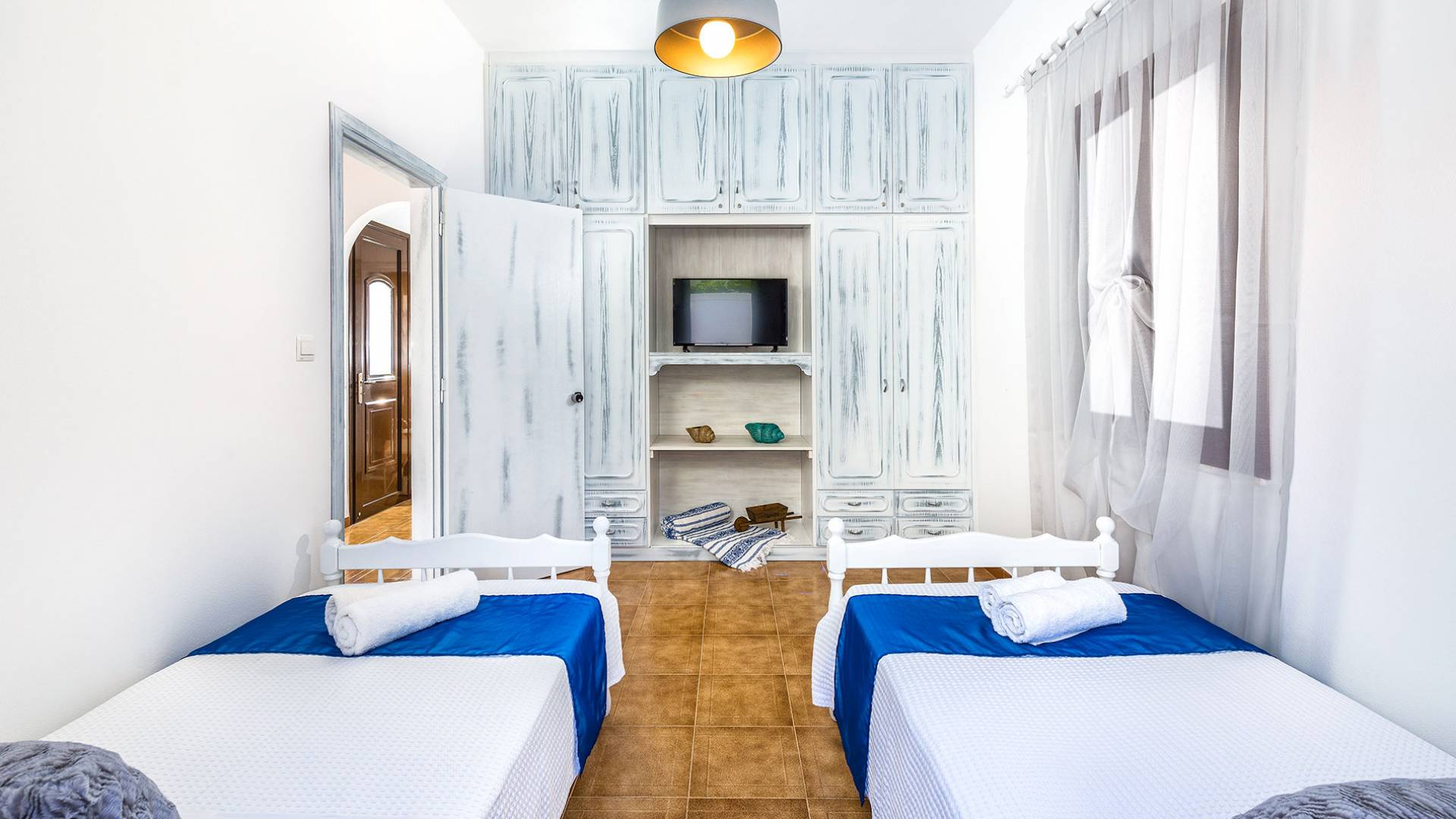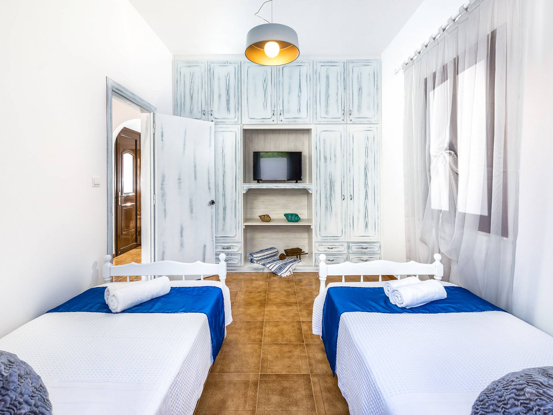 И последнее, но не менее важное: главная личная спальня с традиционно оформленным потолком и небольшим красивым сюрпризом с автоматически управляемыми светодиодными светильниками, большим и вместительным шкафом от стены до стены, двойным матрасом и подушками Cocomat (включая выбор подушек от Cocomat). Cocomat на выбор), большой плоский телевизор со спутниковыми каналами и сейф, а также потрясающий вид из окна на Акрополь Линдоса подарят вам расслабляющий и в то же время спокойный сон.