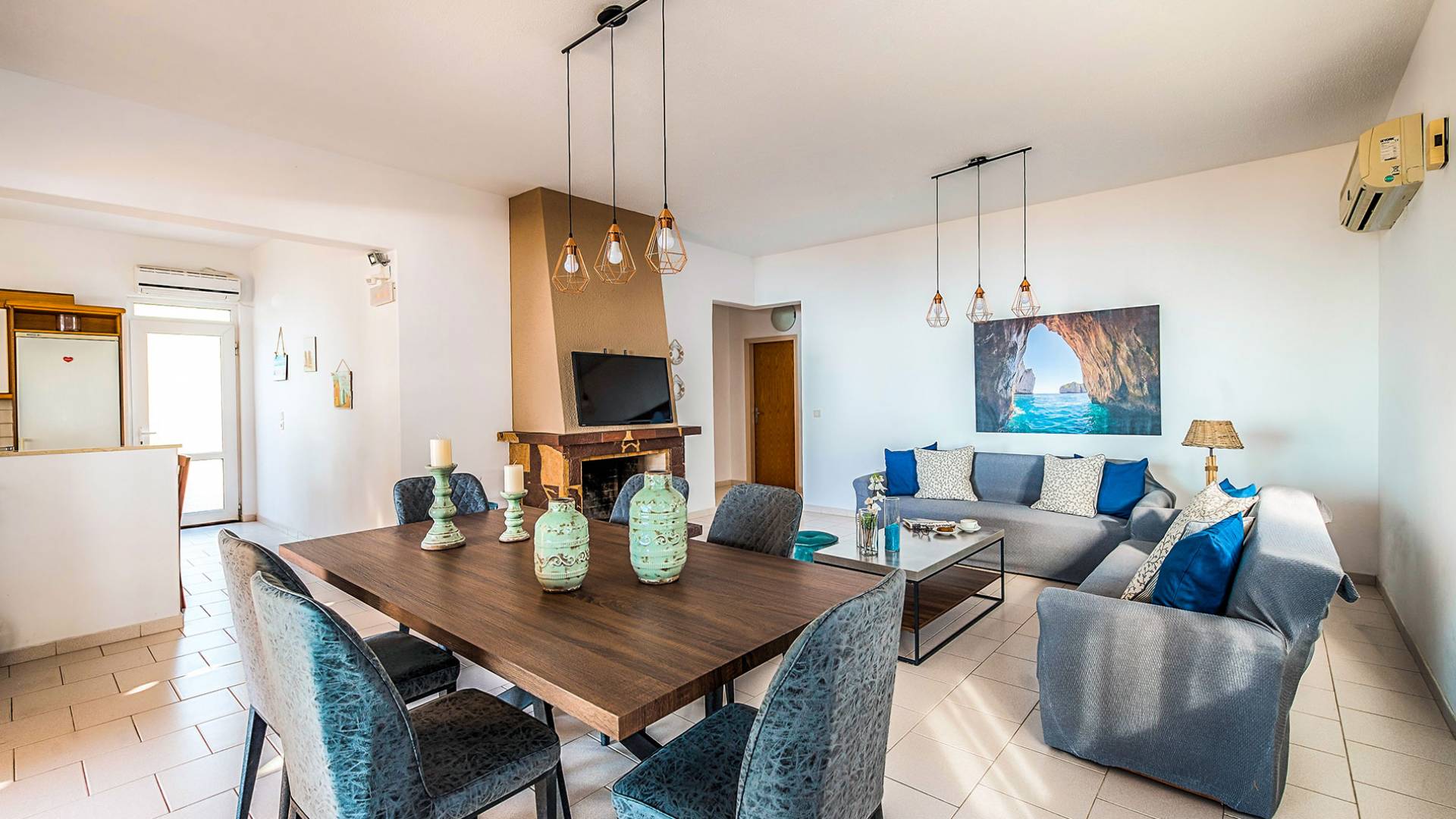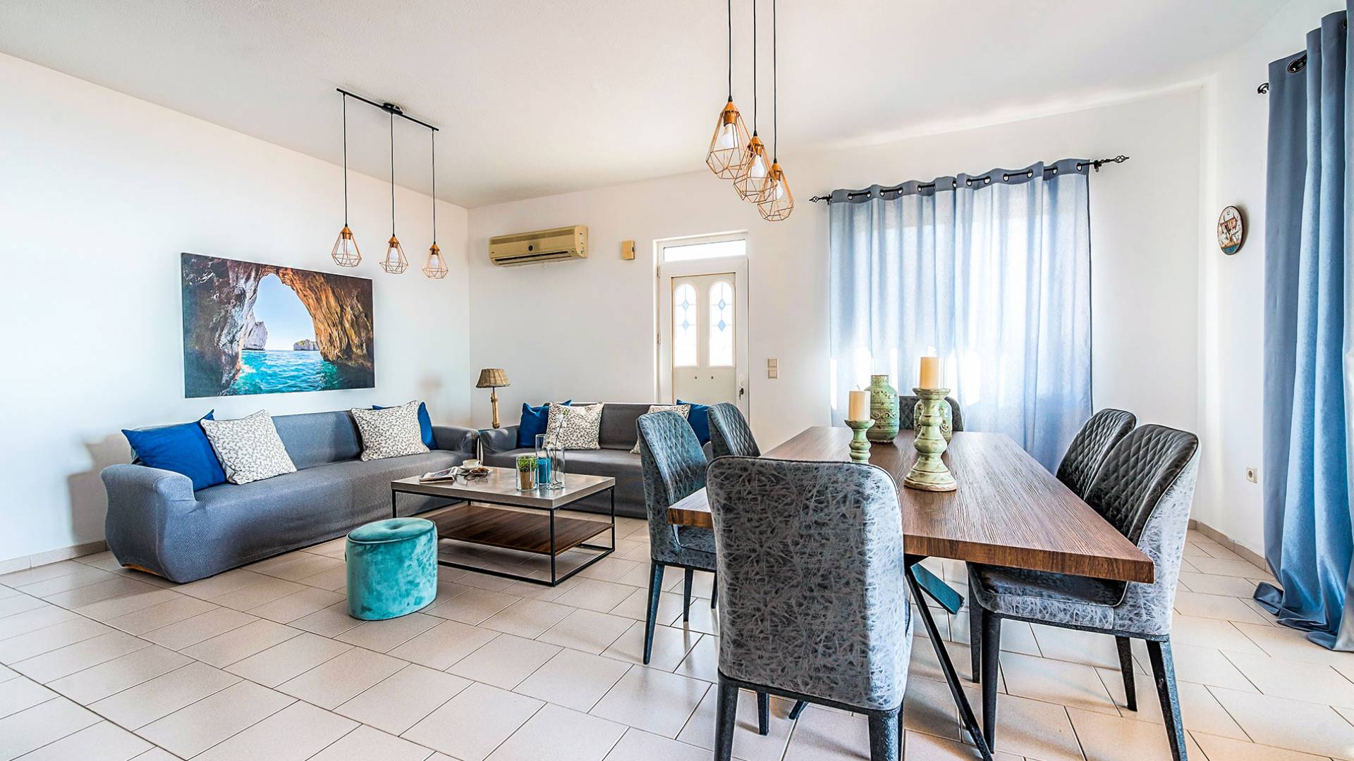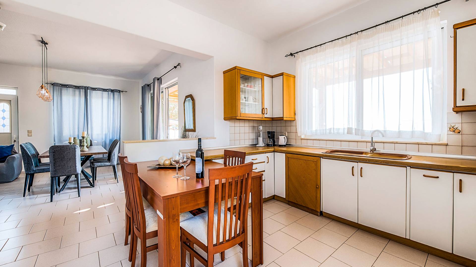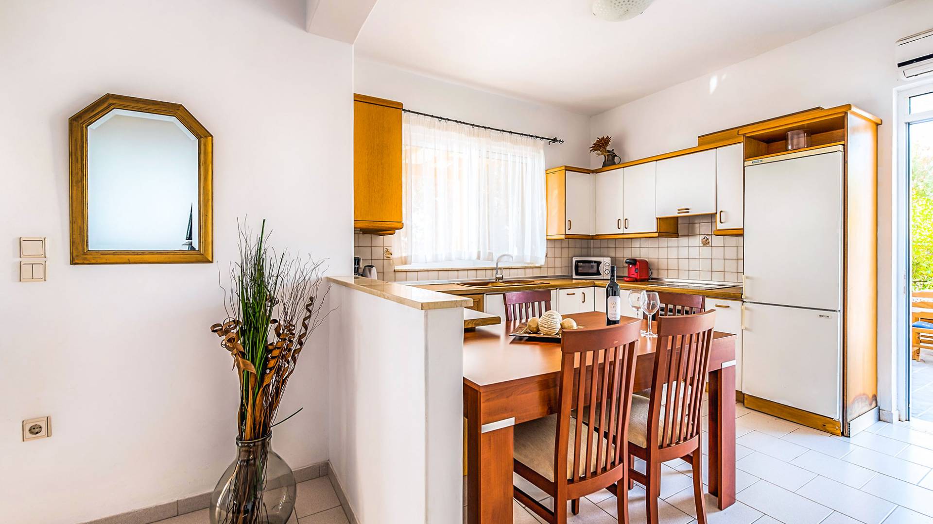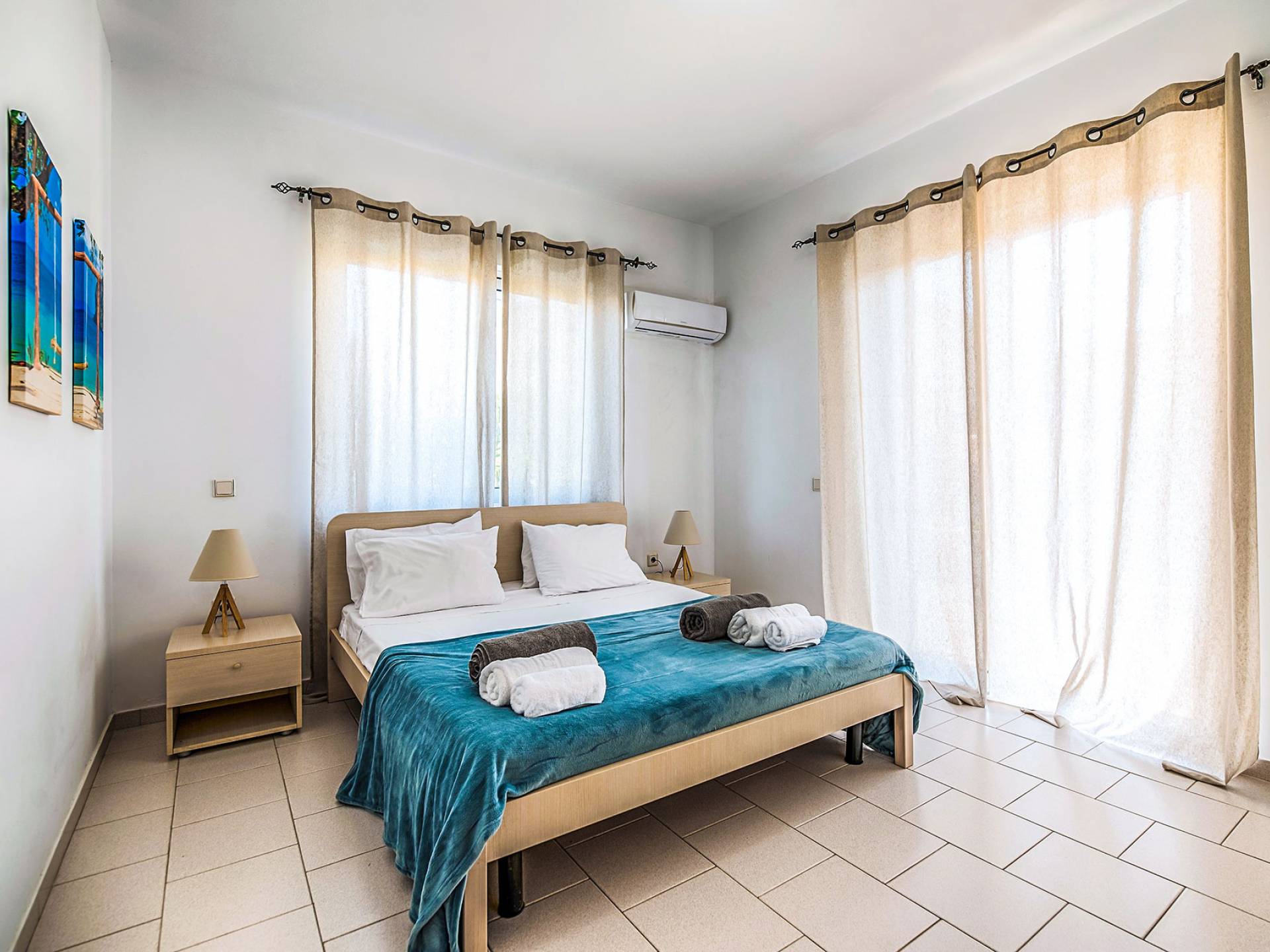 Пляжная вилла Perla Rhodes состоит из 3 спален, гостиной открытой планировки с двумя односпальными диванами-кроватями, обеденной зоны и зоны отдыха с телевизором с плоским экраном, а также 2 ванных комнат с душем. Имеется полностью оборудованная кухня (включая холодильник, электрическую плиту и все необходимые мелкие и крупные электроприборы) для приготовления любых блюд по вашему желанию. Из кухни и гостиной/столовой открывается потрясающий панорамный вид на море на 180°.