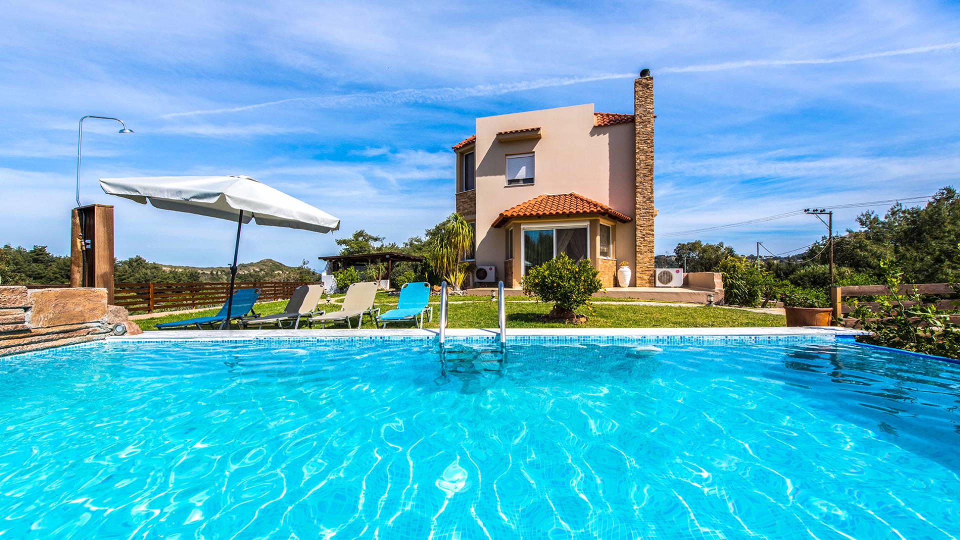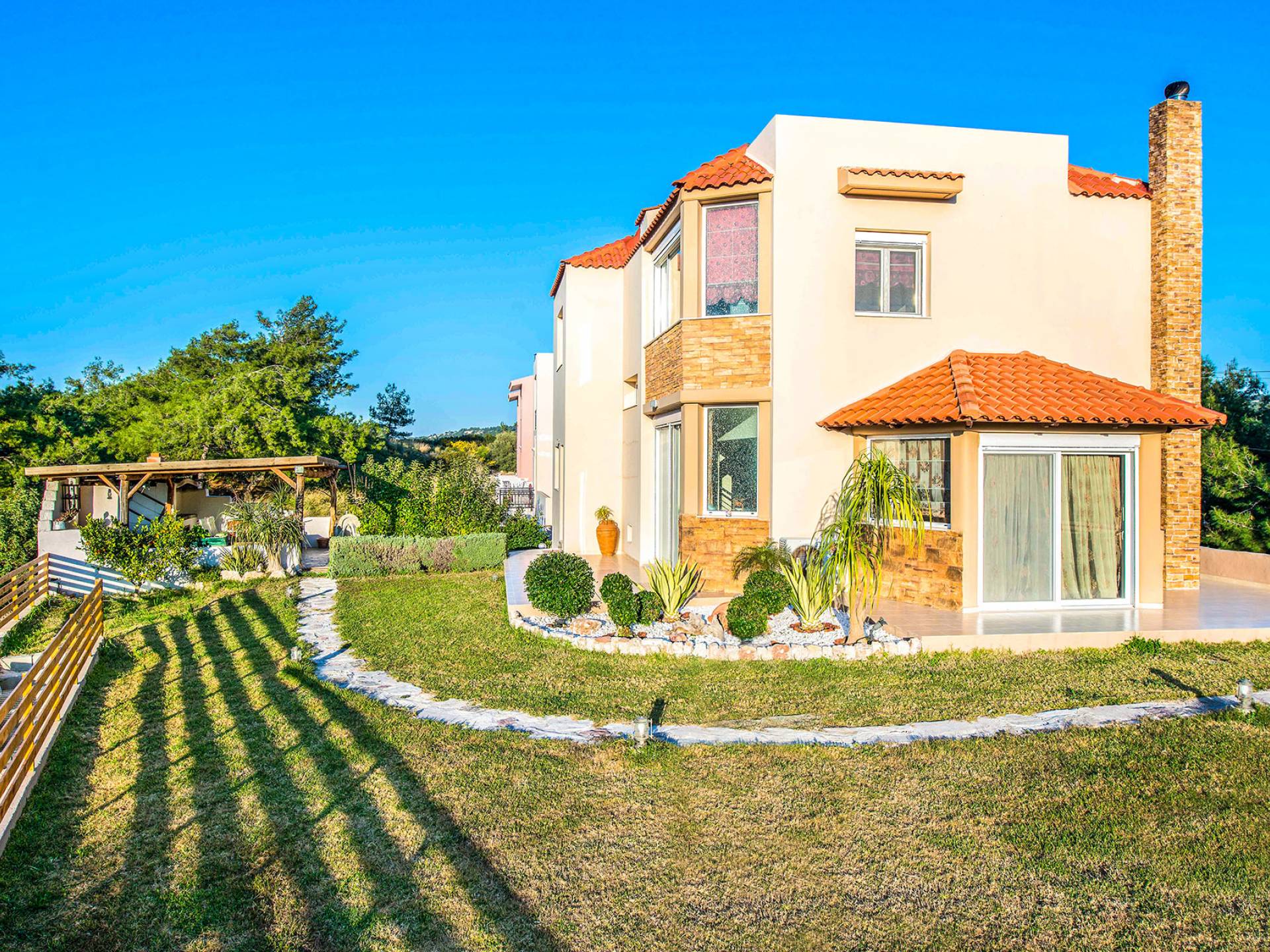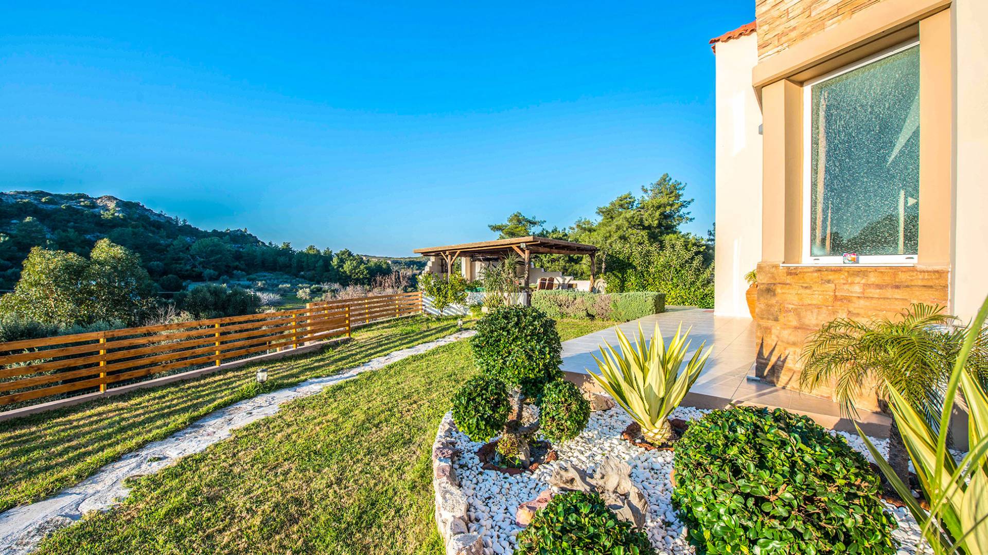 Natura House Rhodes — это роскошная вилла с 3 спальнями и частным бассейном. Natura House представляет собой впечатляющее двухуровневое здание площадью 150 м2, которое обеспечивает роскошное и комфортное размещение для семей, пар или групп друзей до 6 человек. Он состоит из 3 спален, 1 ванной комнаты с гидромассажной ванной, отдельной большой кухонной зоны и большой гостиной с обеденной зоной. Каждая комната выходит на балкон или террасу с панорамным и непрерывным видом на сад, бассейн и захватывающий дух пейзаж.