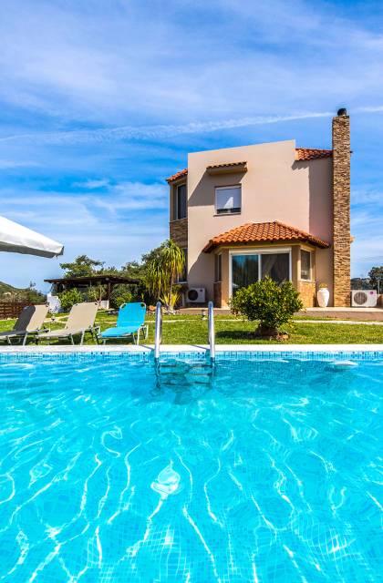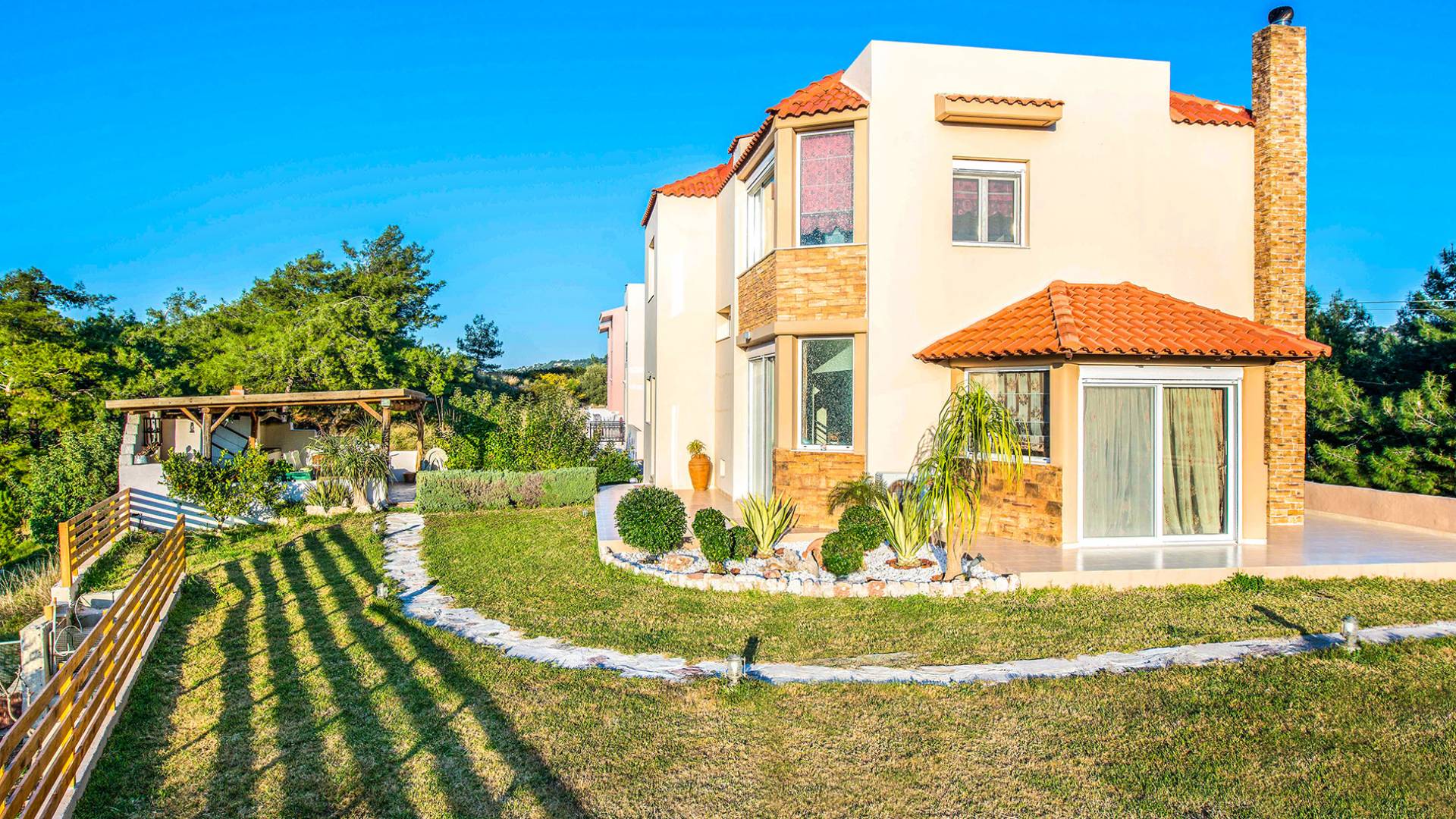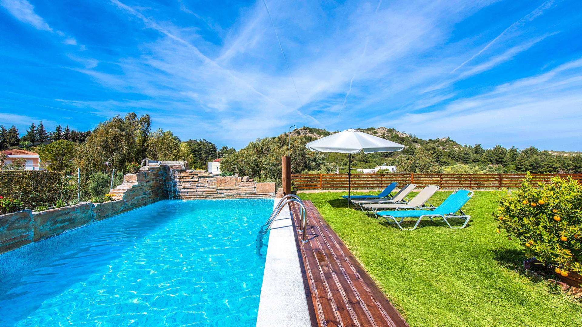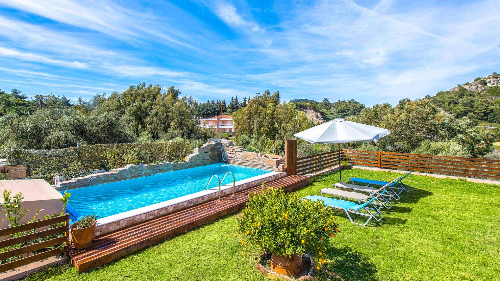 Natura House Rhodes — это роскошная вилла с 3 спальнями и частным бассейном. Natura House представляет собой впечатляющее двухуровневое здание площадью 150 м2, которое обеспечивает роскошное и комфортное размещение для семей, пар или групп друзей до 6 человек. Он состоит из 3 спален, 1 ванной комнаты с гидромассажной ванной, отдельной большой кухонной зоны и большой гостиной с обеденной зоной. Каждая комната выходит на балкон или террасу с панорамным и непрерывным видом на сад, бассейн и захватывающий дух пейзаж.