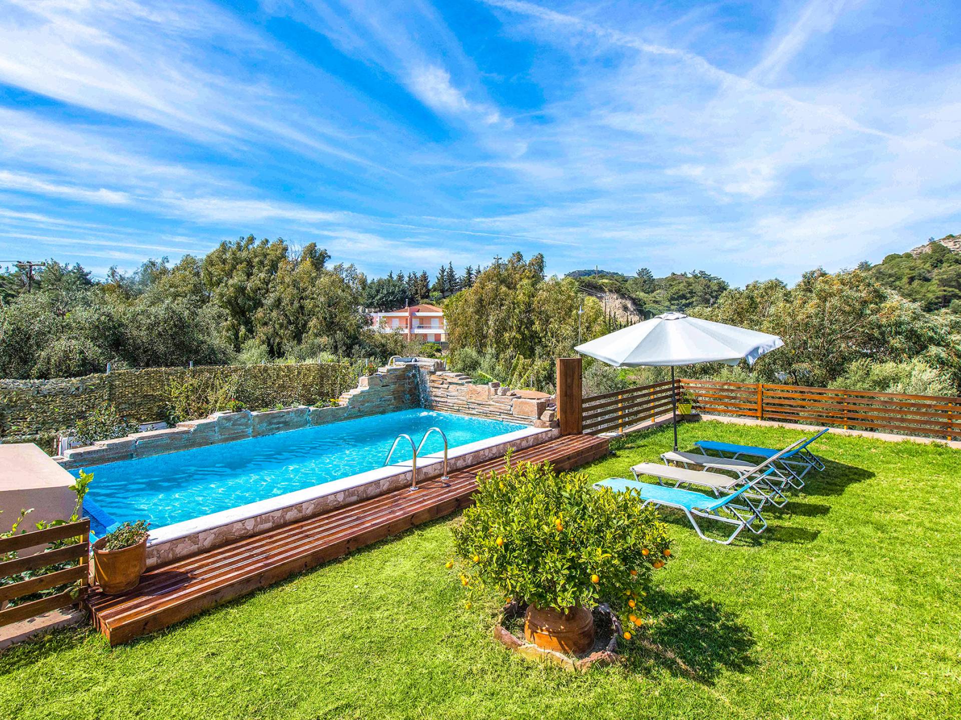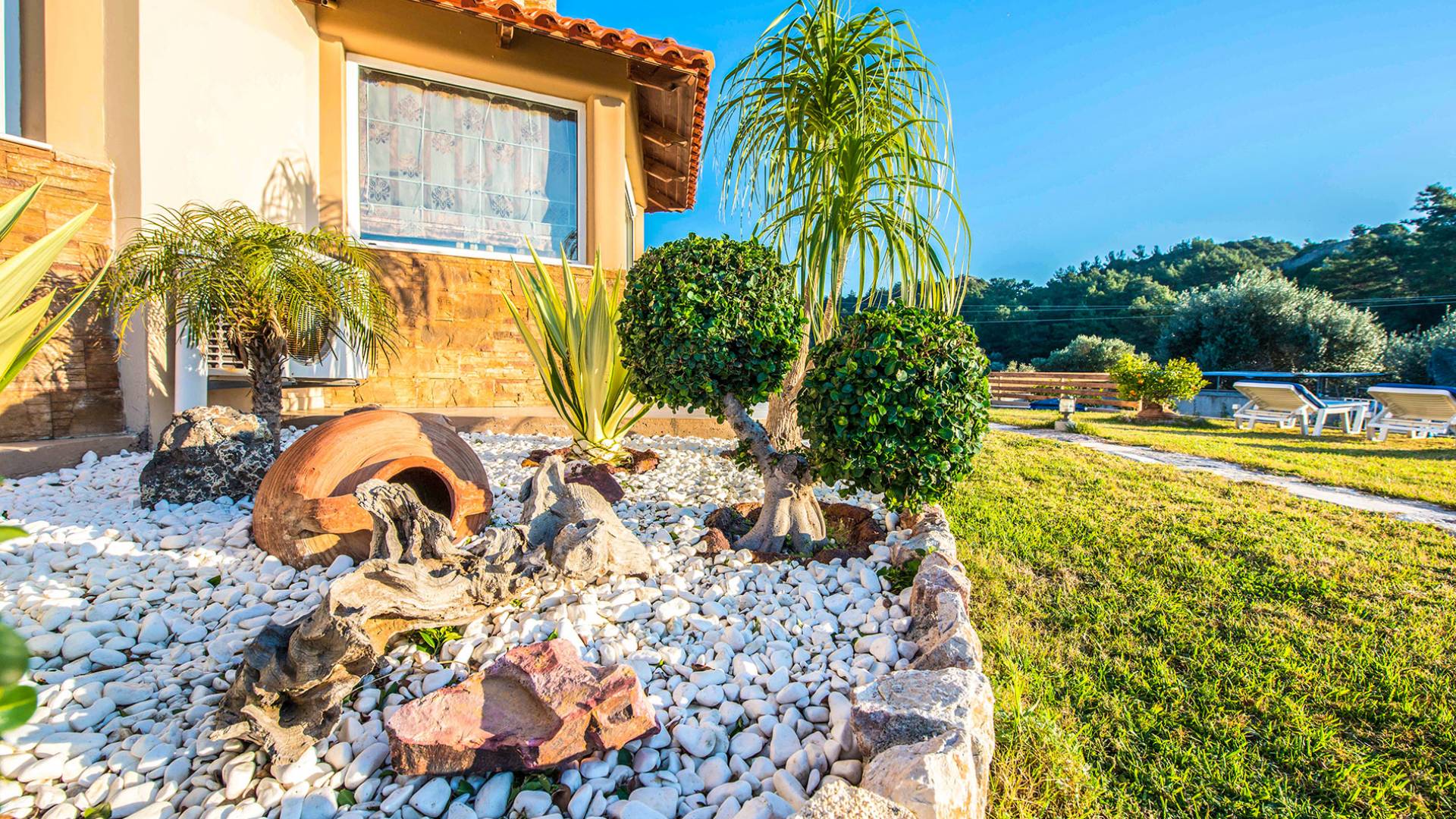 Natura House Rhodes окружен прекрасным садом площадью 600 кв.м. который включает в себя красивые средиземноморские деревья и растения. Киоск и деревянная обеденная площадка с принадлежностями для барбекю заставят вас почувствовать себя в земном раю. У бассейна есть полная садовая мебель. Вы можете загорать и отдыхать на шезлонгах с удобными подушками, в креслах или на газоне, наслаждаясь тенью зонтиков и отдыхая вдали от городского шума.