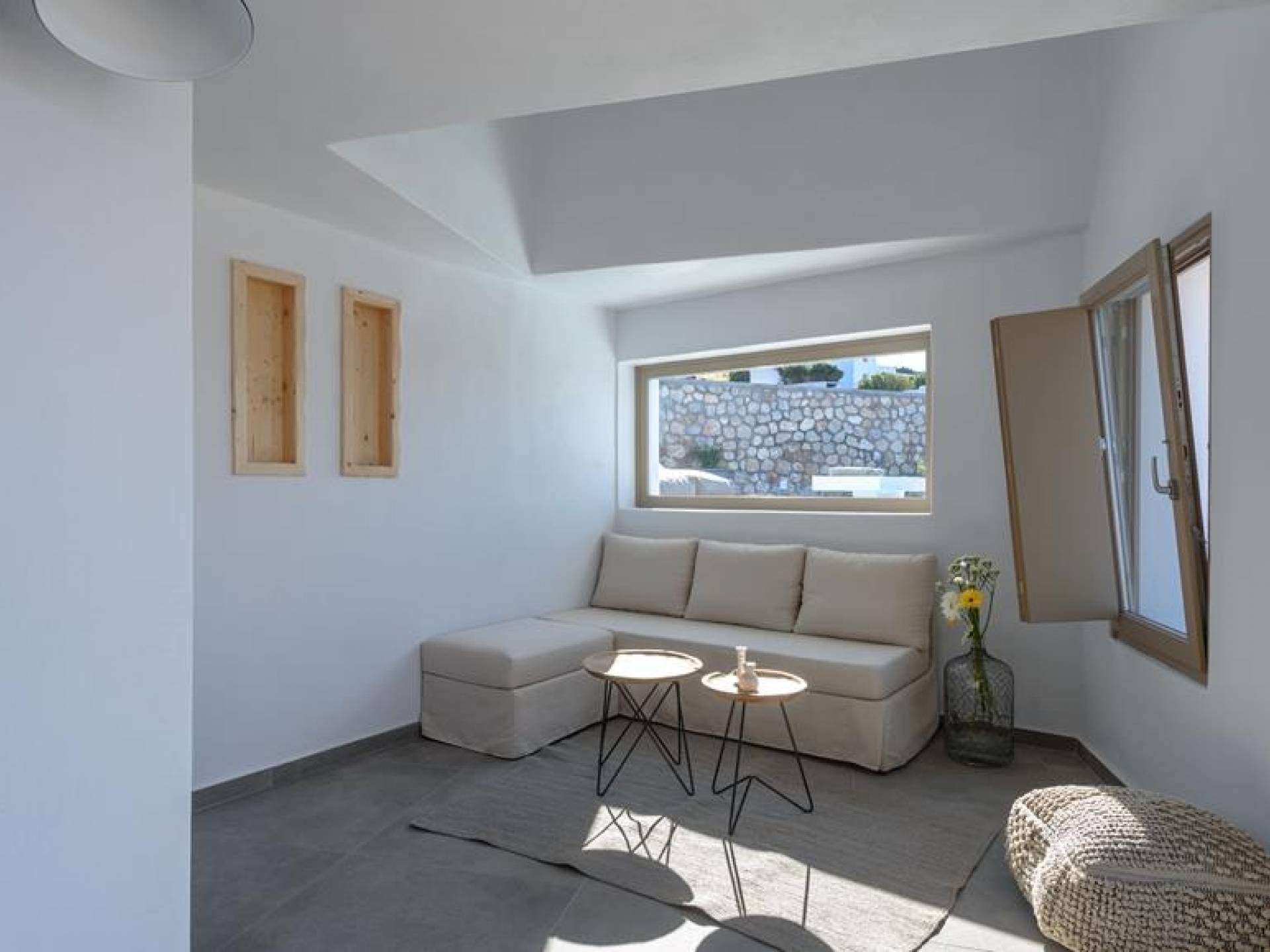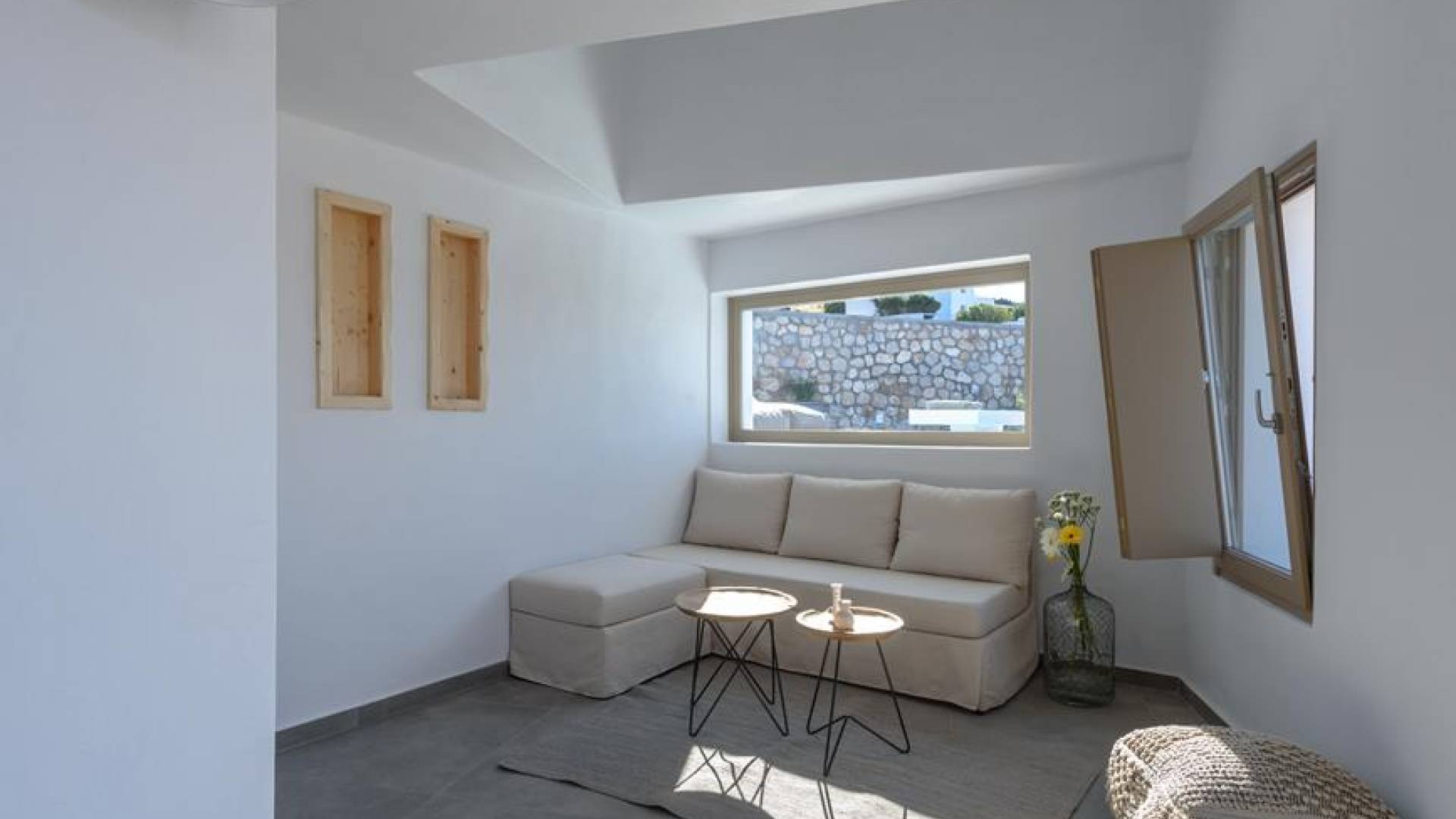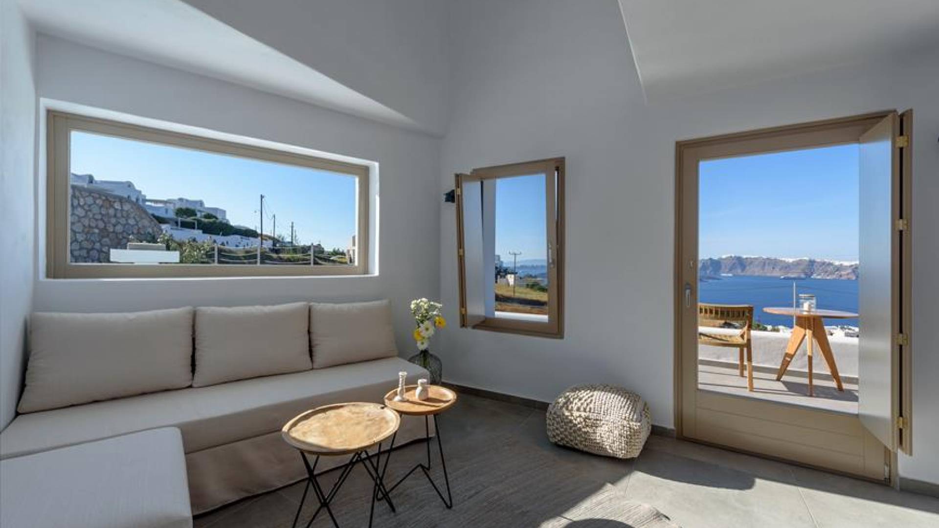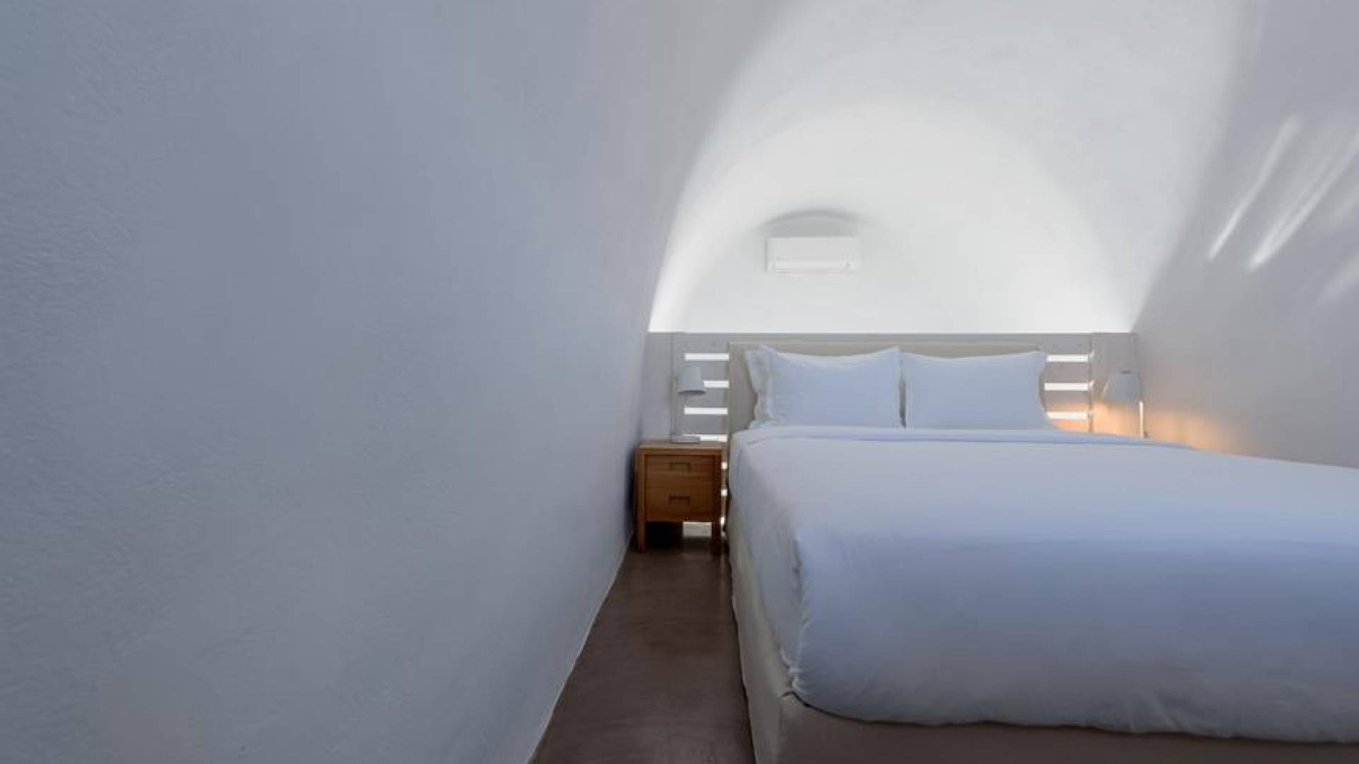 Earino Supreme Executive Suite - это очень уединенные апартаменты с большим открытым пространством с захватывающим видом на кальдеру, пейзажным бассейном с подогревом для снисходительного удовольствия и просторным роскошным интерьером. Интерьер разделен на два уровня. На первом этаже находится ванная комната и гостиная с панорамным видом на кальдеру и бассейн. В гостиной есть обеденная зона. Диван-кровать раскладывается в две односпальные кровати с ортопедическими матрасами. Уютная спальня находится в антресоли.