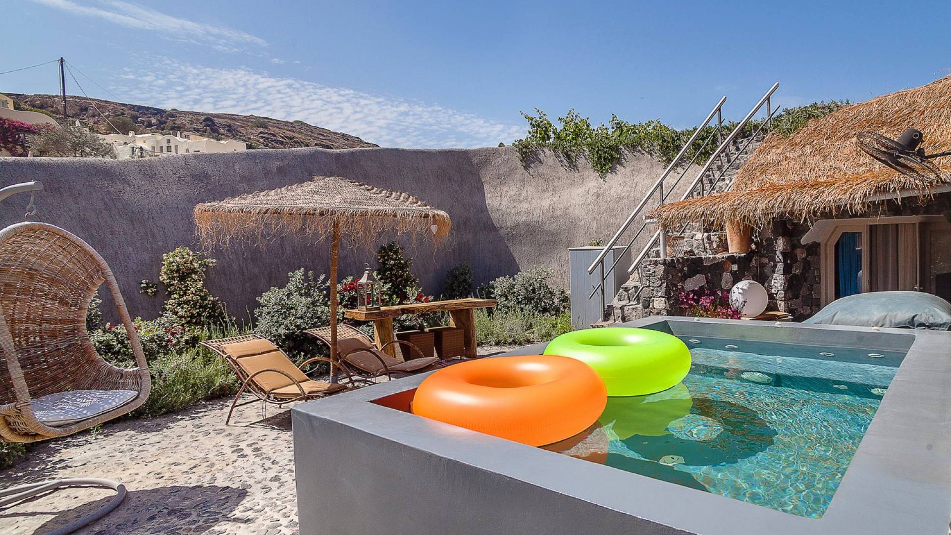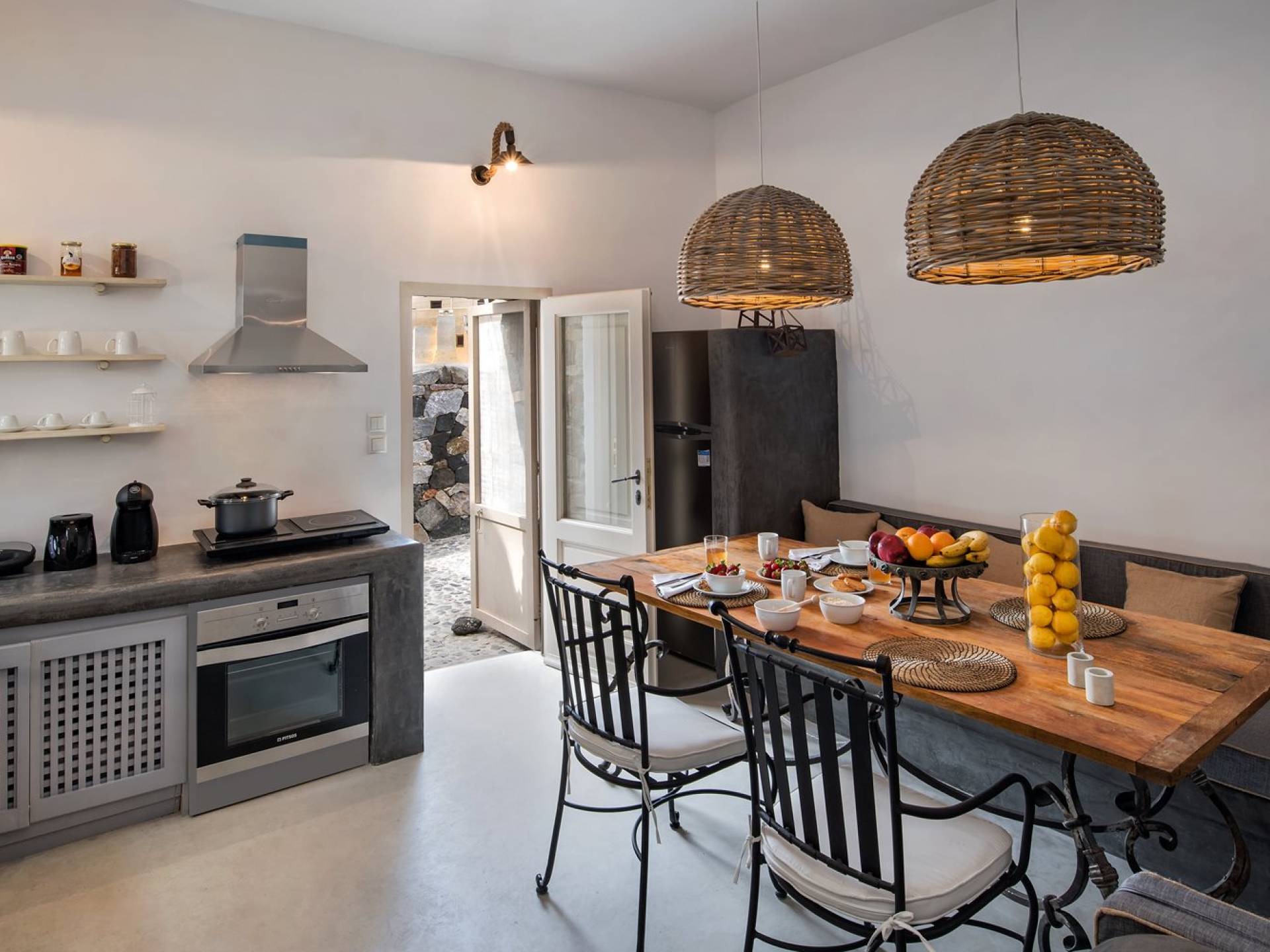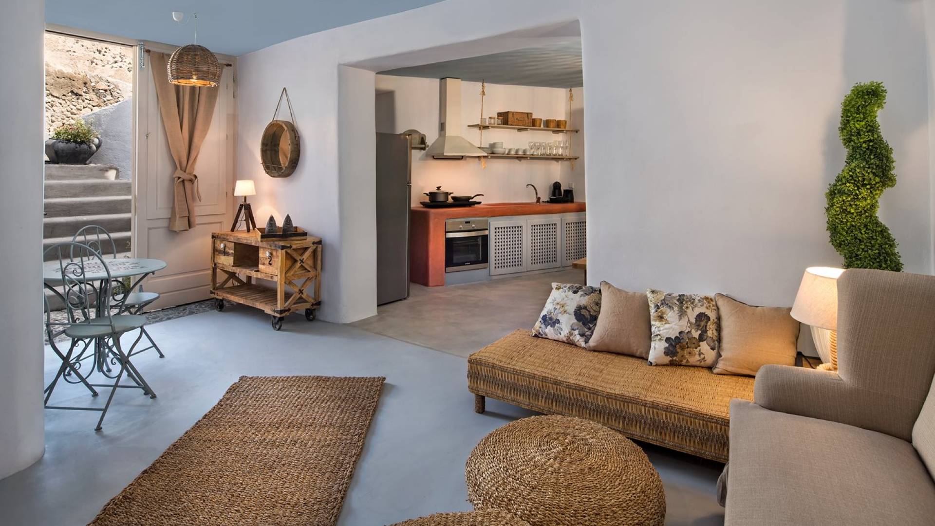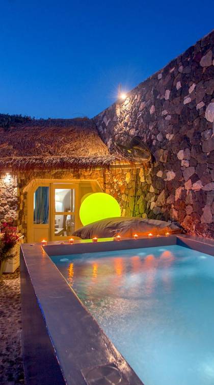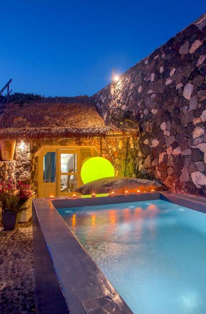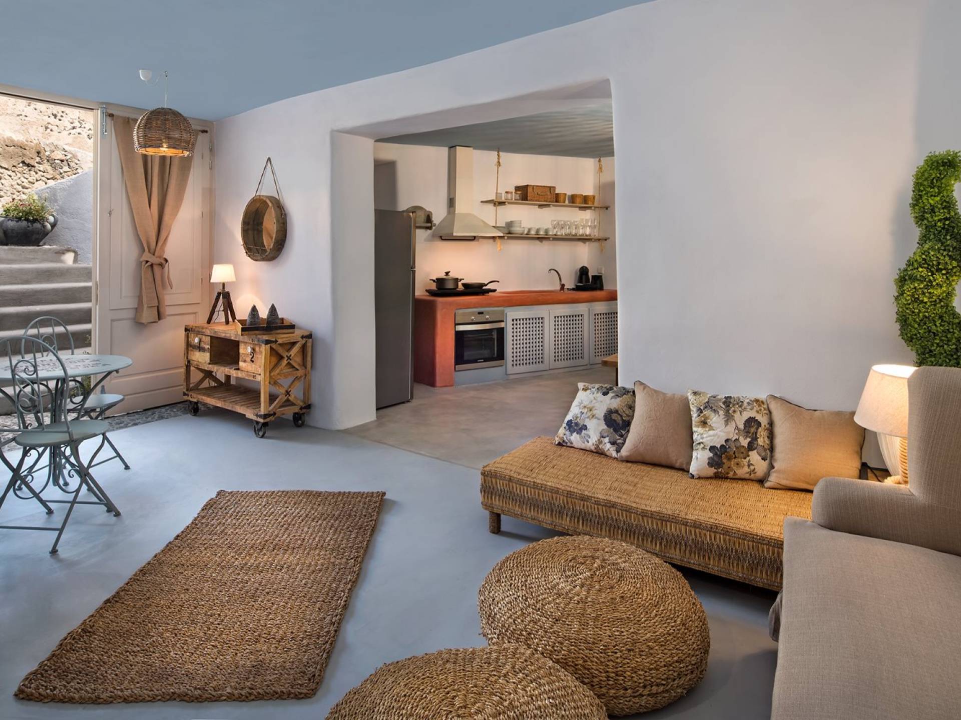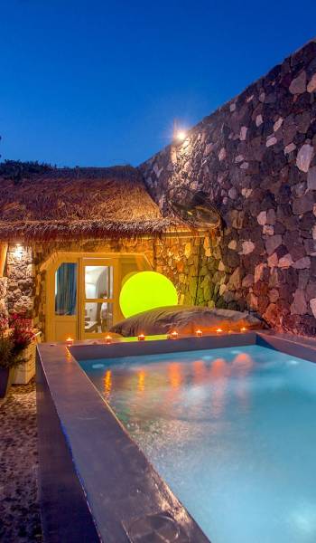 Уникальные купольные виллы, вырытые в скалах древней деревни Эмпорио, построены в гармонии с уникальной морфологией острова, созданной вулканом, и на них сильно повлияла традиционная архитектура Эгейского моря. Наряду с мечтательным, подобранным вручную декором, результатом является среда необычайной свободы самовыражения, которая заставляет вас чувствовать себя внимательным, радостным и уравновешенным.
