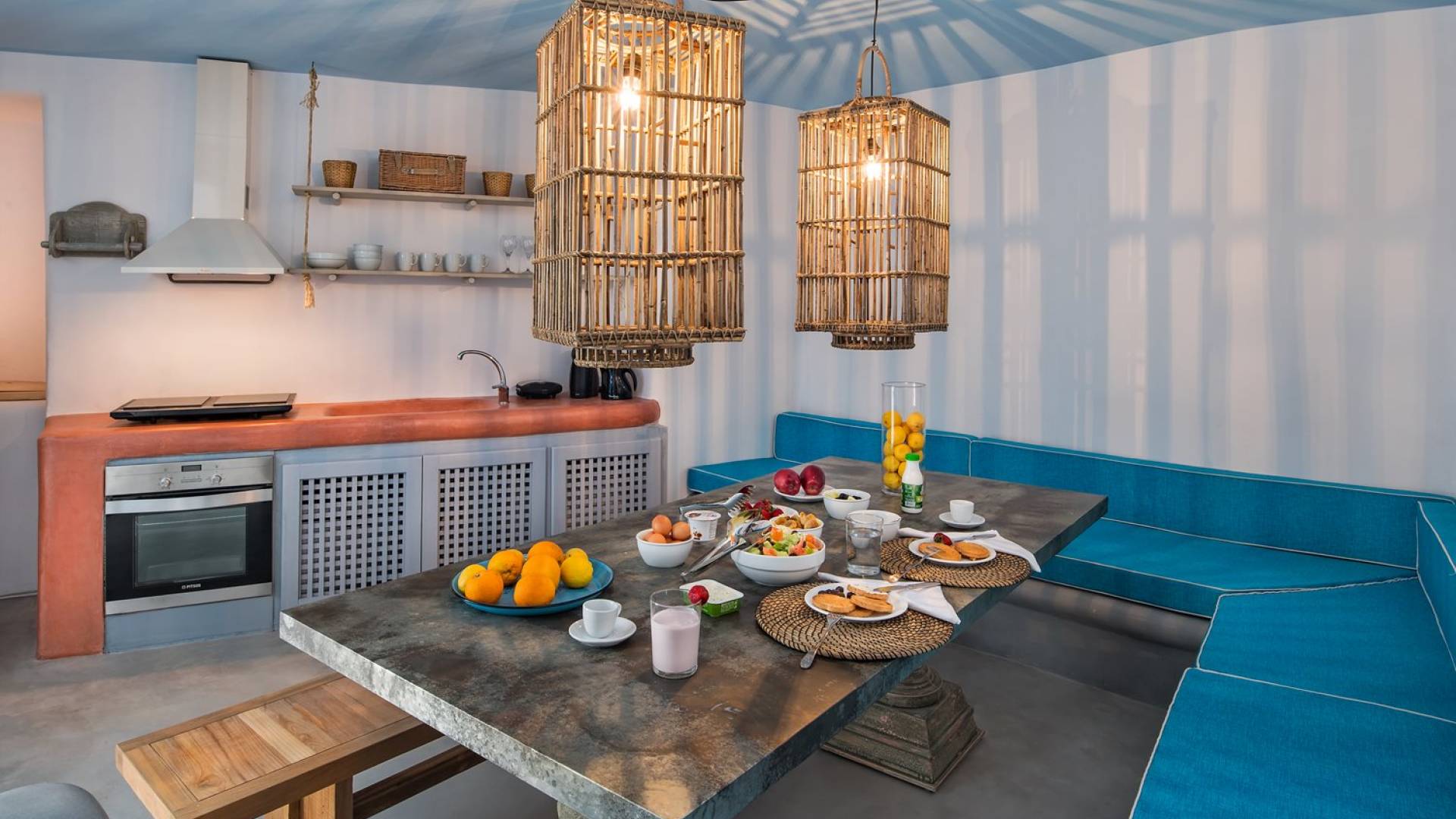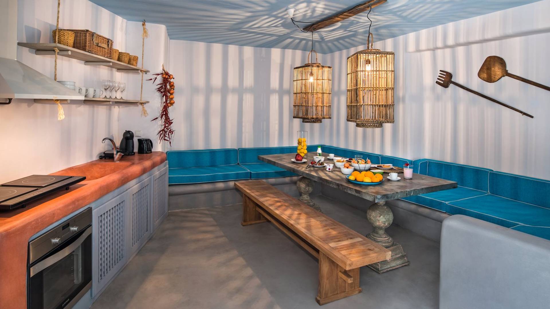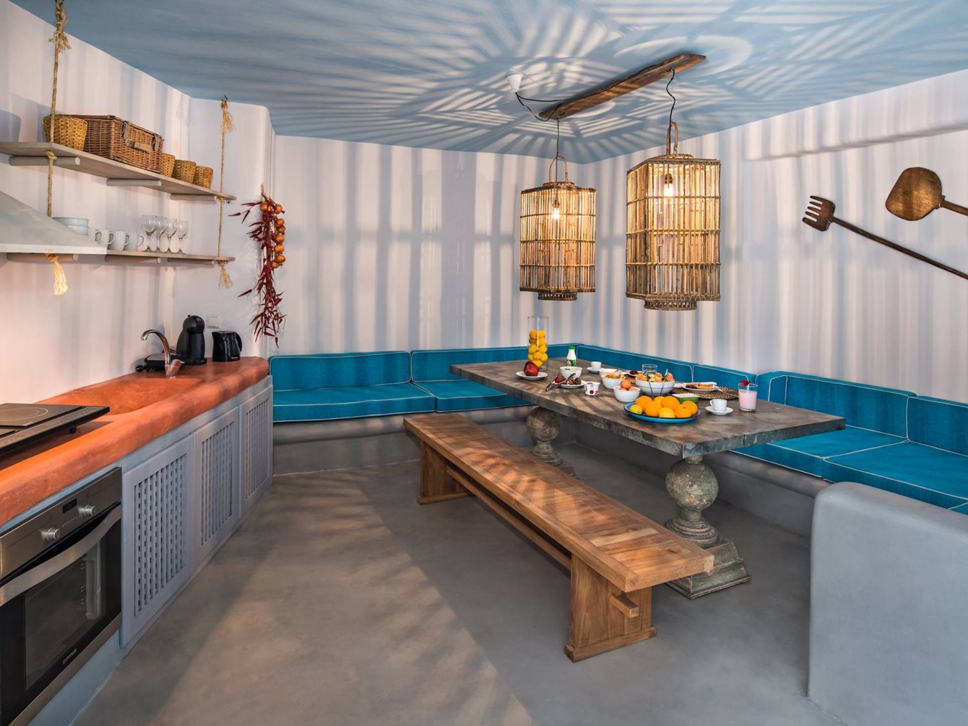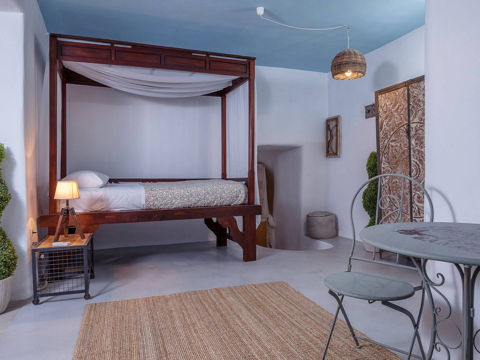 Уникальные купольные виллы, вырытые в скалах древней деревни Эмпорио, построены в гармонии с уникальной морфологией острова, созданной вулканом, и на них сильно повлияла традиционная архитектура Эгейского моря. Наряду с мечтательным, подобранным вручную декором, результатом является среда необычайной свободы самовыражения, которая заставляет вас чувствовать себя внимательным, радостным и уравновешенным.