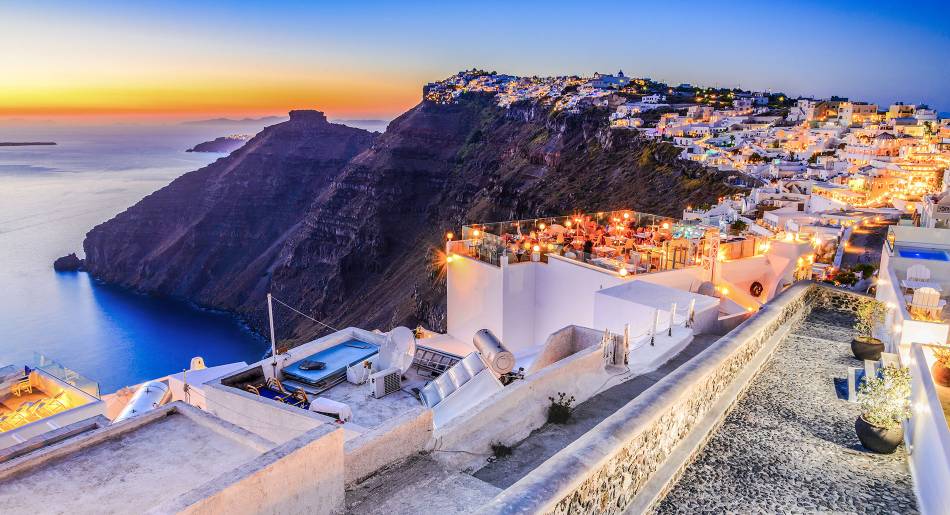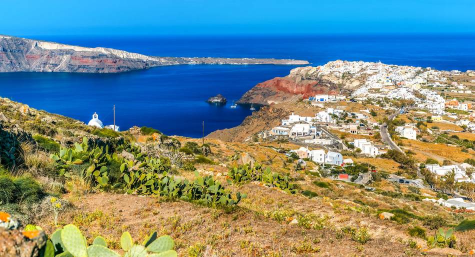 Вечная красота острова Санторини ежегодно привлекает тысячи посетителей, являясь одним из лучших туристических направлений в мире. Его дикий вулканический ландшафт, скалистые утесы, дикая природа и прекрасные пляжи в сочетании с его богатой историей и традициями делают Санторини жемчужиной Греции. Первоначальная форма Санторини в древние времена была круглой. Он приобрел свою нынешнюю форму примерно в 1650 году до нашей эры из-за сильного извержения вулкана, которое исчезло на половине острова. Сегодня половина кальдеры Санторини затоплена, что делает ее единственной затонувшей кальдерой в мире.