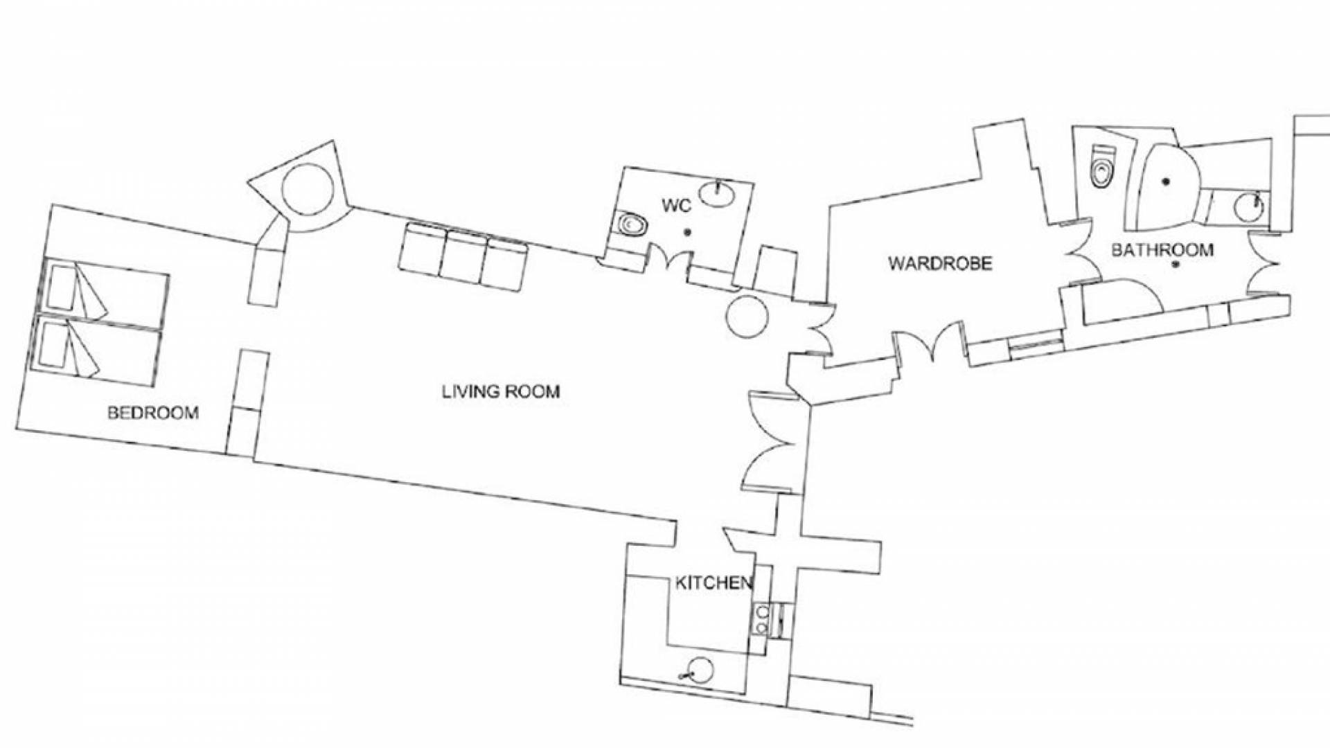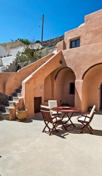 Здание разделено на два этажа, на два отдельных дома с общей большой террасой, с которой открывается вид на дома деревни, виноградники Ии и Эгейское море. Некоторые частные уголки террасы используются для принятия солнечных ванн, встреч, тихих вечеров и романтических ужинов.