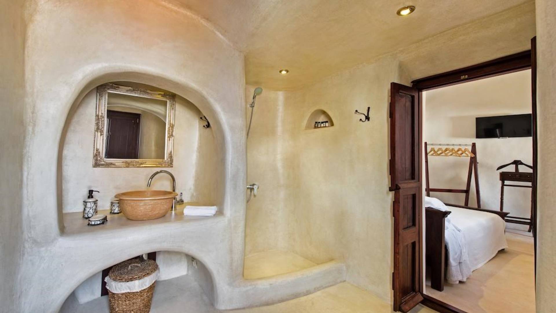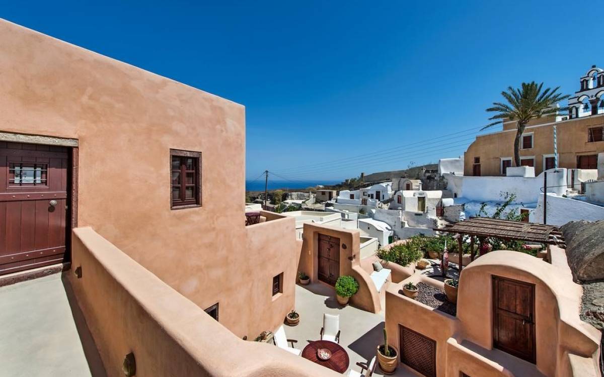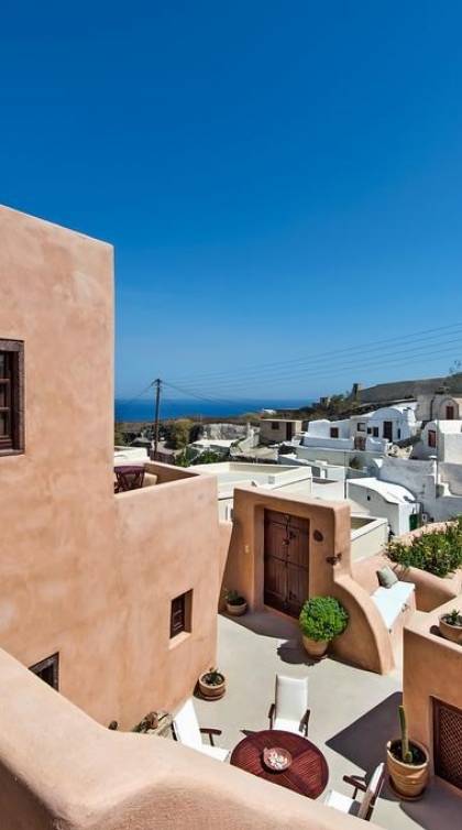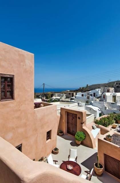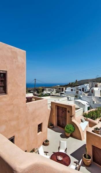 Здание разделено на два этажа, на два отдельных дома с большой террасой, с которой открывается вид на дома деревни, виноградники Ии и Эгейское море. Некоторые частные уголки террасы используются для принятия солнечных ванн, встреч, тихих вечеров и романтических ужинов.