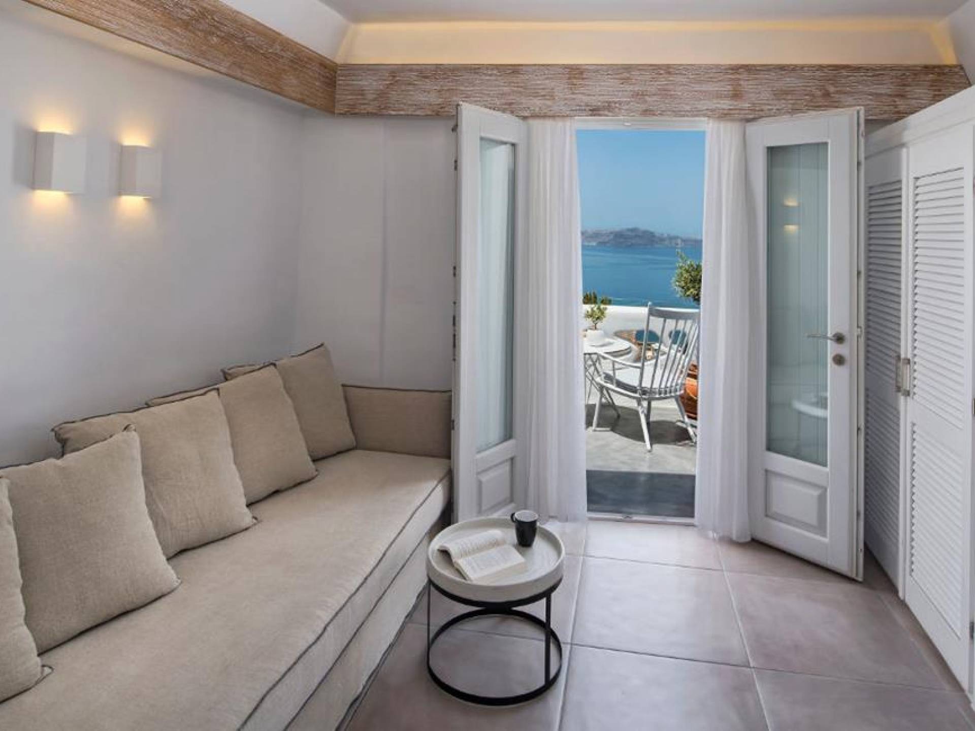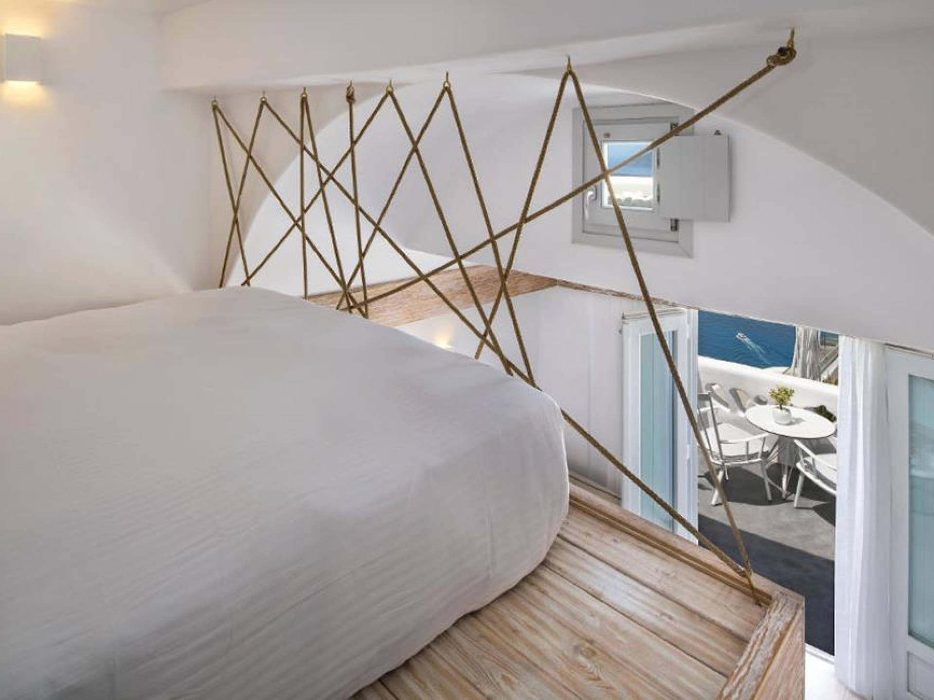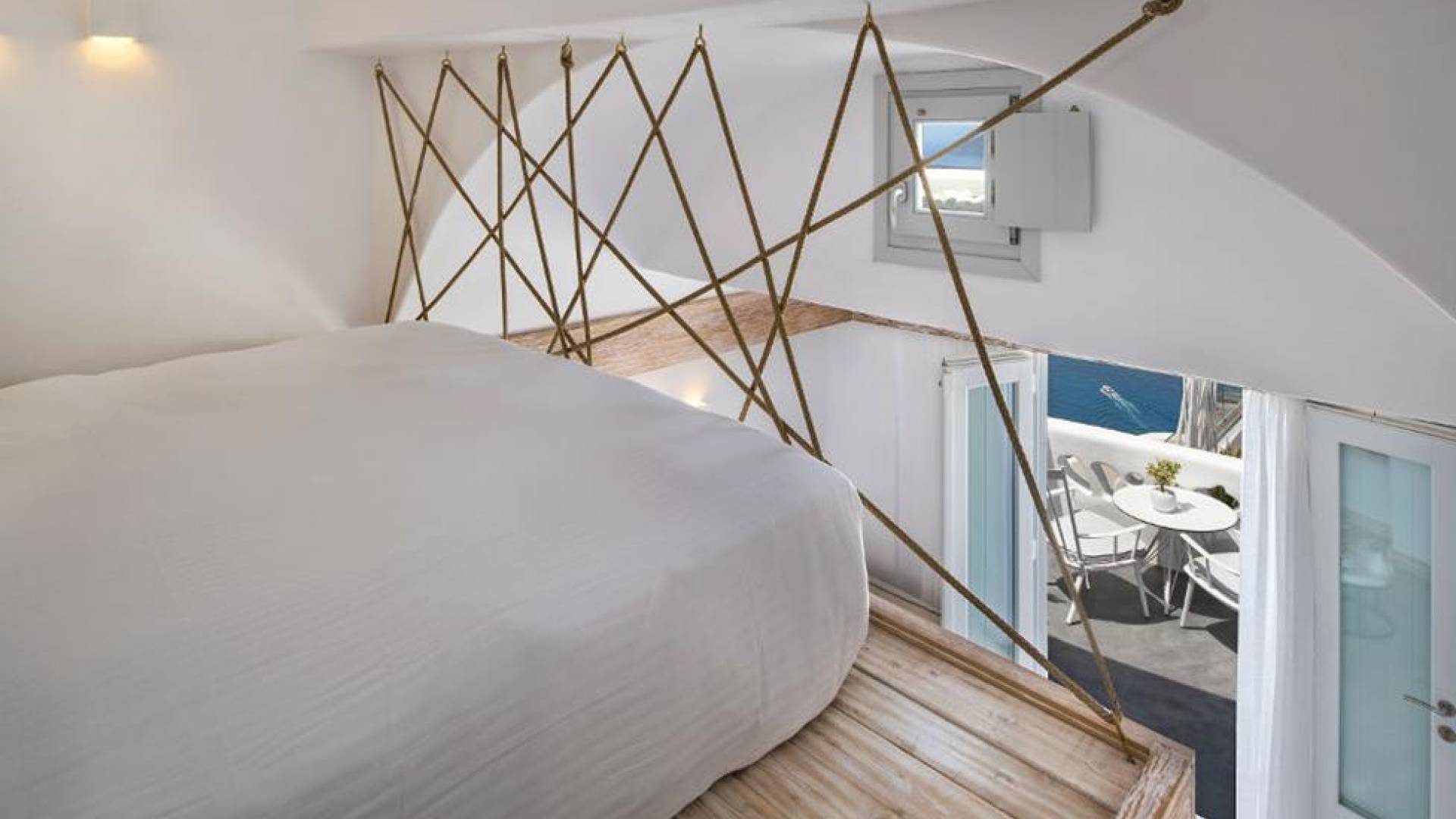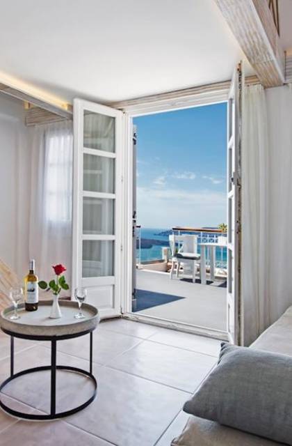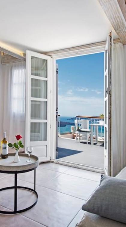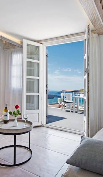 В люксе Athina Master Loft Suite могут разместиться до 3 человек. Он состоит из одной двуспальной кровати на чердаке, гостиной с односпальным диваном и собственного балкона с видом на море и вулкан.