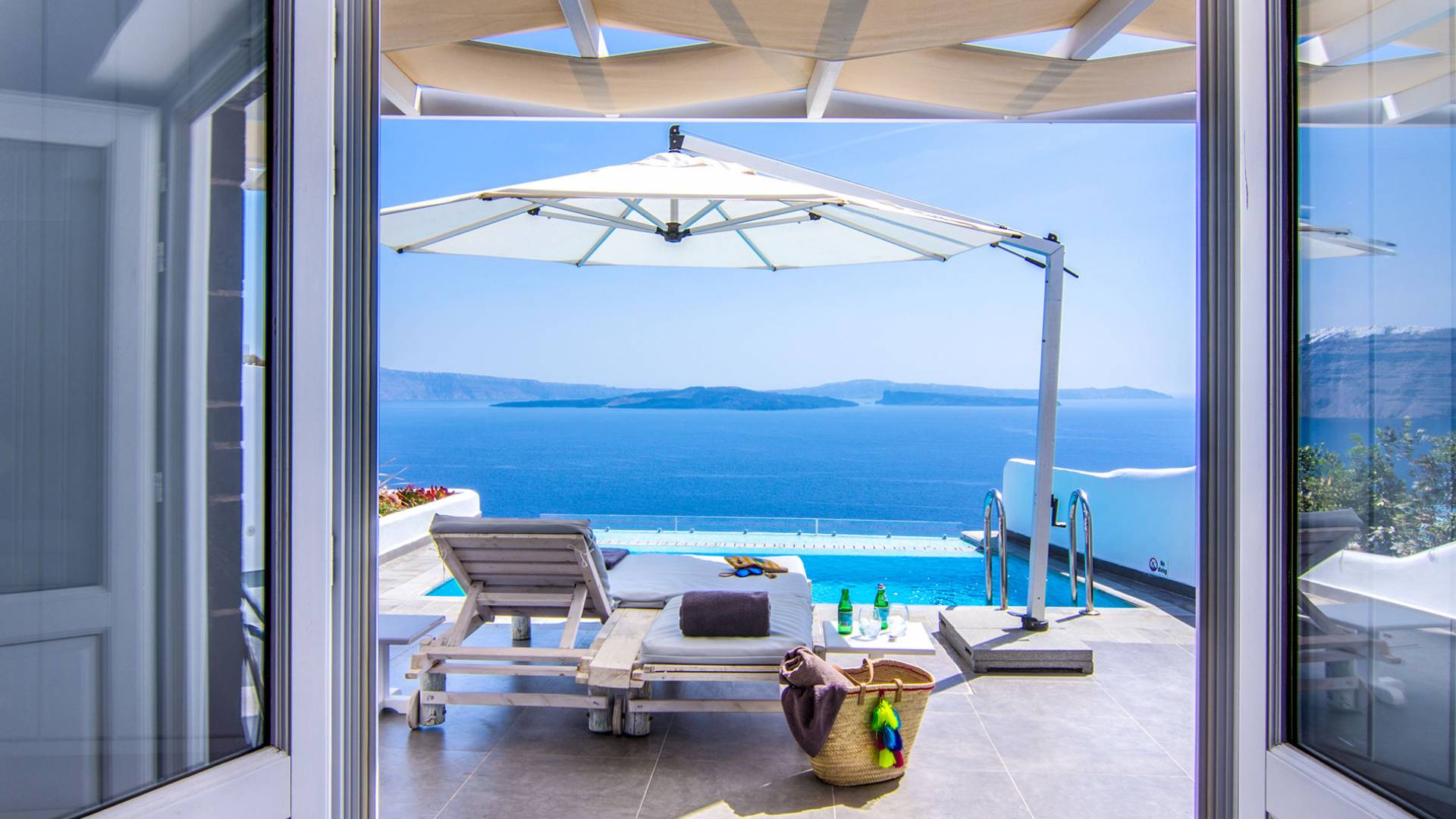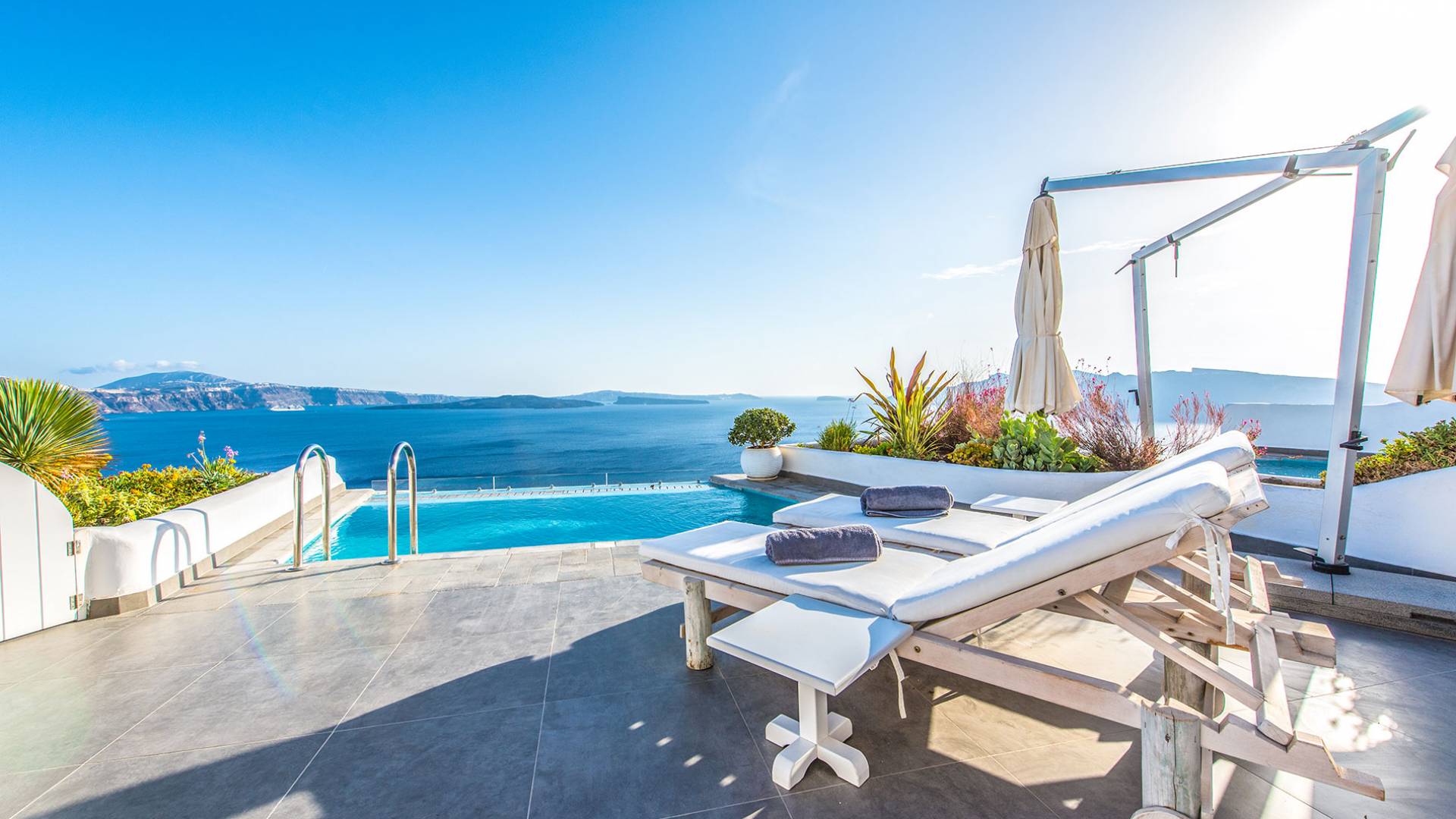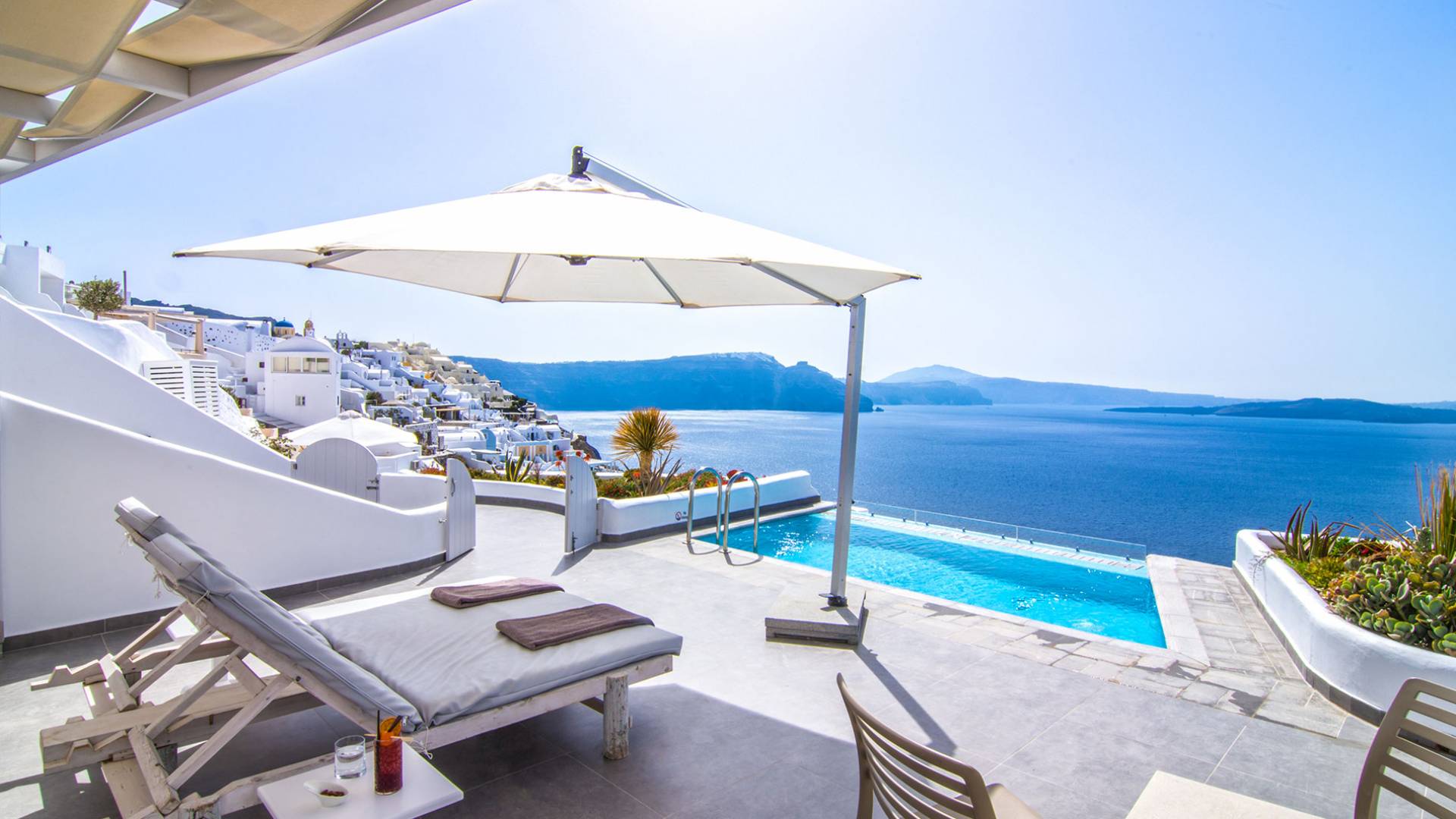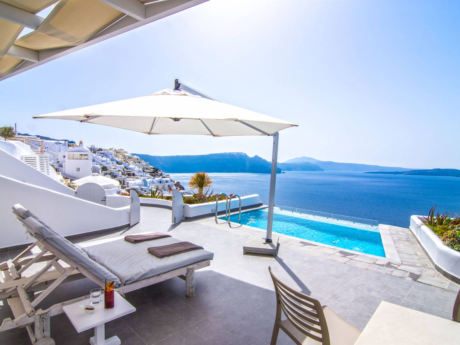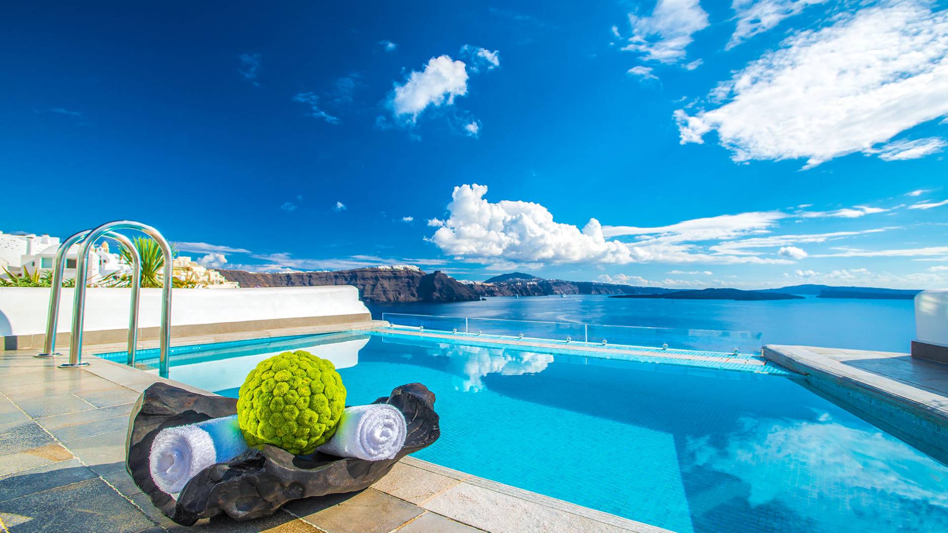 Главный пейзажный бассейн: погрузитесь в Эгейское море и проложите себе путь к кальдере, не покидая уединения и услуг спа-салона Santorini Secret Suites & Spa. Главный пейзажный бассейн позволяет прикоснуться к кончикам богов, создавших захватывающий дух пейзаж кальдеры Санторини, с прямым видом на бескрайнюю синеву Эгейского моря. Наслаждайтесь лучшим видом, который может предложить Ия, сохраняя прохладу и выпивая один из наших фирменных коктейлей!