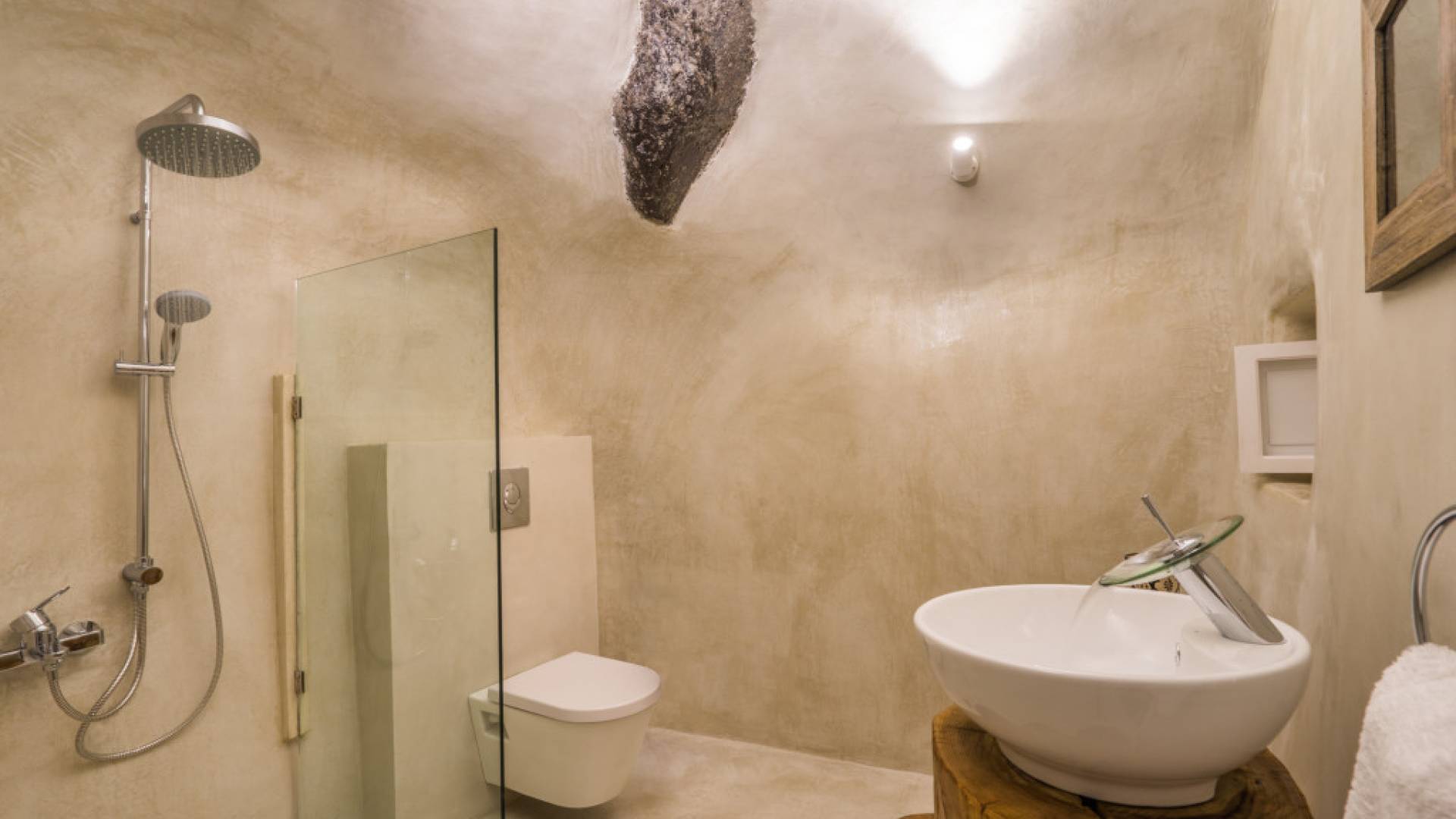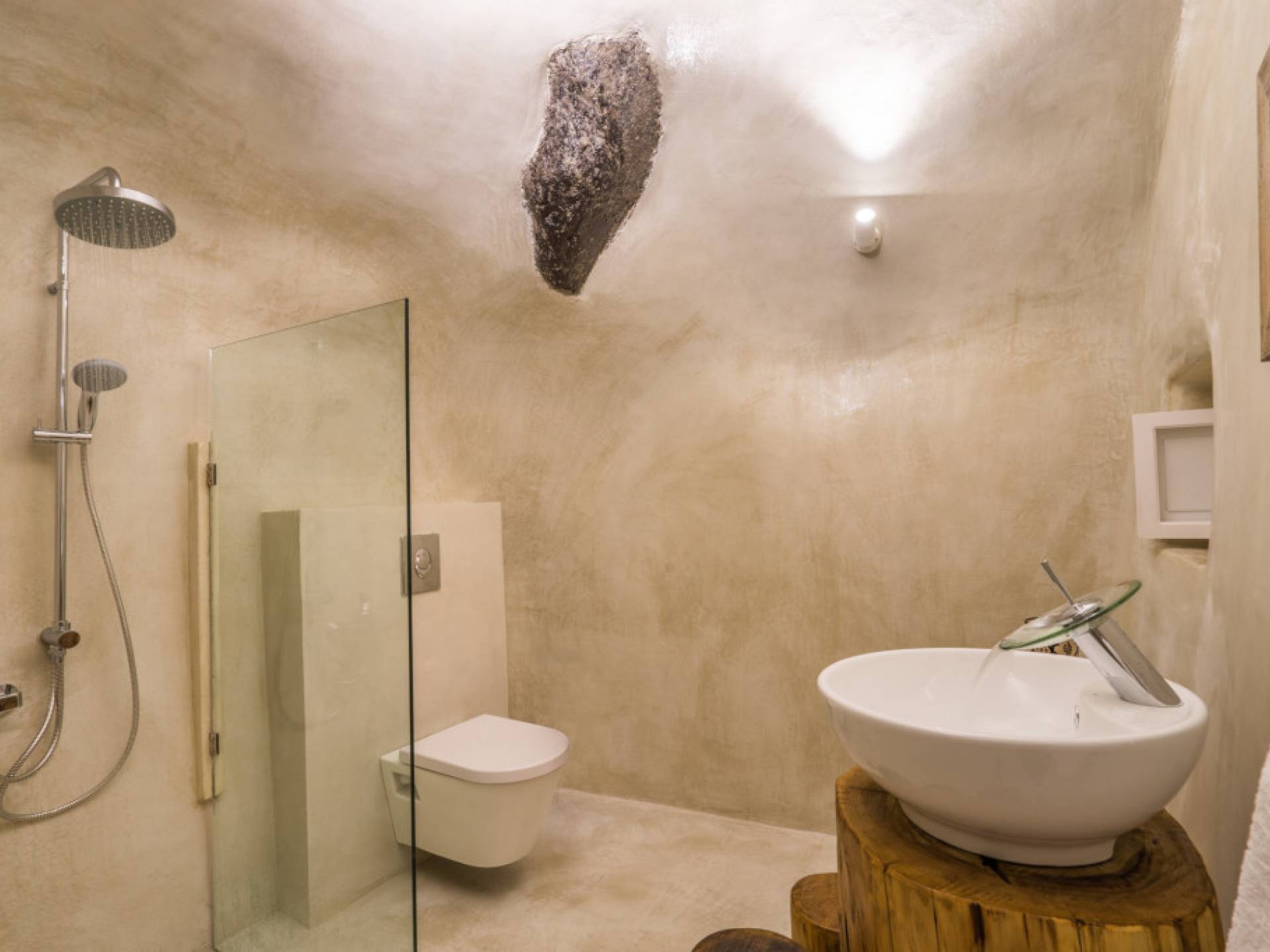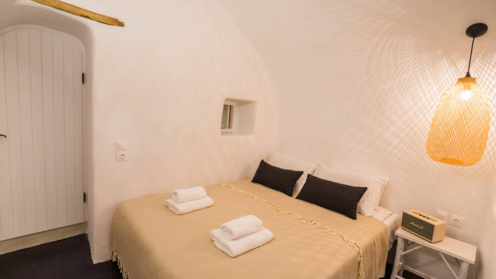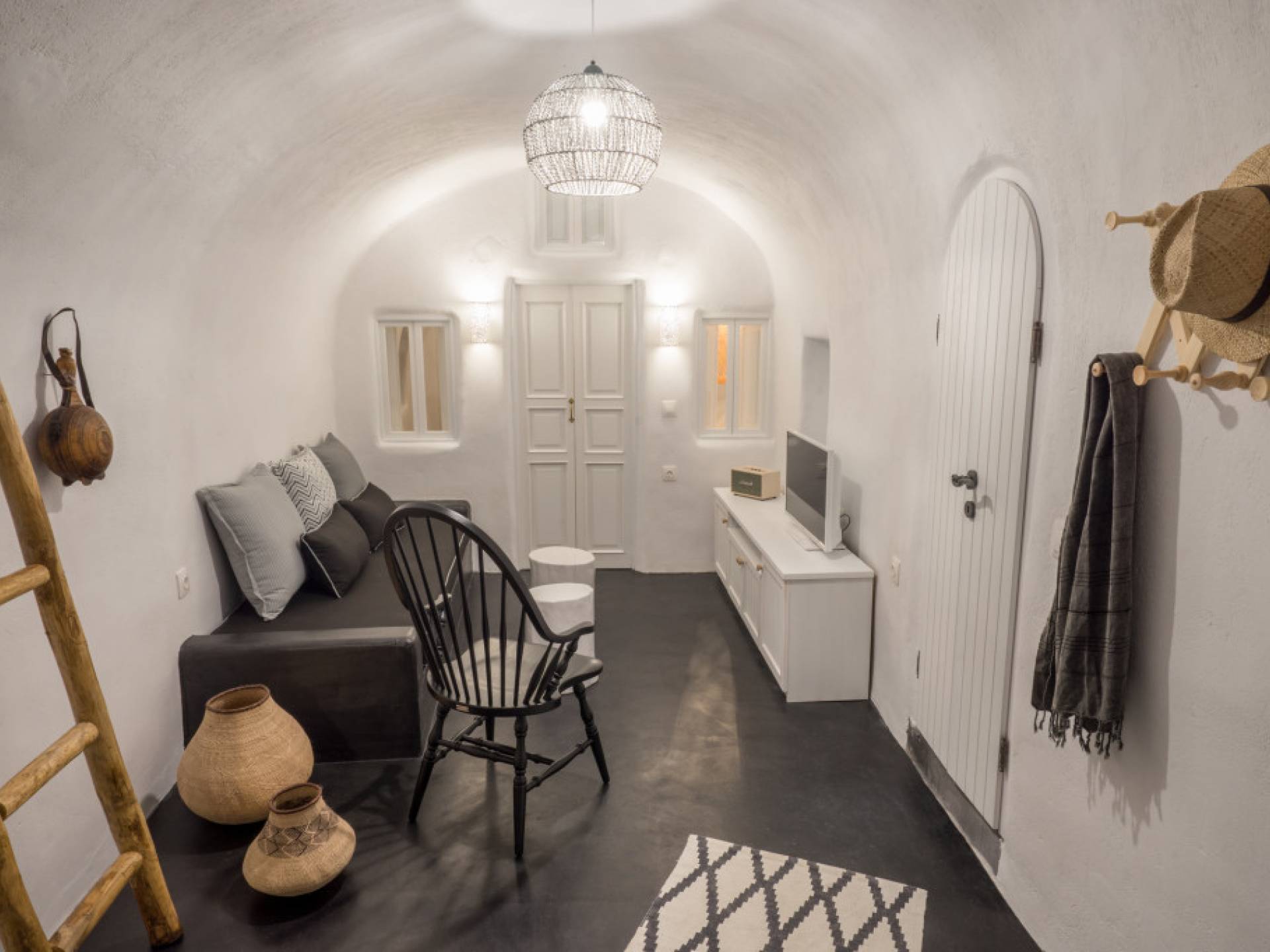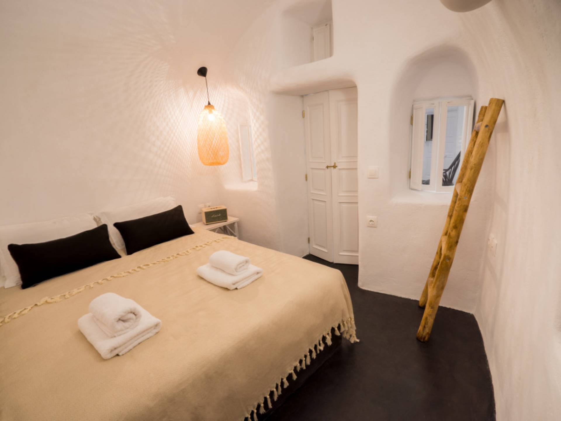 Iris Canvas Suite состоит из 1 спальни с кроватью размера «king-size» 160 см x 200 см, гостиной с диваном-кроватью 80 см x 200 м, 1 ванной комнаты, 1 туалета + душ с гидромассажем, мини-кухни с необходимыми принадлежностями, частной террасы с кальдерой. и вид на вулкан.