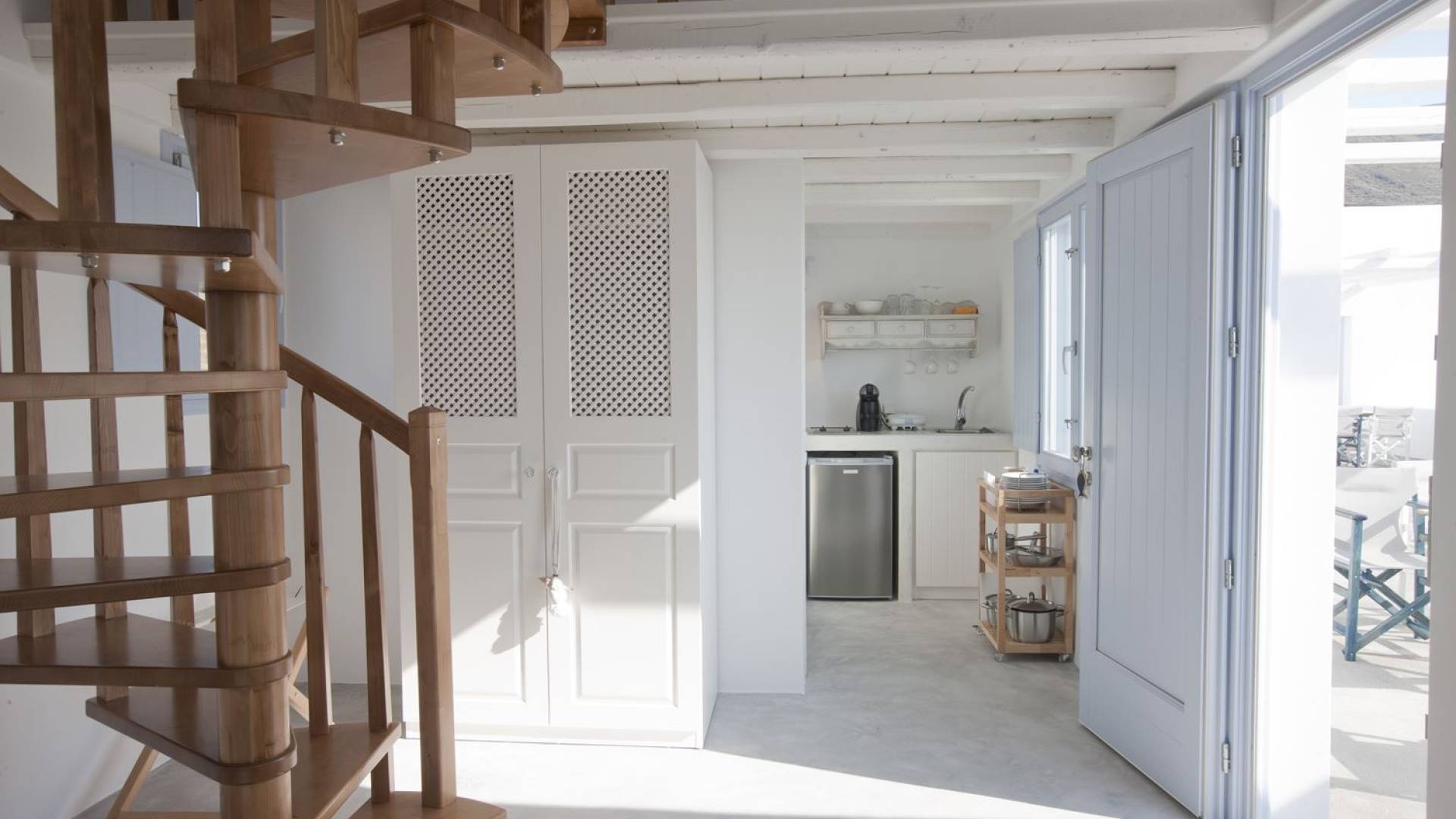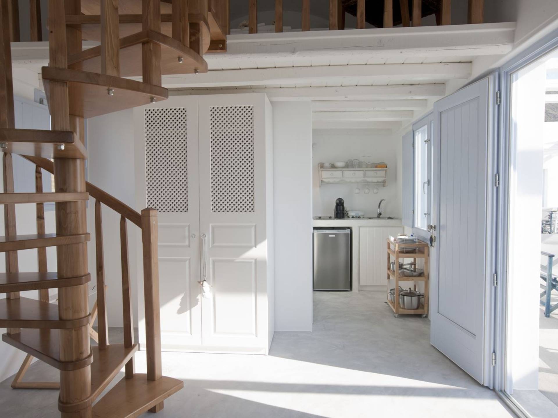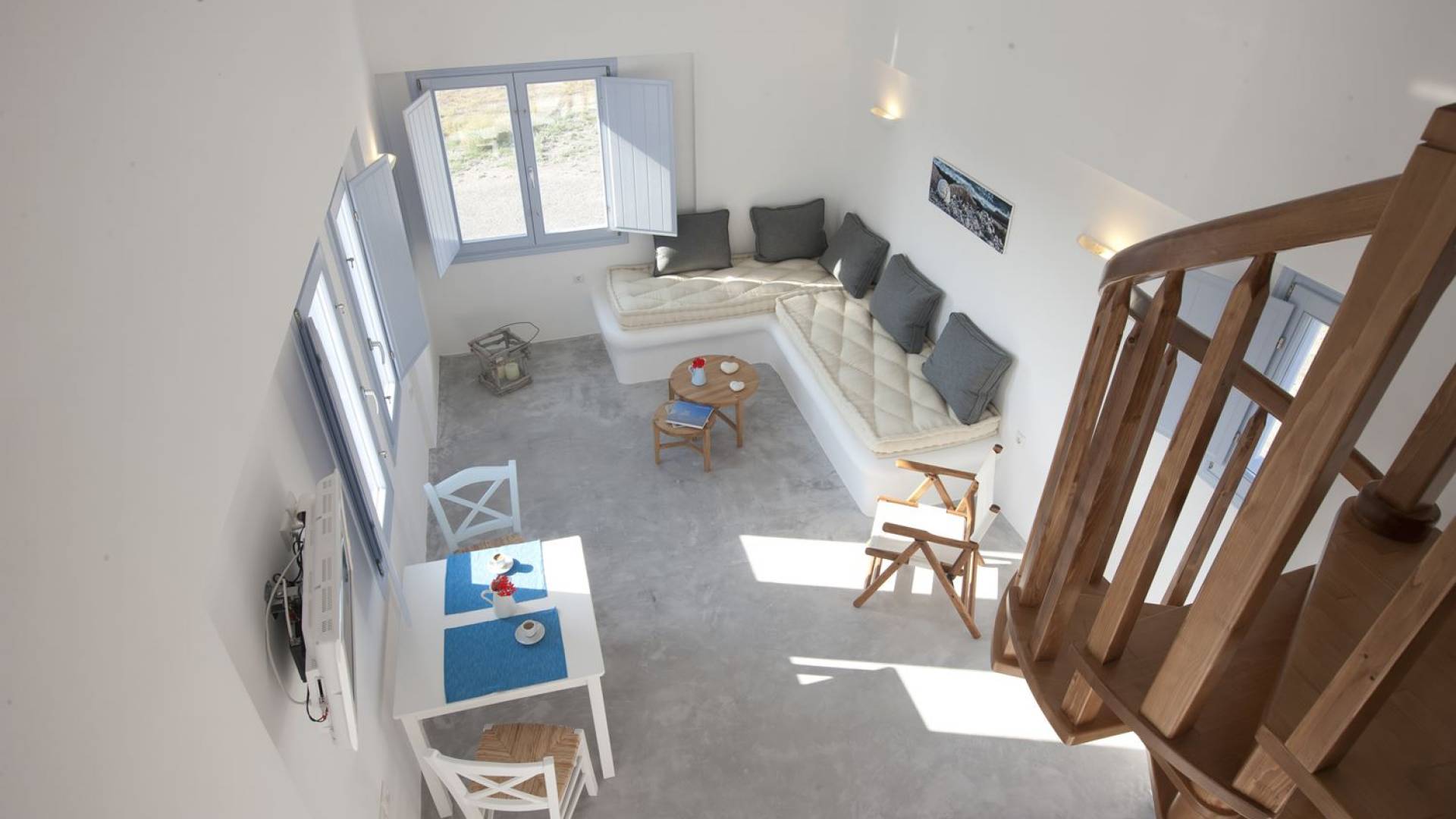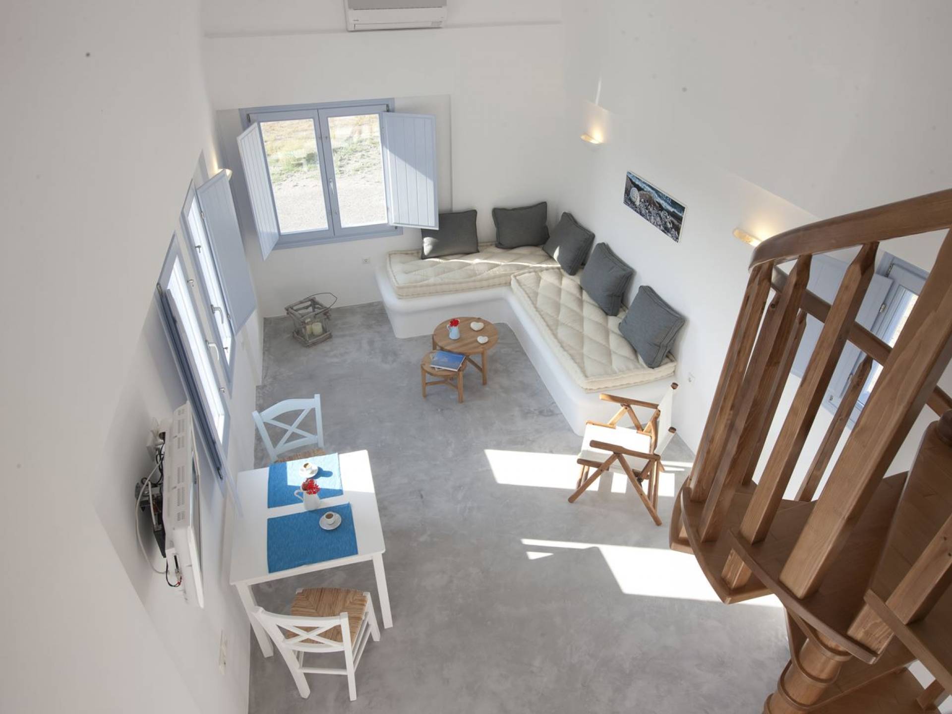 Мезонет Thalassa в Sun Anemos Santorini - это роскошная квартира в аренду с 1 спальней. Мезонет 50 кв. м. с отдельным входом, большая терраса с садом 40 кв.м. с перголой. Он предлагает спальню с кроватью размера "king-size", специально спроектированную комнату со встроенной двуспальной кроватью и гостиную с двумя традиционными встроенными диванами, на которых могут разместиться два человека. В нем также есть полностью оборудованная мини-кухня, ванная комната с душевой кабиной и максимальная вместимость 4 человека.