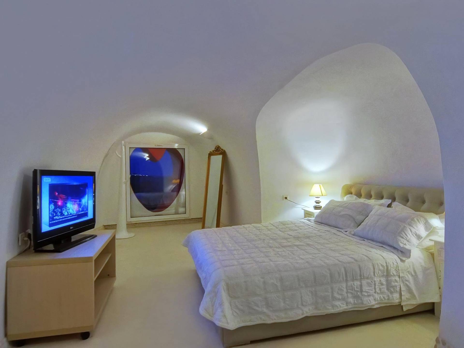 Люкс для новобрачных в пещере с одной спальней и прекрасным панорамным видом на Санторини.