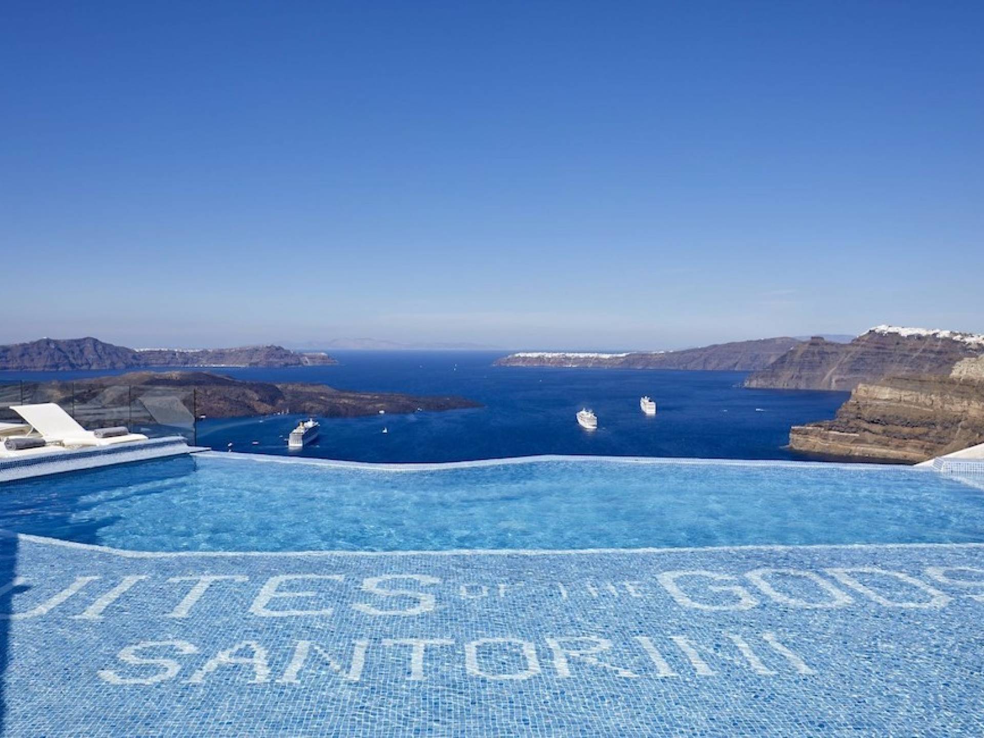 Недавно построенные люксы отеля Gods Luxury Suites расположены над портом Афиниос с видом на очаровательную кальдеру, которая находится посреди Эгейского моря. Благодаря своему привилегированному положению люксы отеля Gods Luxury Suites считаются одним из лучших мест острова. Отсюда открывается великолепный вид на легендарный вулкан, синее Эгейское море и великолепные закаты, идеально подходящие для свадеб, частных вечеринок, деловых встреч и конференций.