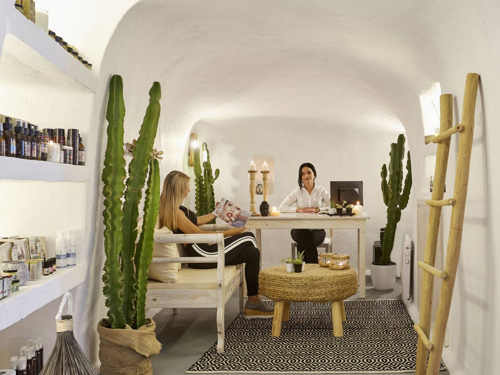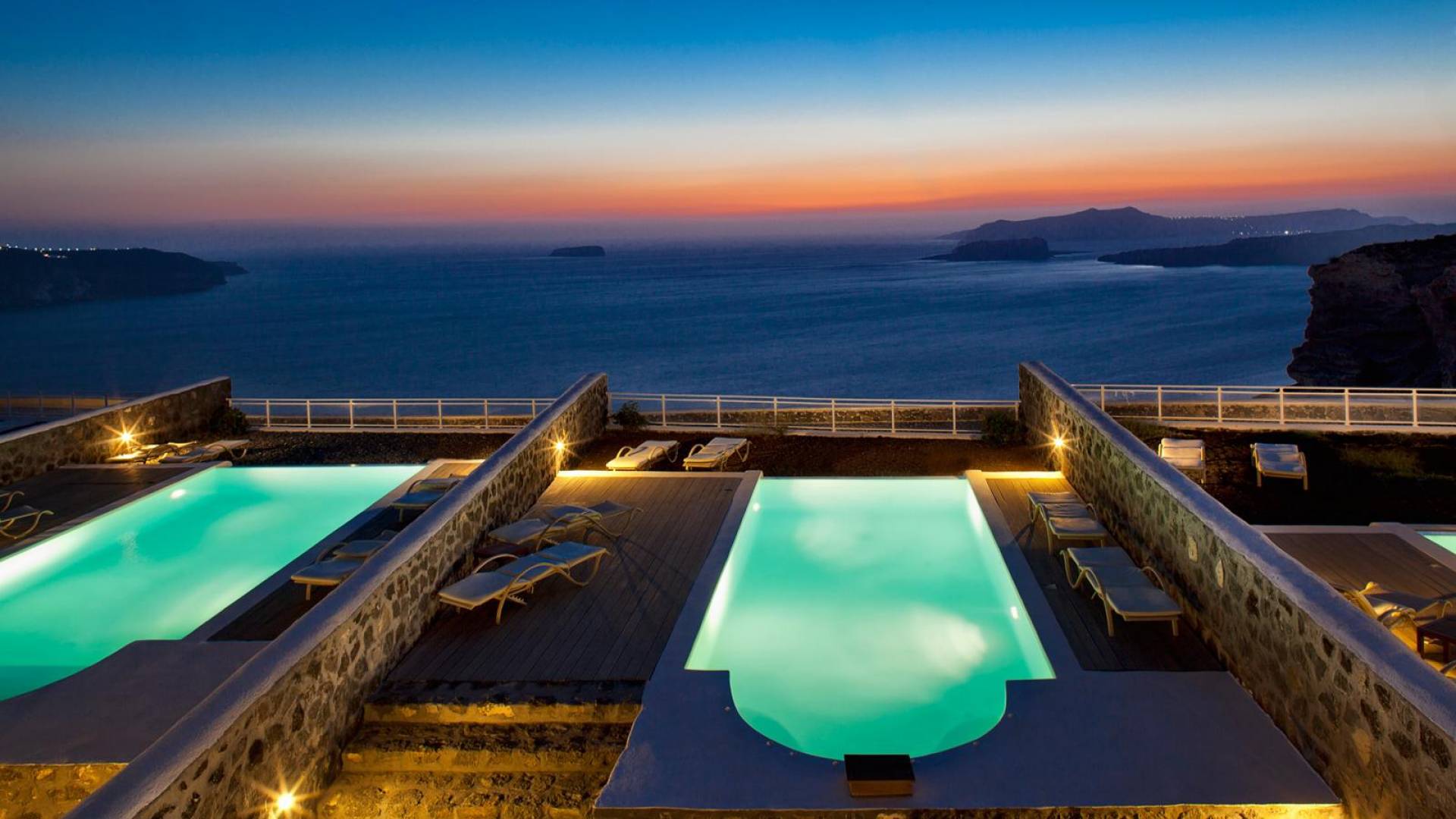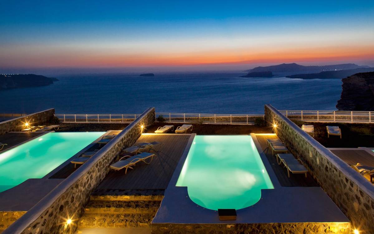 Thermes Luxury Villas Santorini - это традиционный кикладский комплекс вилл, в оформлении которого преобладают элементы камня, дерева, белого и синего цветов. Этот выдающийся отель простой, но шикарный, традиционный, но роскошный, с ощущением пространства, стиля и красочной атмосферы. Излишне говорить, что наряду с выдающимся внешним видом есть и очень стильные интерьеры.