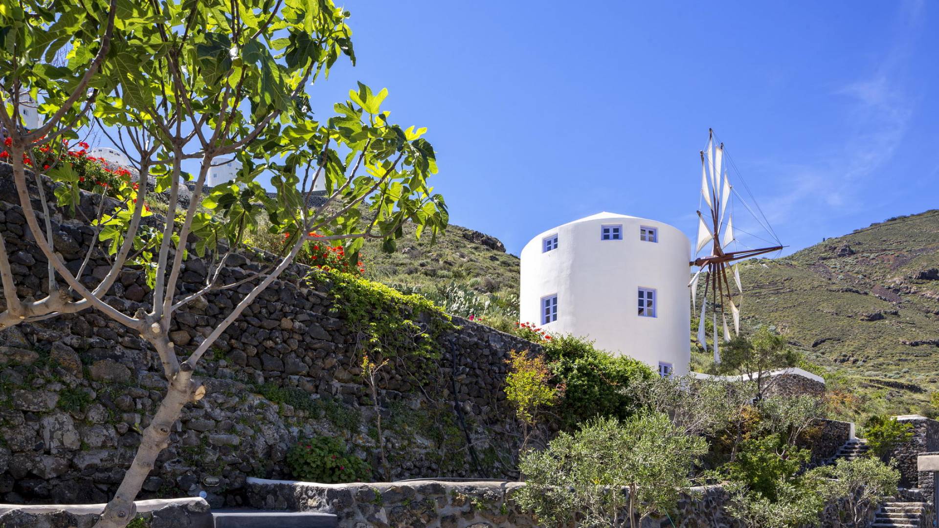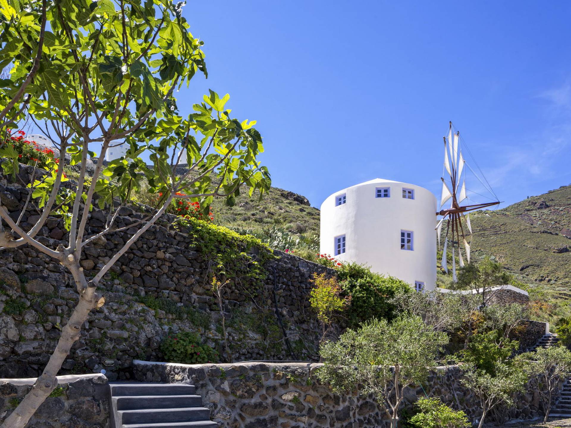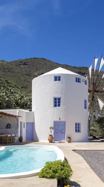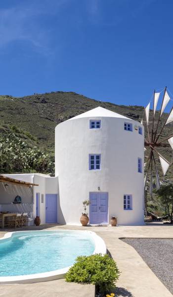 Santorini Windmill Villas - это комплекс из трех недавно построенных подобных роскошных ветряных мельниц, расположенный на прекрасном острове Санторини. Уникальное уединенное расположение вилл предлагает панорамный вид на Эгейское море и отражения восхода солнца на поверхности моря, которые видны даже из вашей кровати.