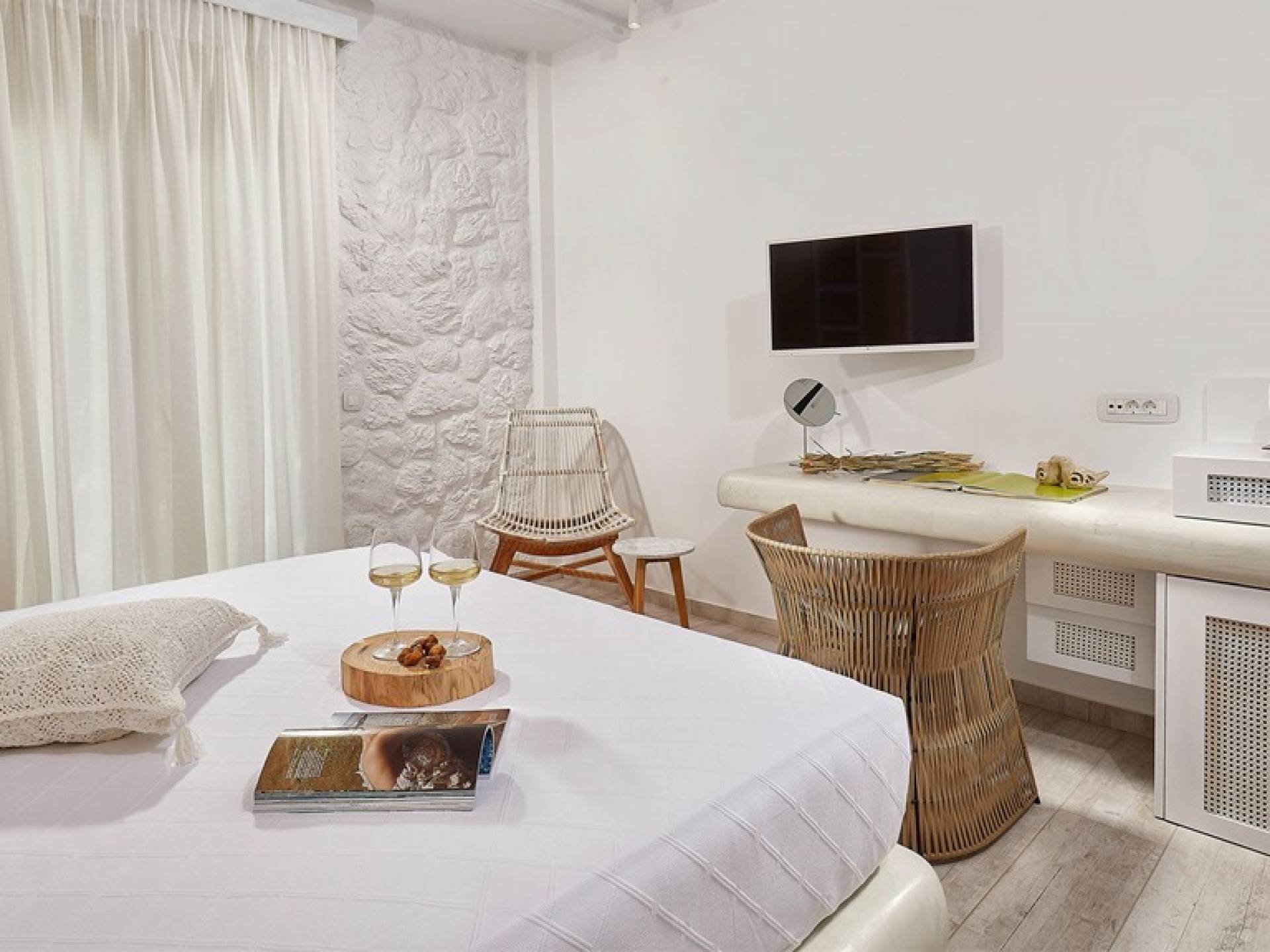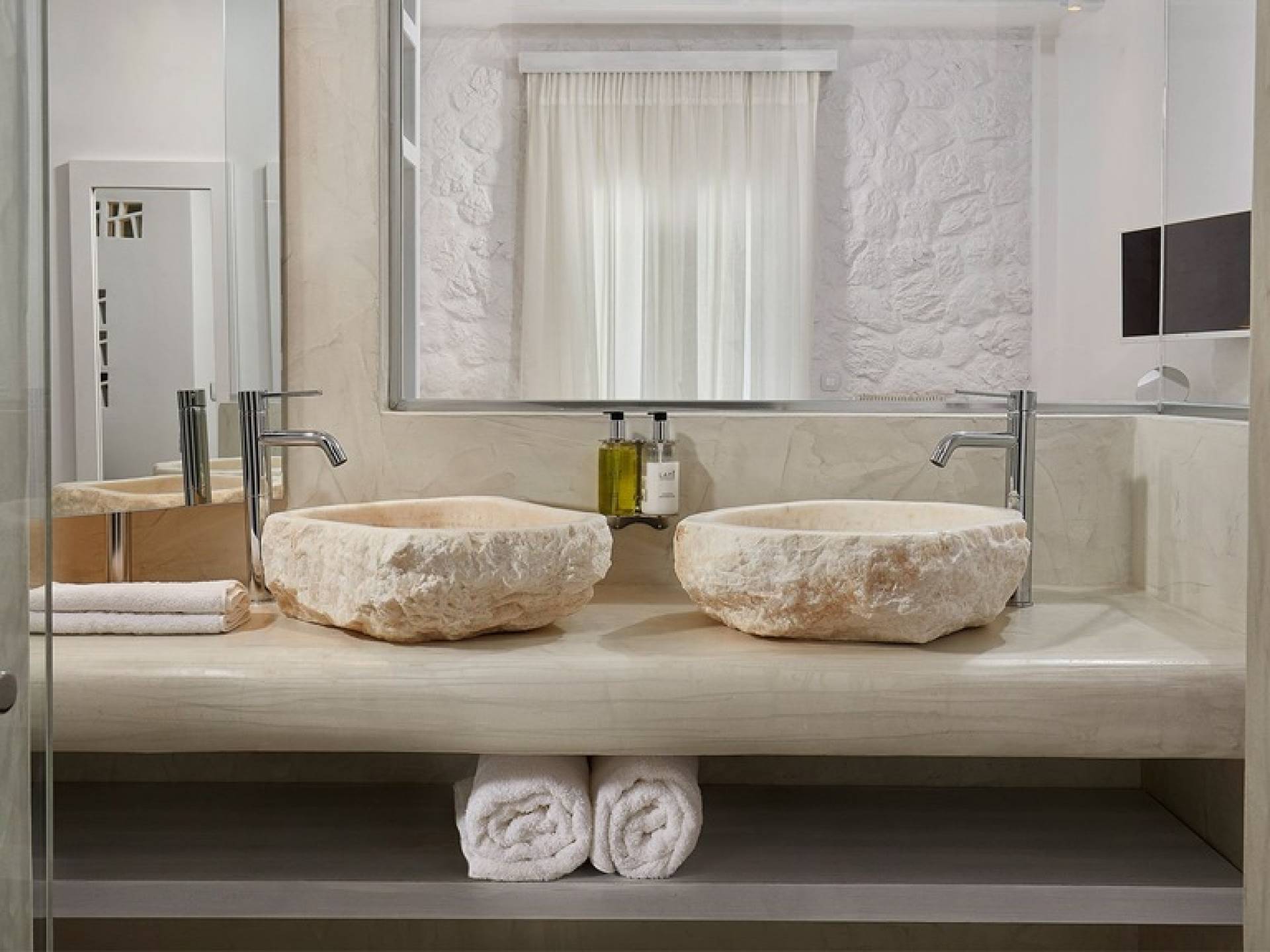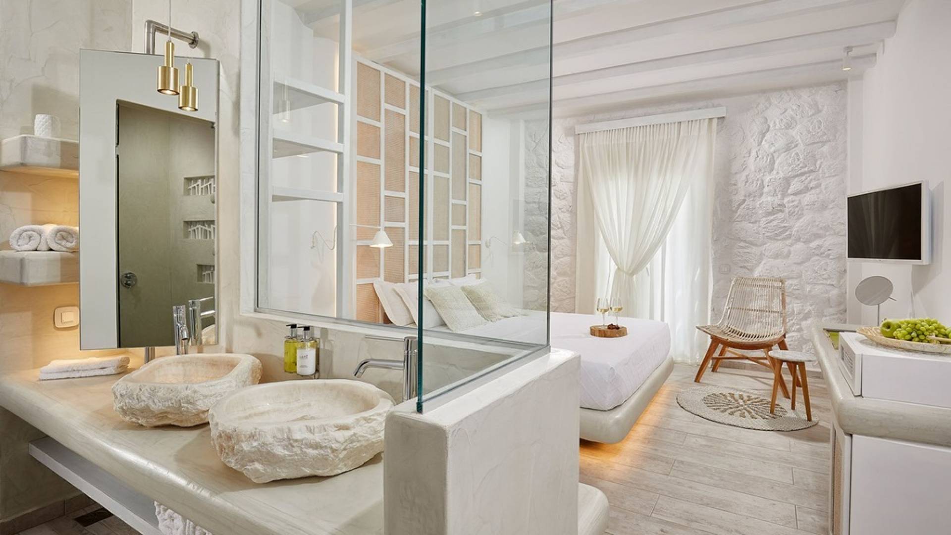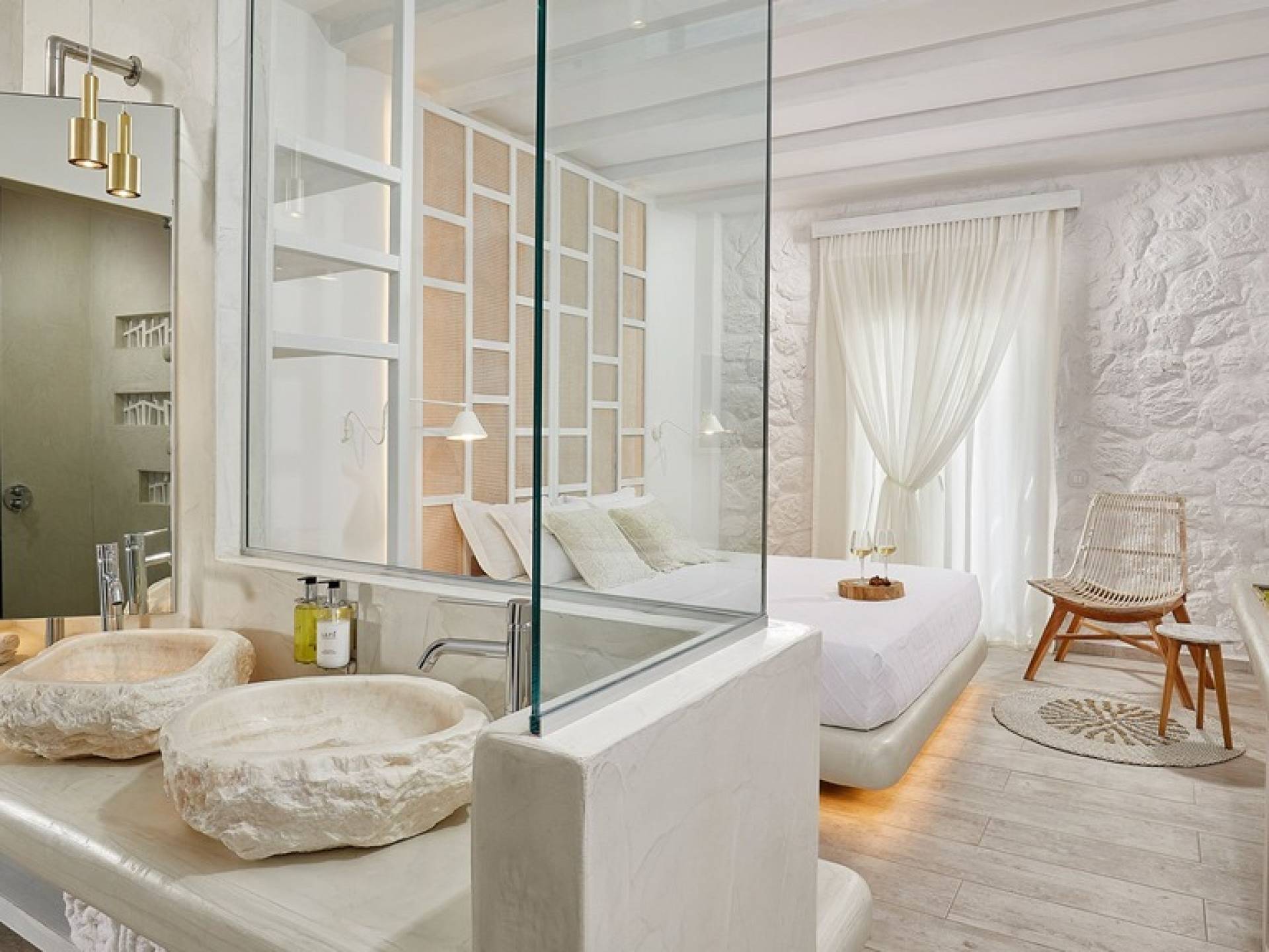 Люкс «Премиум» в Petri Suites разработан специально для 2 человек, его площадь составляет 23–27 м², а его продуманная планировка открытой планировки обеспечивает максимальное количество солнечного света и создает ощущение благополучия для гостей. Хорошо оборудованная двуспальная кровать гарантирует спокойный сон, полностью заряжая вас для сна на следующий день. Роскошная просторная ванная комната с душевой кабиной, в некоторых случаях подходящей для обоих гостей, оснащена одной или двумя раковинами. В интерьере преобладают белые цвета, которые создают ощущение свежести, а скрытое освещение вокруг кровати создает уникальное ощущение парения.