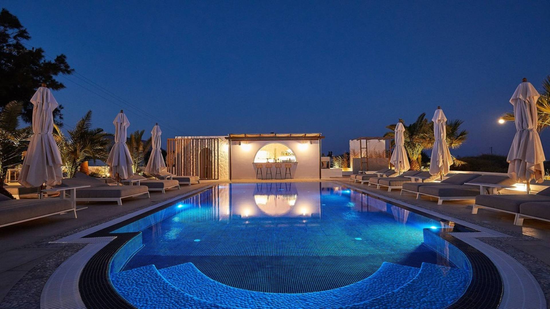 Открытый бассейн, украшающий территорию отеля Petri Suites, станет вашим оазисом возрождения, в котором вы сможете избежать утомительных моментов, вызванных греческой летней жарой. Кроме того, вокруг этого мерцающего бассейна вы начнете свой день с вкусного завтрака, купаясь в его восстанавливающих свойствах на фоне сверкающего моря. А чтобы насладиться атмосферой космополитического черного пляжа Периволос, он находится всего в 700 метрах от отеля.