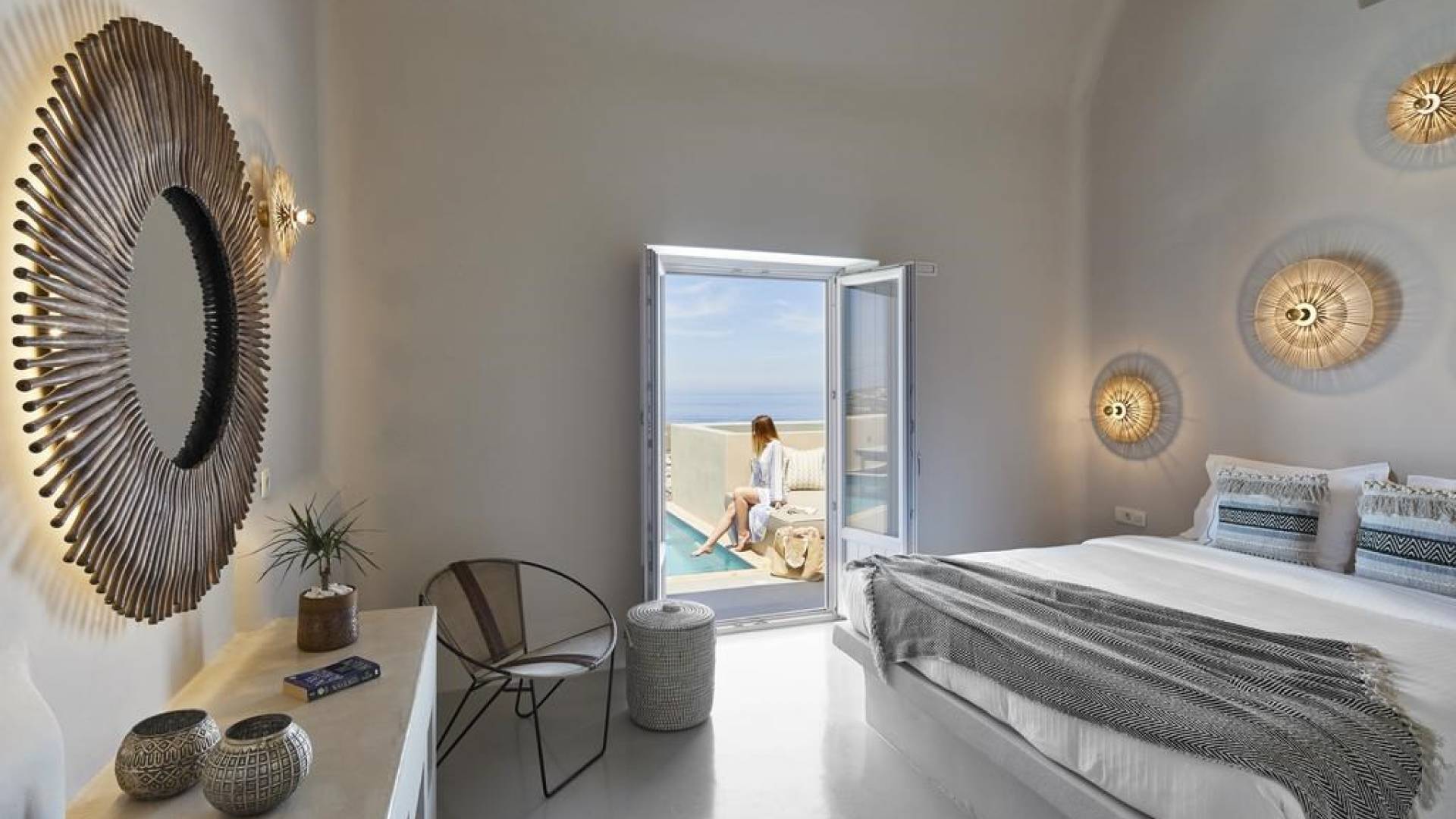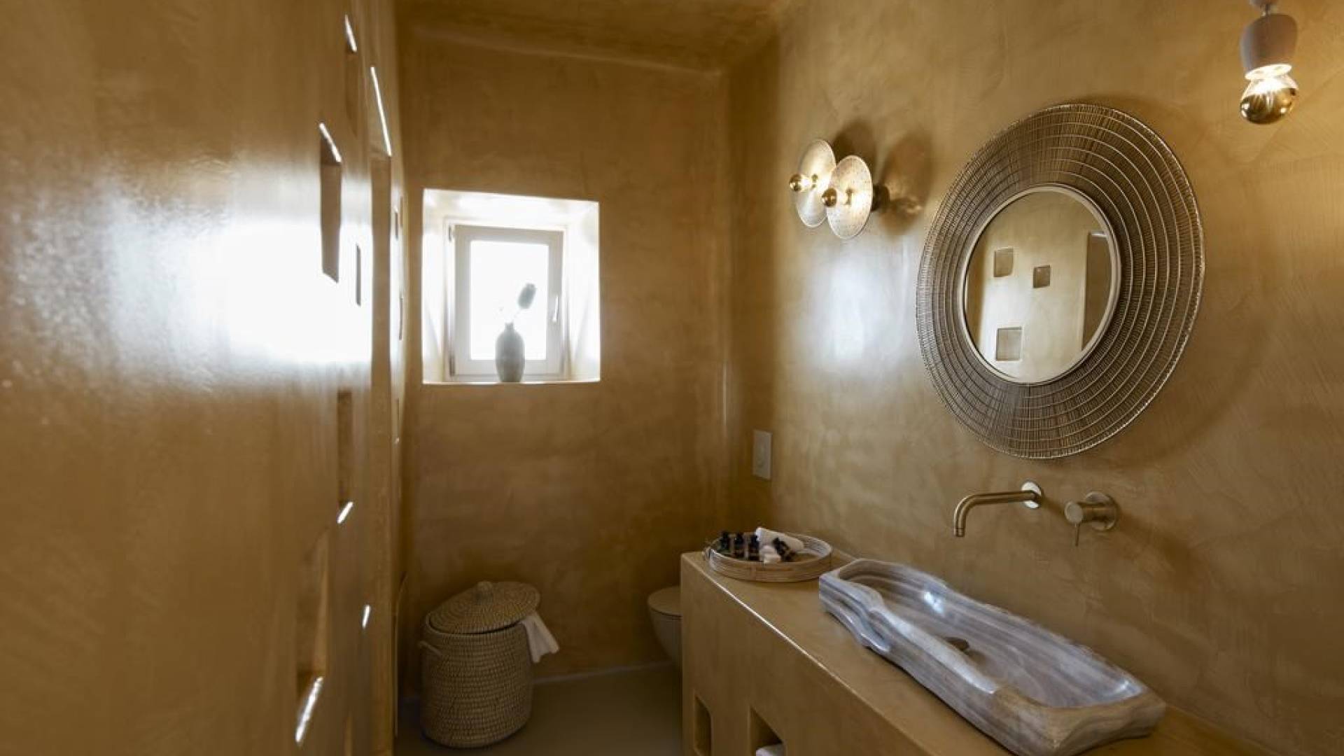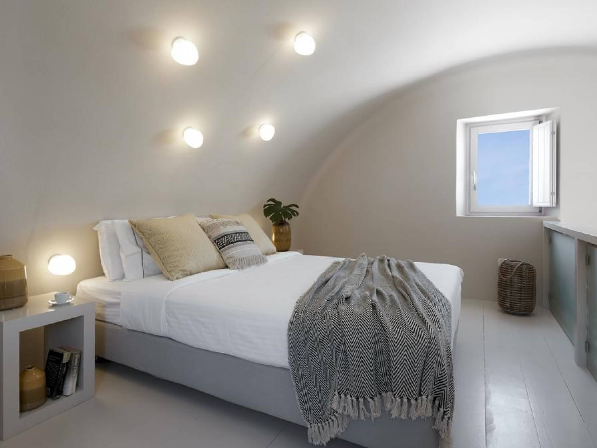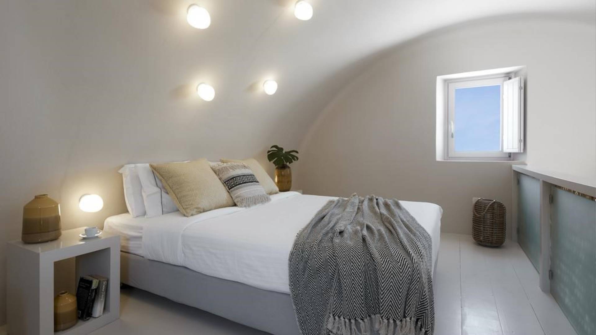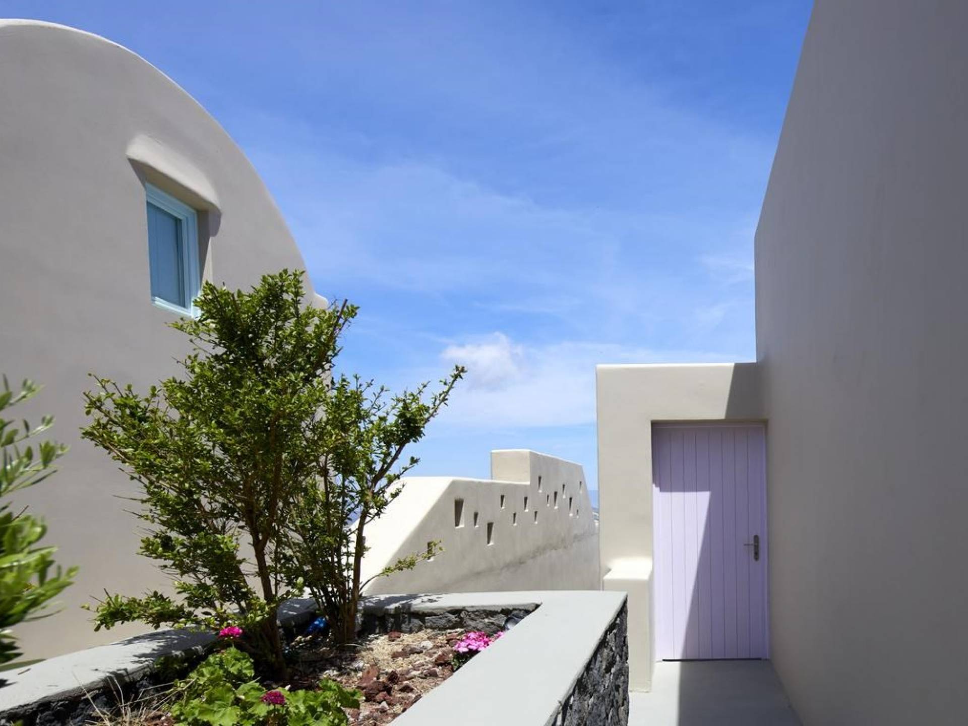 Северные виллы спроектированы почти одинаково, с той же неотразимой атмосферой, но каждая со своим неповторимым характером; разные цветовые палитры, разные концепции и, конечно же, уникальные шедевры местных и зарубежных художников, каждый со своим особенным вкусом, интегрированный в декор и повседневные функции вилл. Это истинное воплощение санторинианского жилья, возвышенное новое предложение жизни в элегантной простоте, погруженное в сенсационное путешествие движения, формы и цвета; погружен в искусство.