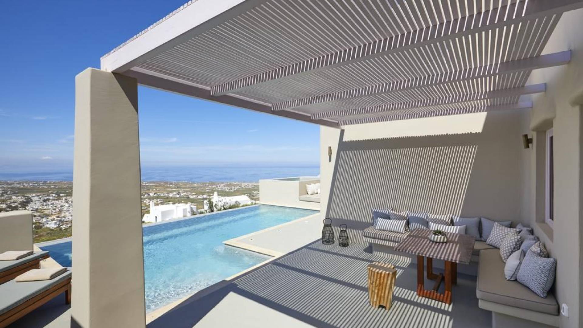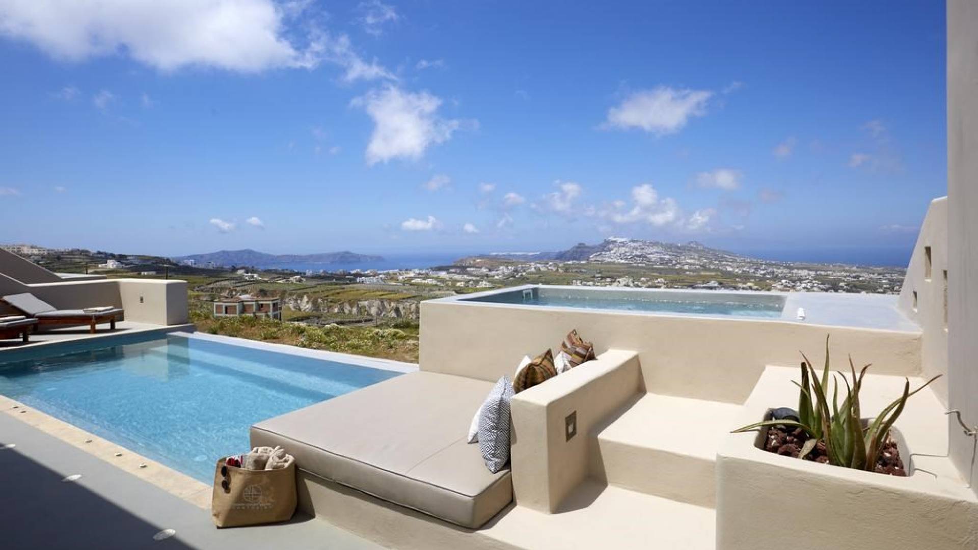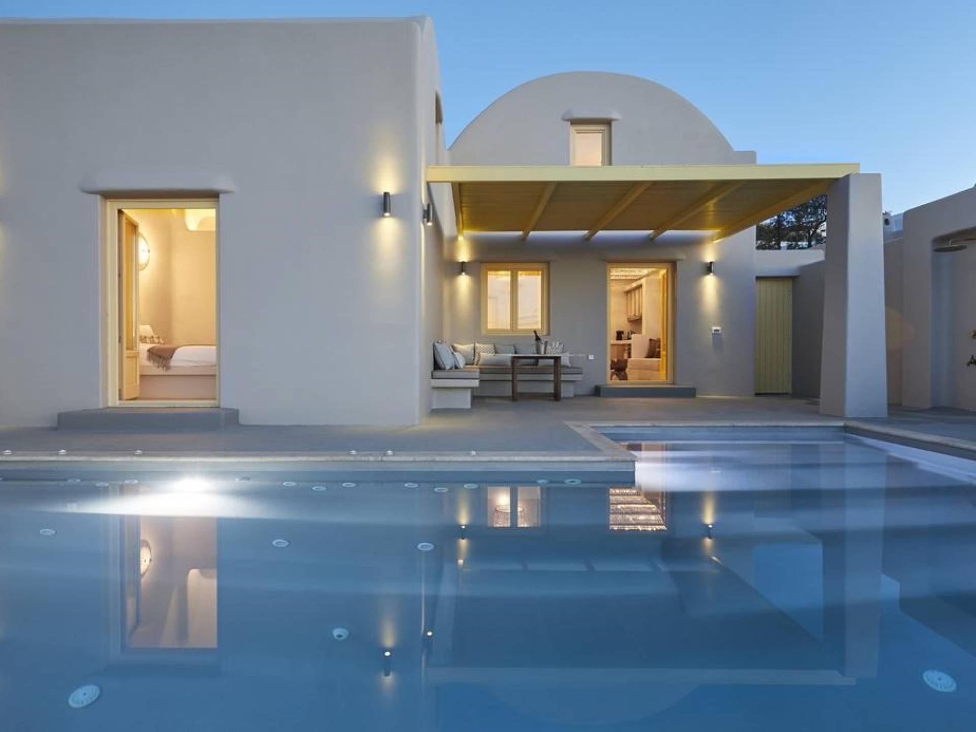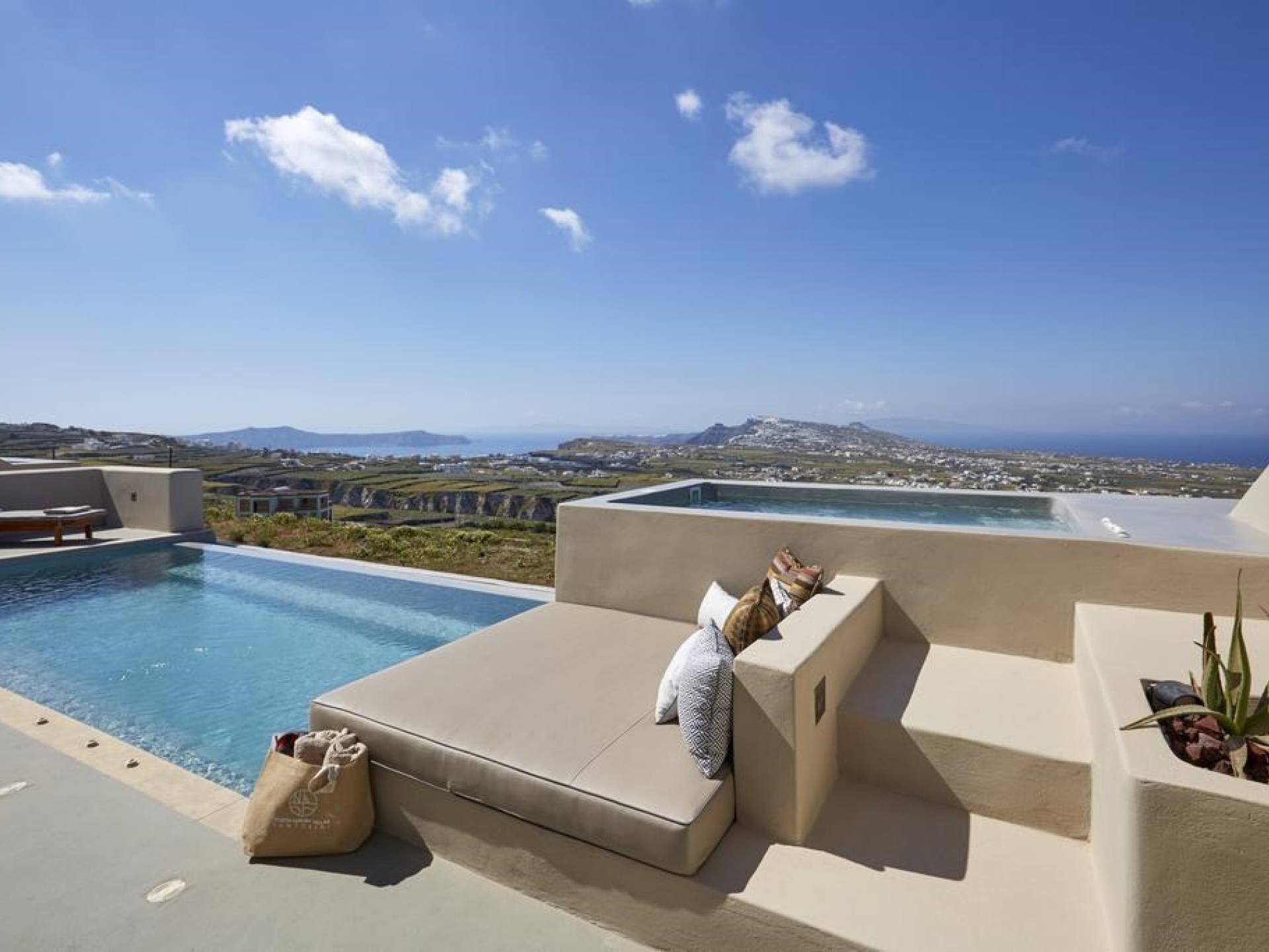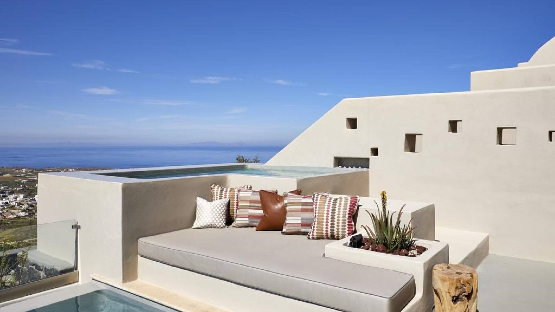 Мягкие цвета, такие как лазурный, светло-фиолетовый и изумрудный, виллы, обеспечивающие комфортное пребывание для 6 человек, с собственными верандами с бассейнами и художественными элементами, сделают ваше пребывание на виллах представительского класса незабываемым! Почувствуйте отголоски веков, исследуйте художественную сцену Санторини и погрузитесь в освежающее спокойствие эксклюзивных вилл. В изысканном помещении и на очаровательной открытой территории вашей виллы вы проведете бесконечные часы отдыха и ценных моментов со своими близкими, создавая длительные и сильные воспоминания в одном из самых великолепных мест в мире, на захватывающем дух Санторини!