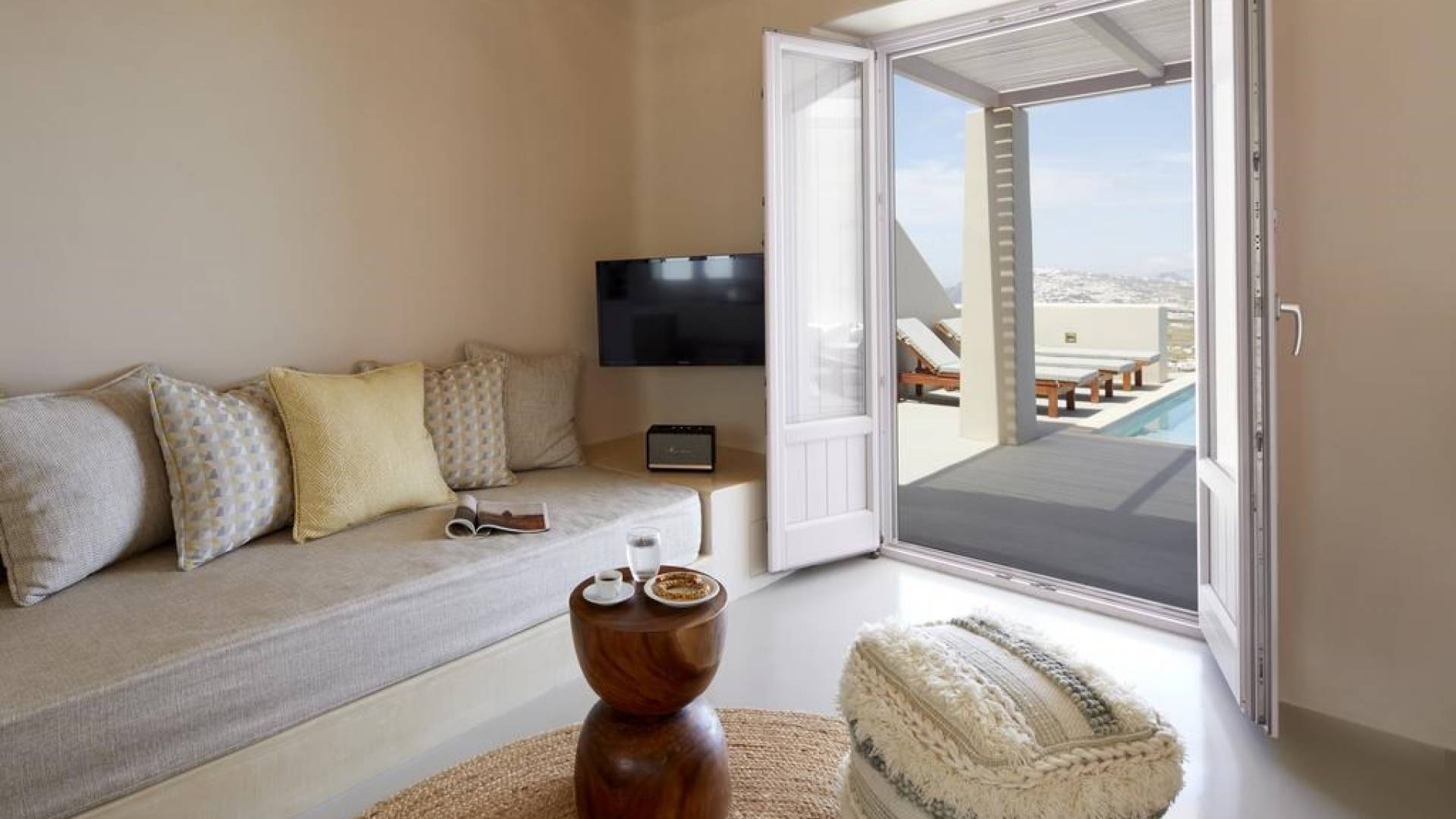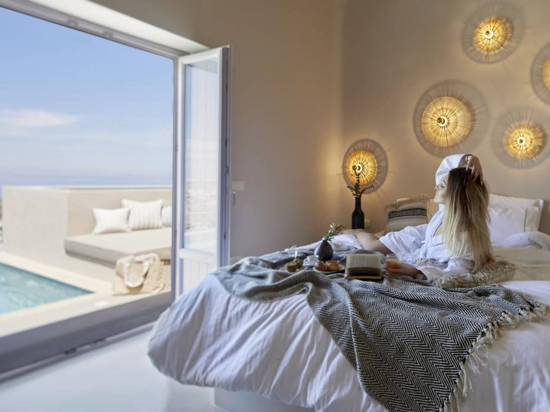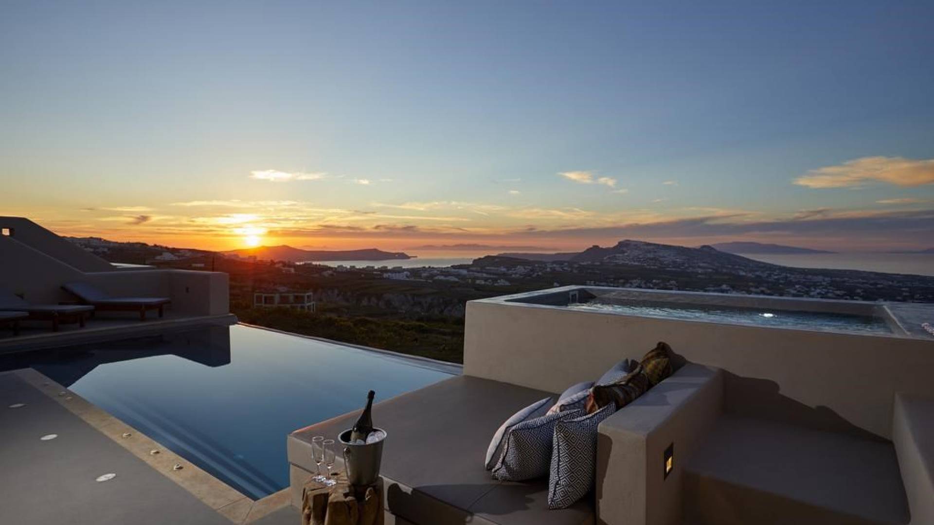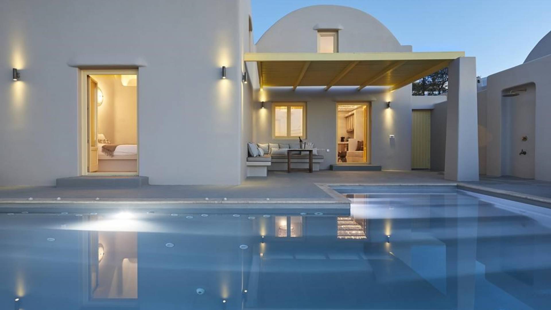 Мягкие цвета, такие как лазурный, светло-фиолетовый и изумрудный, виллы, обеспечивающие комфортное пребывание для 6 человек, с собственными верандами с бассейнами и художественными элементами, сделают ваше пребывание на виллах представительского класса незабываемым! Почувствуйте отголоски веков, исследуйте художественную сцену Санторини и погрузитесь в освежающее спокойствие эксклюзивных вилл. В изысканном помещении и на очаровательной открытой территории вашей виллы вы проведете бесконечные часы отдыха и ценных моментов со своими близкими, создавая длительные и сильные воспоминания в одном из самых великолепных мест в мире, на захватывающем дух Санторини!