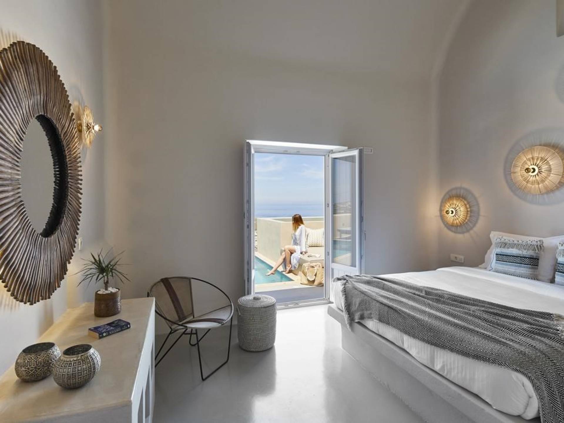 В North Villas страсть владельцев к художественному творчеству и многофункциональным деталям привела их к тому, что произведения искусства стали неотъемлемой частью повседневной жизни. Таким образом, безмятежное царство северных вилл стало райским уголком для проживания, который будет проведите свой самый незабываемый отдых на Санторини. Изящно стоящий на вершине холма с видом на кальдеру комплекс North Villas является воплощением кикладского размаха, сочетанием художественного самовыражения и утонченной изысканности в атмосфере захватывающей дух красоты.