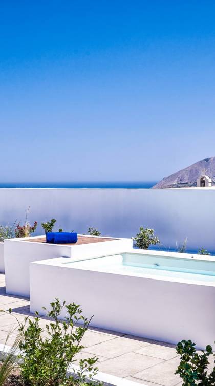 Стандартный люкс Katikies Garden Pool Suite с видом на море представляет собой утонченное стильное пространство со спальней и отдельной гостиной. Снаружи вас ждет завораживающее зрелище, 120 м22 из которого открывается захватывающий дух частный сад. Это секретное пространство с частным бассейном и кабинкой для переодевания представляет собой безмятежное убежище, где можно наслаждаться радостями жизни на досуге — под мягкими лучами солнца или сиянием звезд.
