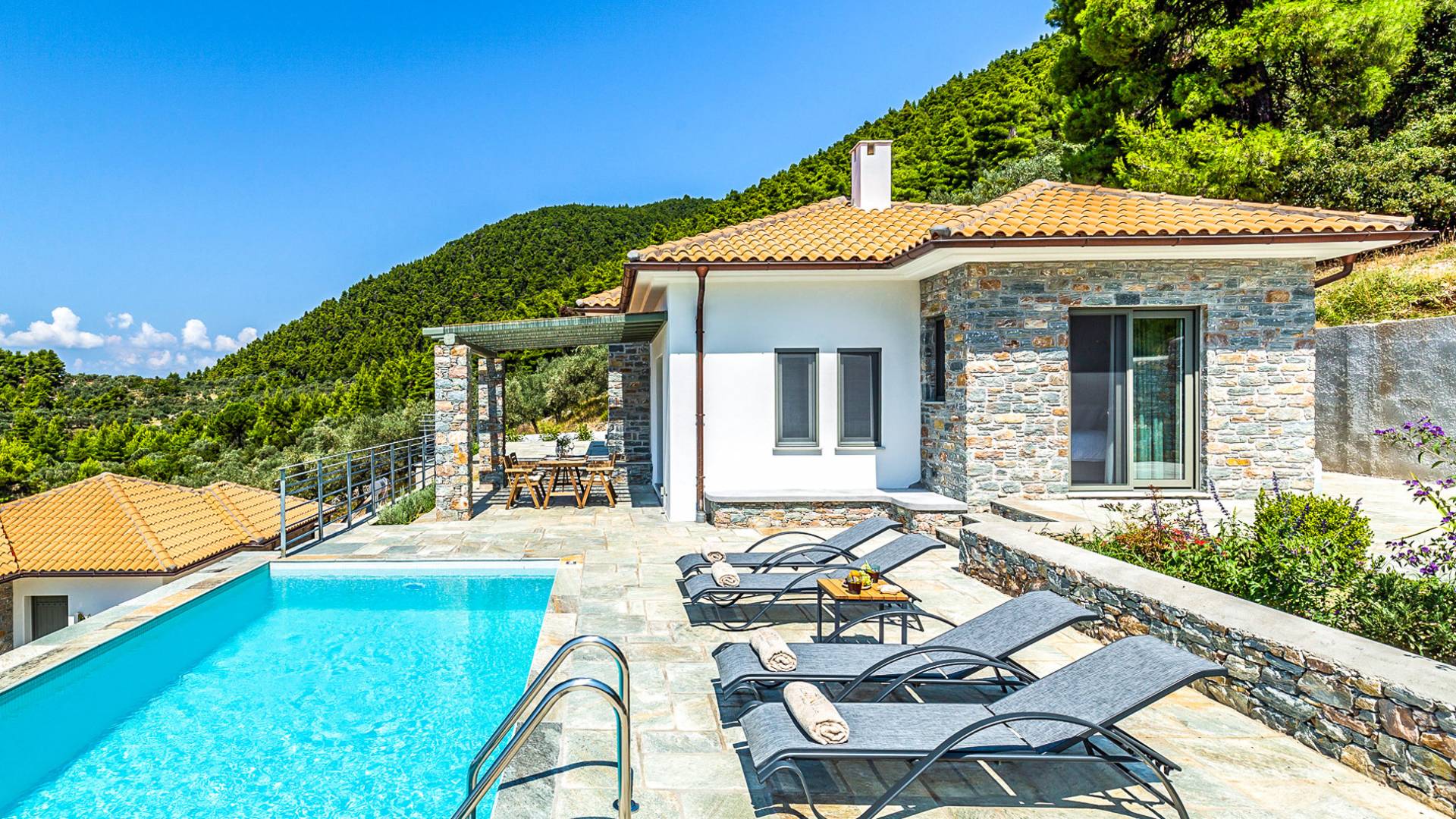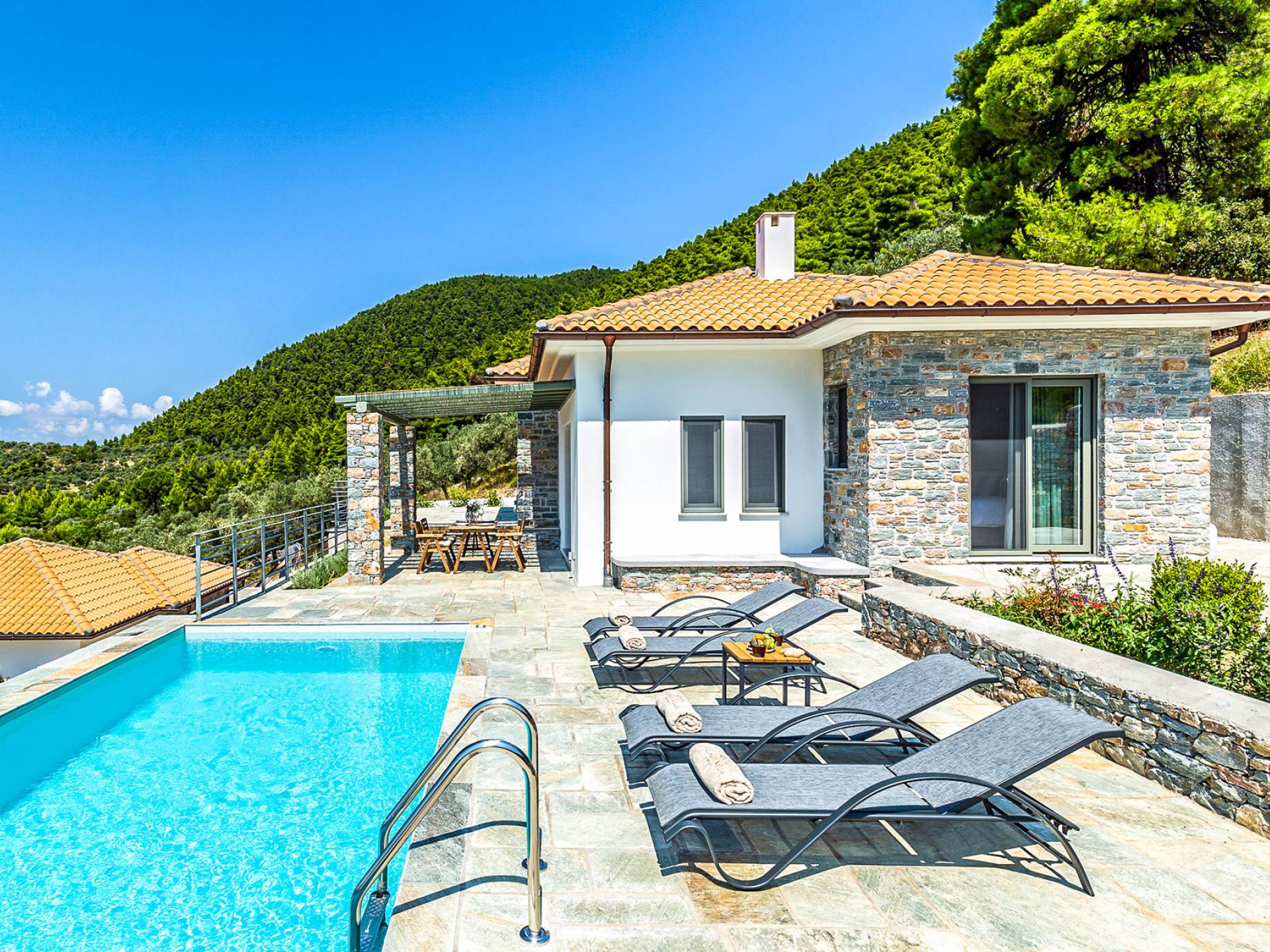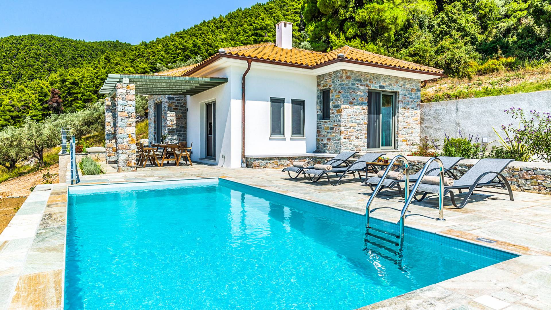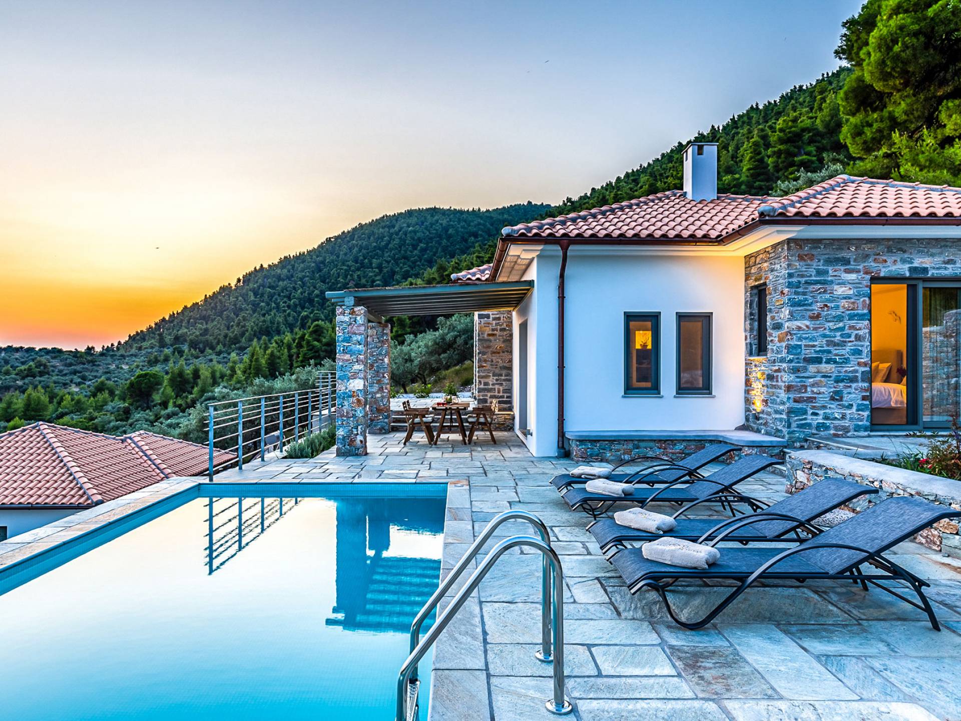 Elios Zen Villas Skopelos — это роскошный комплекс, состоящий из трех одинаковых вилл, каждая с частным бассейном, который предлагает все современные удобства в сочетании с естественной и традиционной красотой зелени Скопелоса.