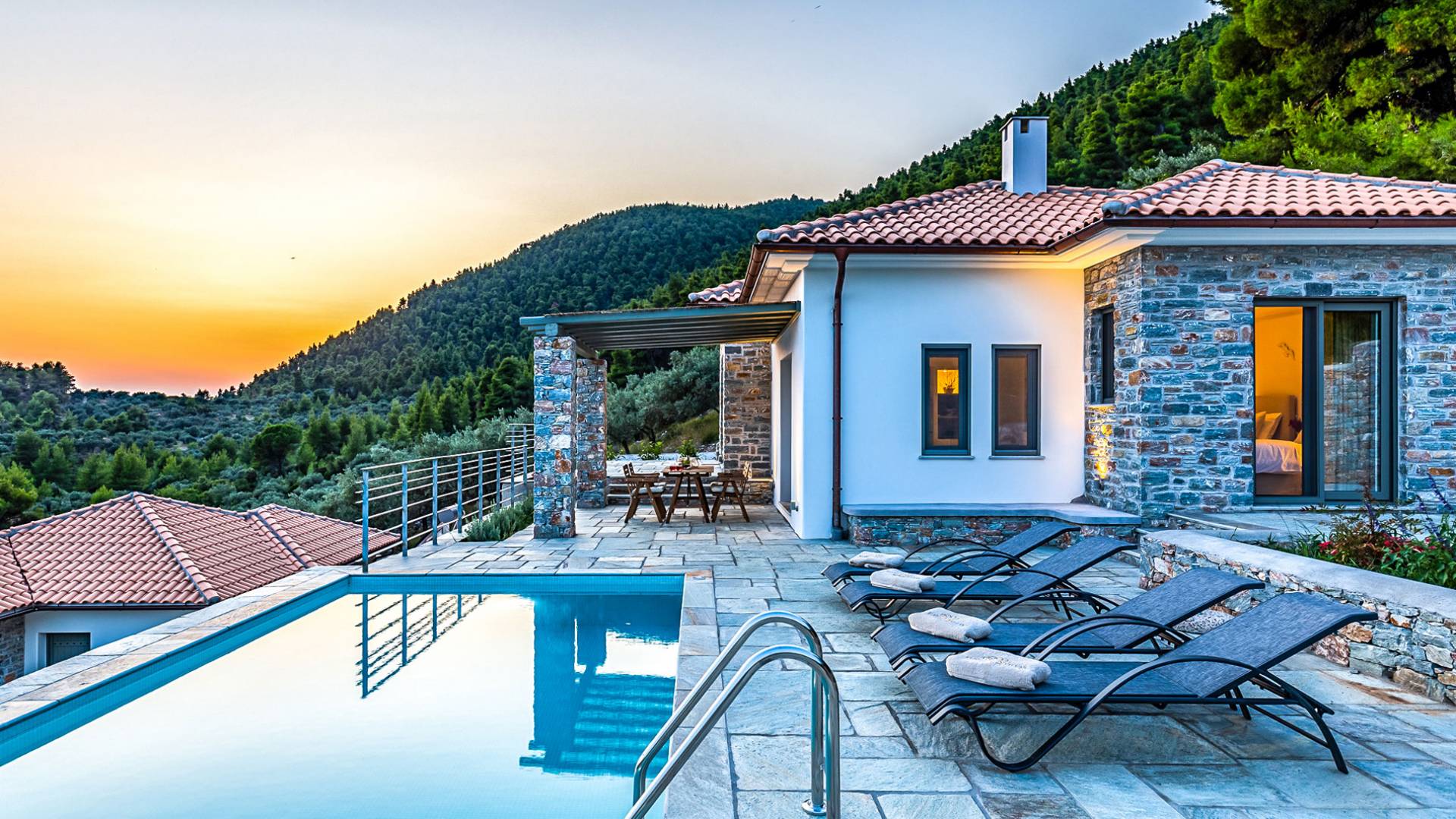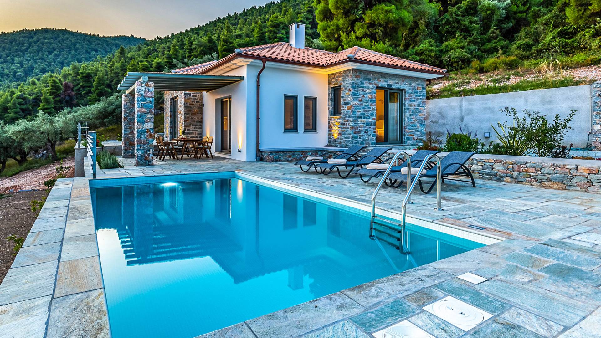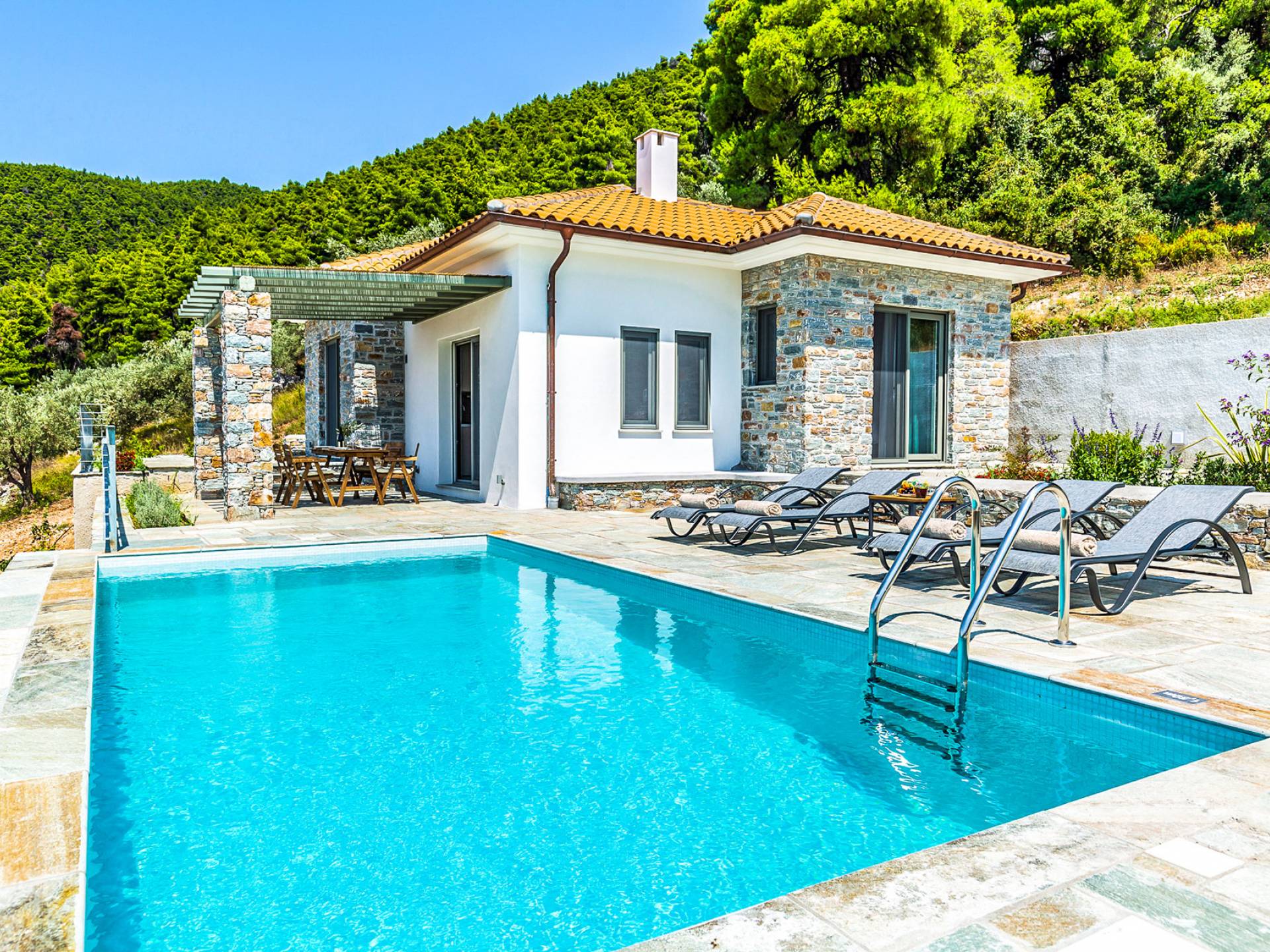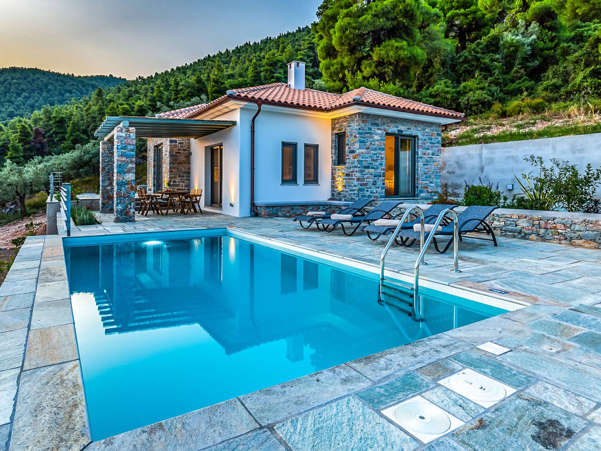 Elios Zen Villas Skopelos — это роскошный комплекс, состоящий из трех одинаковых вилл, каждая с частным бассейном, который предлагает все современные удобства в сочетании с естественной и традиционной красотой зелени Скопелоса.