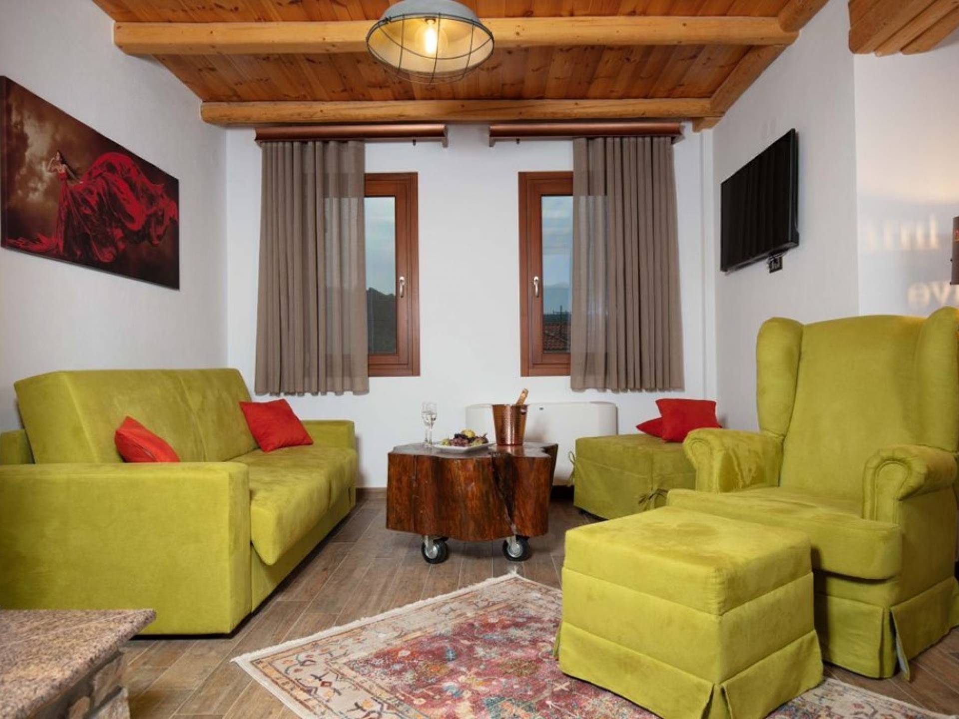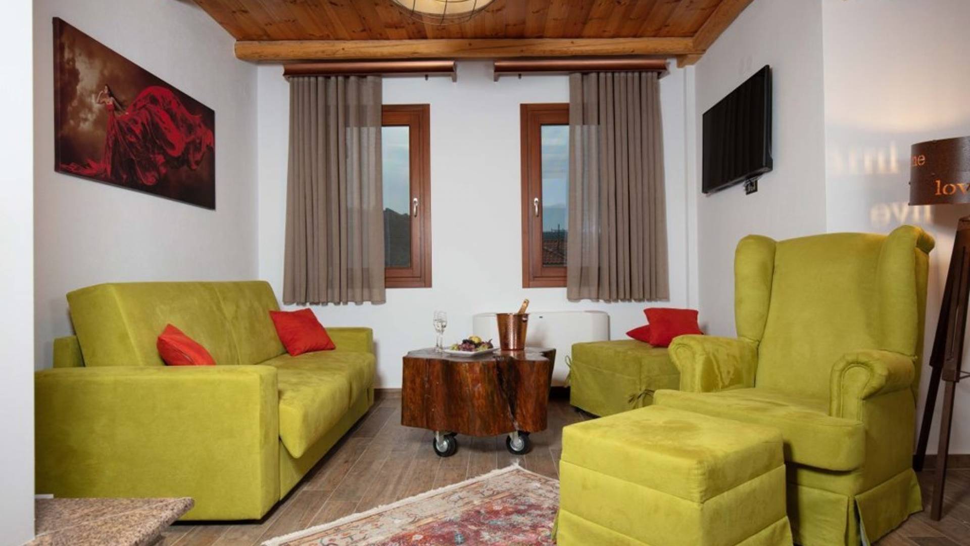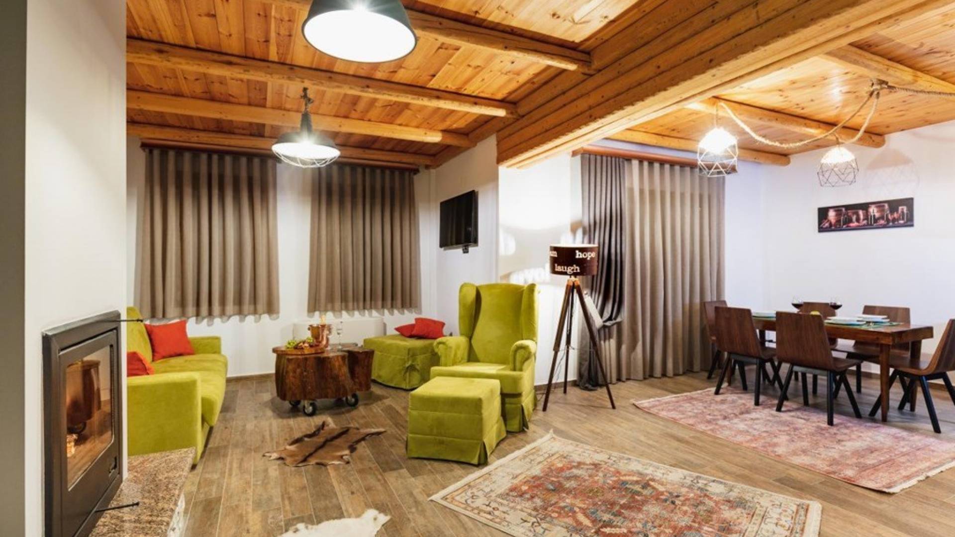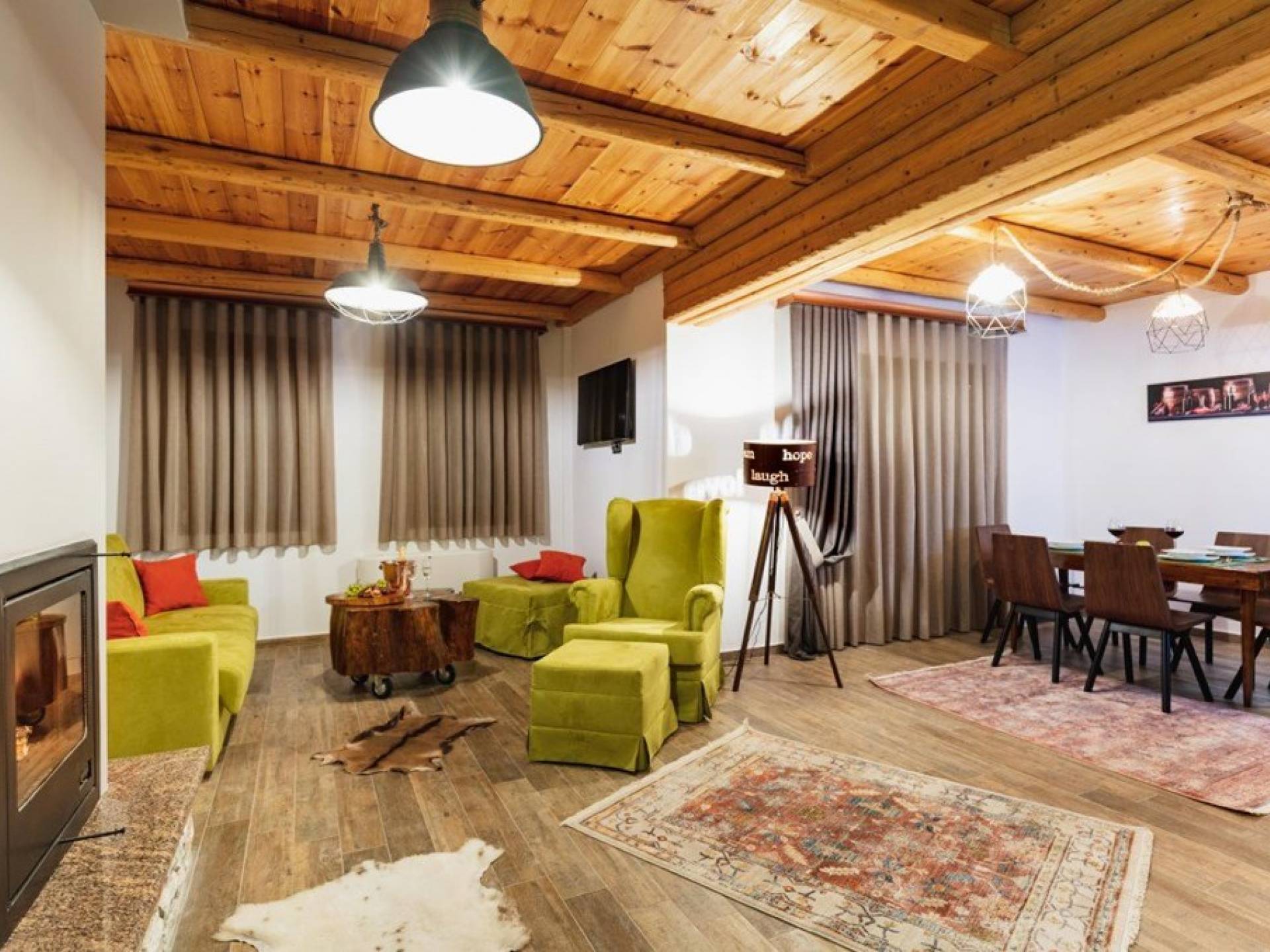 Виллы имеют современный, изящный декор и экстравагантную мебель, предлагая удобные и роскошные условия проживания. В каждом есть две спальни и ванные комнаты. В просторной гостиной вы можете собрать своего партнера, друзей или гостей, чтобы посмотреть телевизор, поговорить или выпить бокал вина и посидеть у камина. На полностью оборудованной кухне вы чувствуете себя как дома.