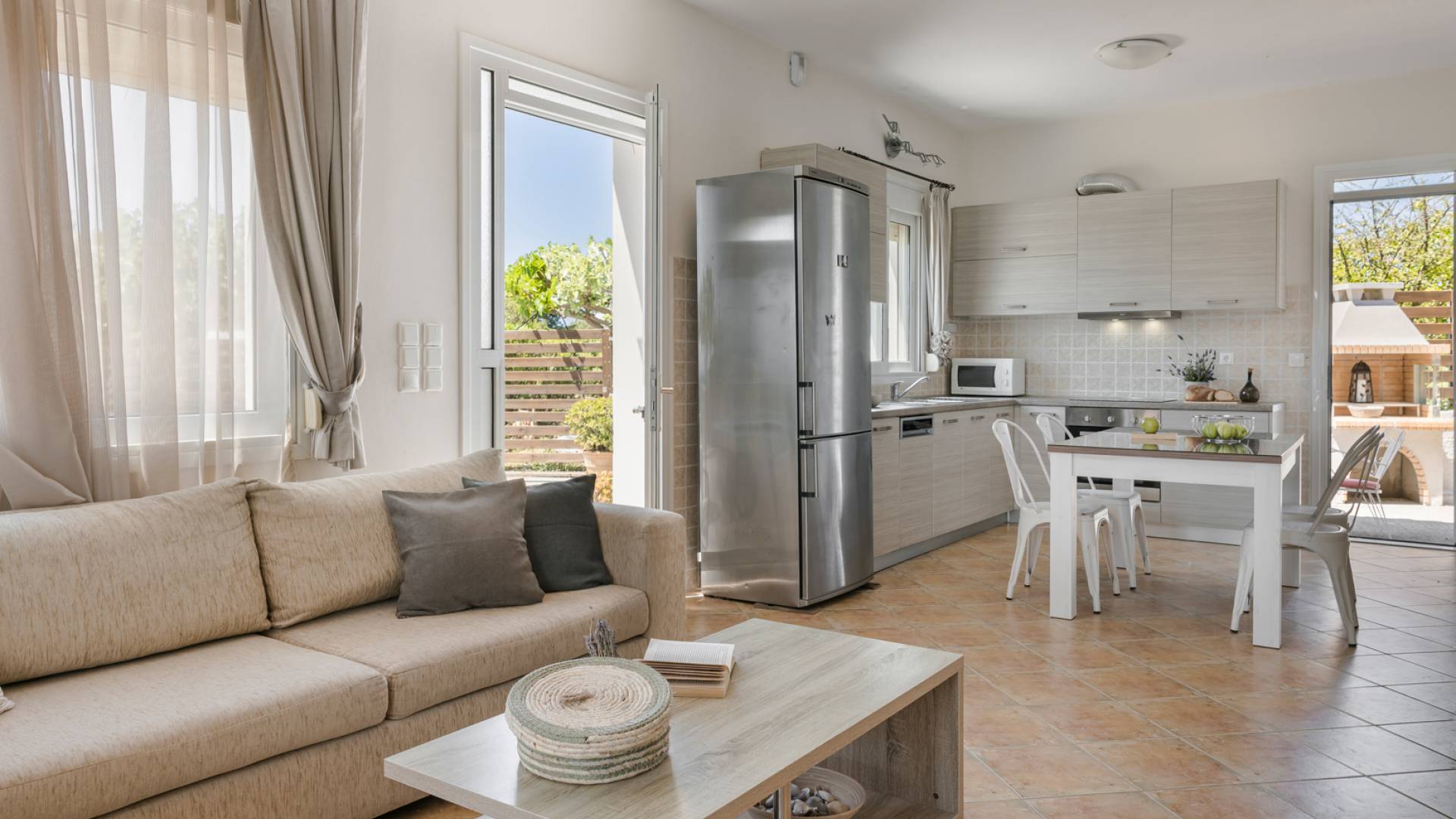 Он был реконструирован с использованием местных материалов и традиционных технологий, в результате чего получилось заманчивое сочетание истории острова с современными нотками. Яркий современный интерьер виллы сдержанно гармонирует с окружающим пейзажем. Внутри вы найдете сочетание вдохновляющего современного декора и аутентичных ароматов Кефалонии. Землистые тона дерева и оттенки белого, серого и бежевого оттенков акцентируются предметами и мебелью ярких, но теплых оттенков, которые обеспечивают спокойный естественный выход для изумления чувств.