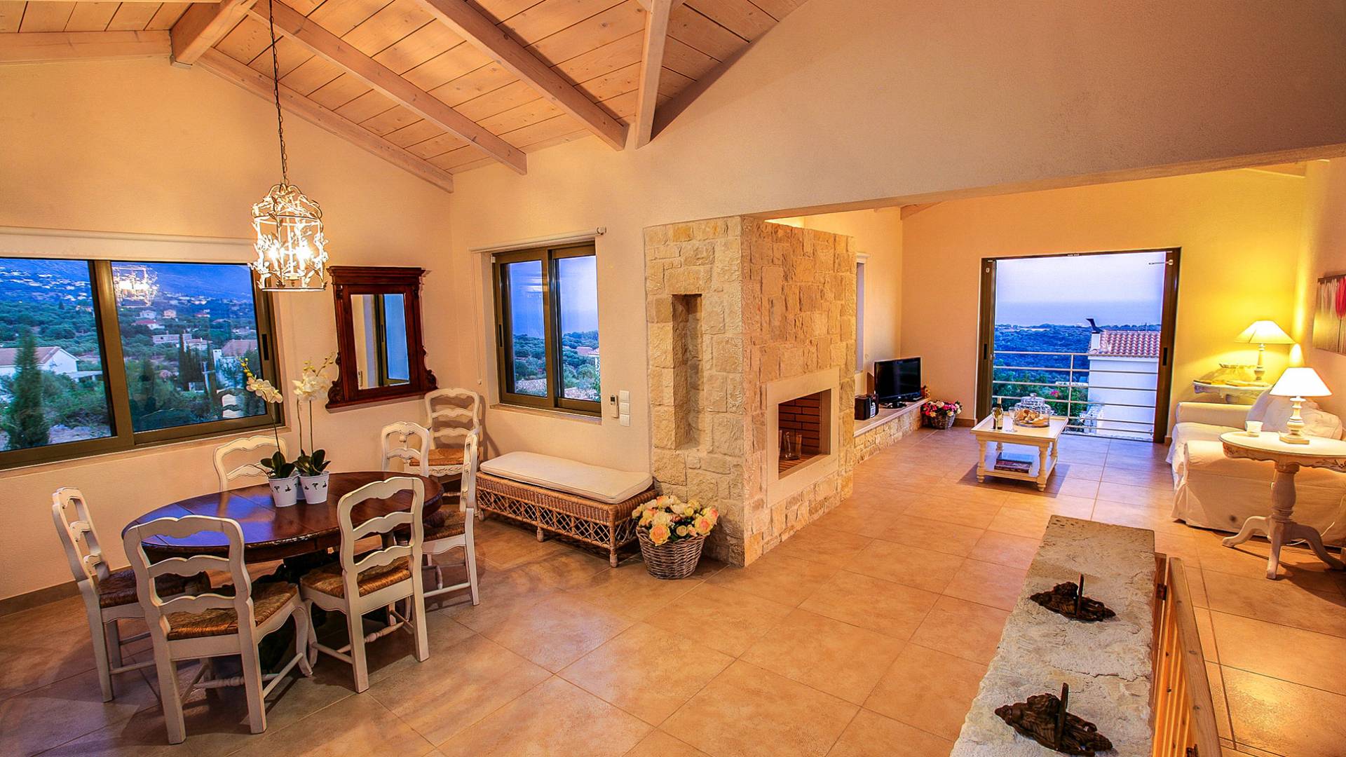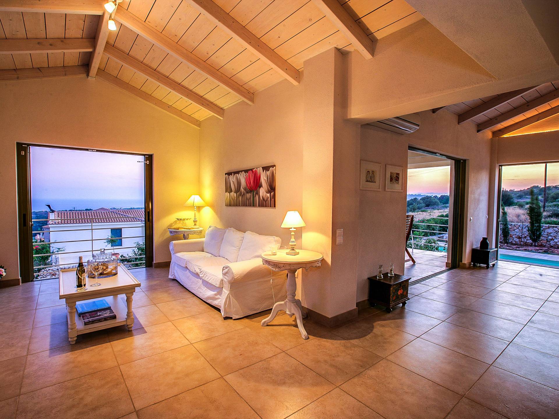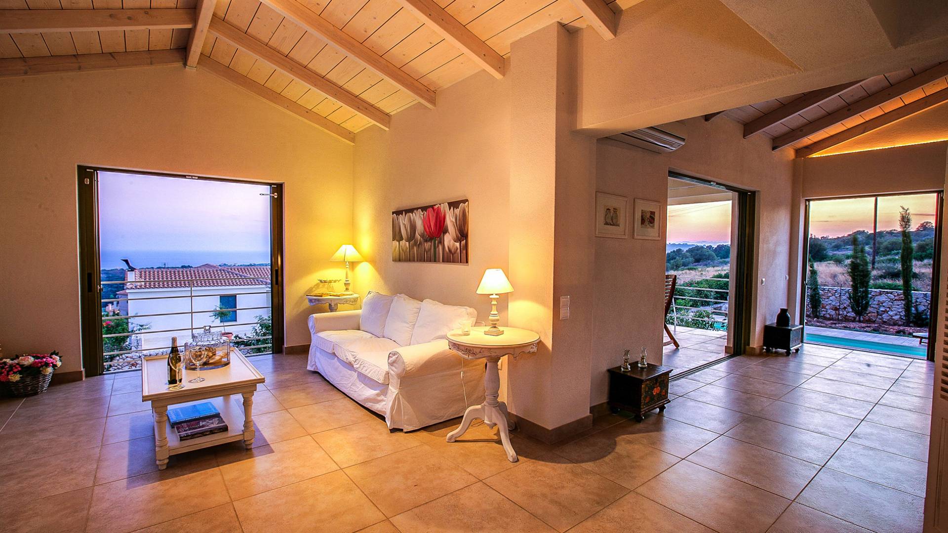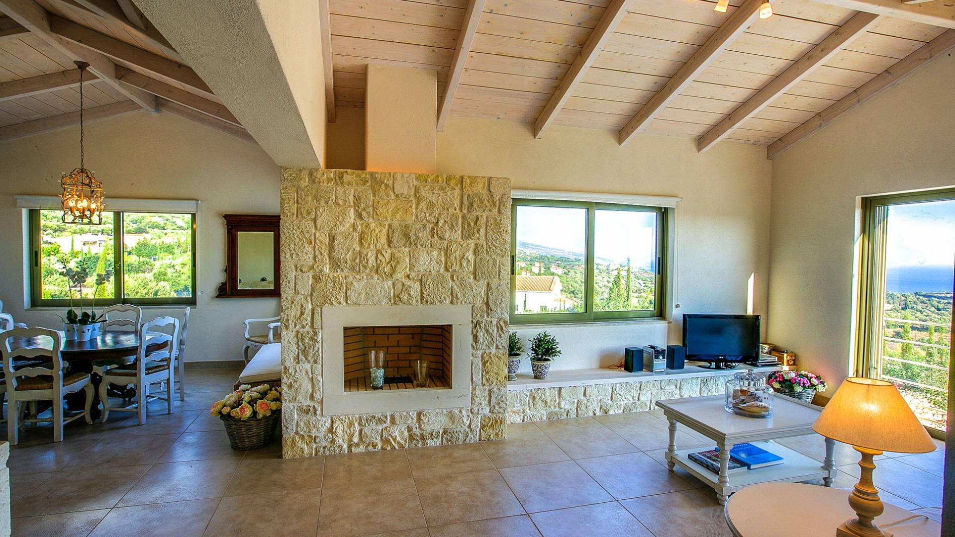 Вилла Linatela расположена на двух этажах, с основными жилыми помещениями на нижнем уровне. На первом этаже находится хорошо оборудованная просторная гостиная с каменным камином и удобными креслами. К гостиной примыкает формальная обеденная зона открытого пространства и отдельная кухня с прямым выходом на затененный балкон с беседкой и обеденным гарнитуром на открытом воздухе. Из кухни на террасу у бассейна ведут примерно 7 ступенек внешней лестницы. Терраса у бассейна переходит в просторную гостиную / обеденную зону в тени перголы, которая идеально подходит для трапез на открытом воздухе или прохладного напитка на закате. При возвращении в главный зал мраморная лестница ведет на первый этаж и в главную спальню. Во всех четырех спальнях виллы есть ванные комнаты. В главной спальне есть отдельная гостиная и открывается к тенистой открытой площадке с садовой мебелью. Две дополнительные спальни с прямым выходом в сад располагают зоной отдыха на открытом воздухе. Из окон открывается великолепный вид на природные пейзажи и Ионическое море.