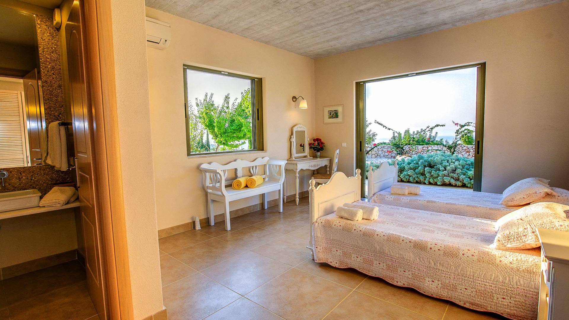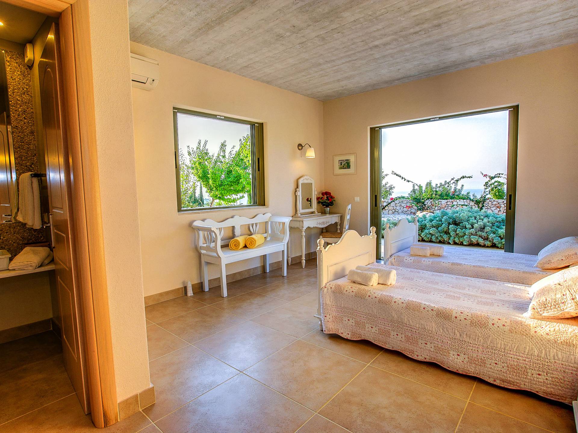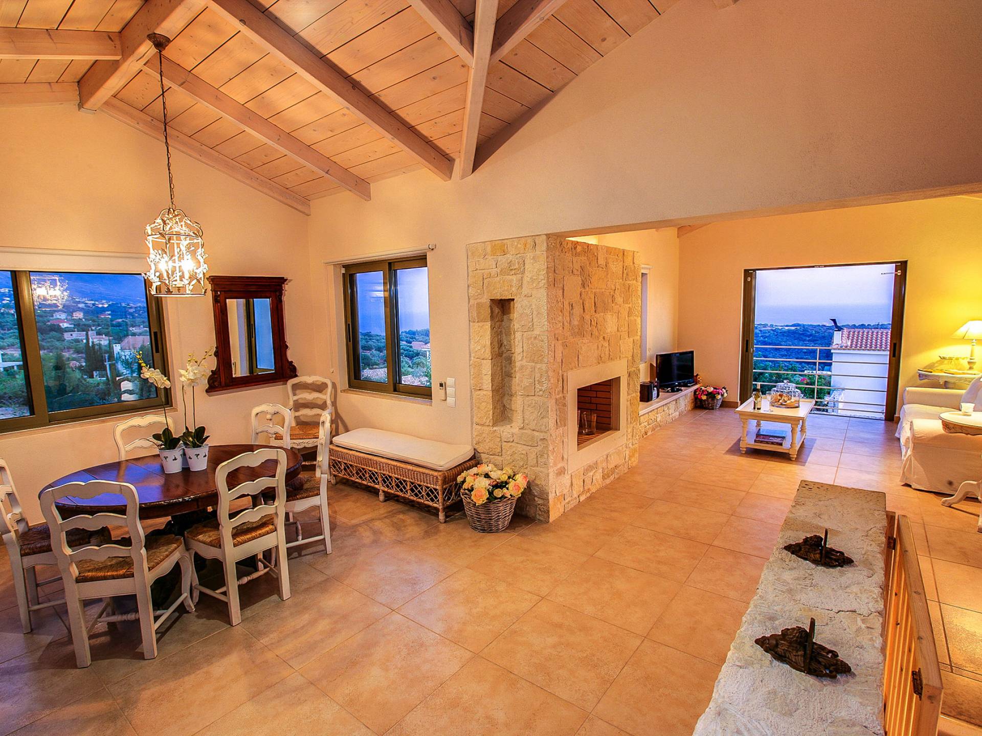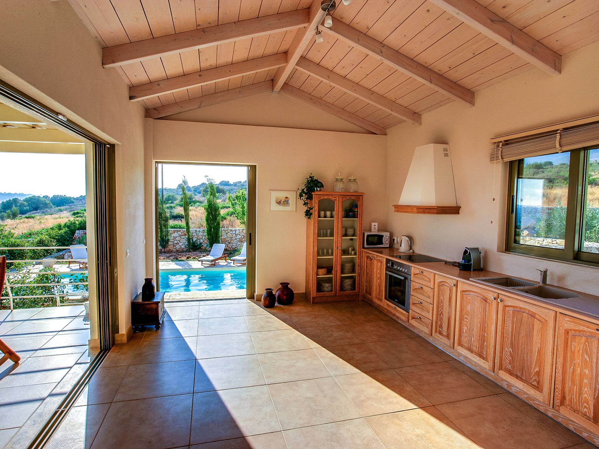 Вилла Linatela расположена на двух этажах, с основными жилыми помещениями на нижнем уровне. На первом этаже находится хорошо оборудованная просторная гостиная с каменным камином и удобными креслами. К гостиной примыкает формальная обеденная зона открытого пространства и отдельная кухня с прямым выходом на затененный балкон с беседкой и обеденным гарнитуром на открытом воздухе. Из кухни на террасу у бассейна ведут примерно 7 ступенек внешней лестницы. Терраса у бассейна переходит в просторную гостиную / обеденную зону в тени перголы, которая идеально подходит для трапез на открытом воздухе или прохладного напитка на закате. При возвращении в главный зал мраморная лестница ведет на первый этаж и в главную спальню. Во всех четырех спальнях виллы есть ванные комнаты. В главной спальне есть отдельная гостиная и открывается к тенистой открытой площадке с садовой мебелью. Две дополнительные спальни с прямым выходом в сад располагают зоной отдыха на открытом воздухе. Из окон открывается великолепный вид на природные пейзажи и Ионическое море.