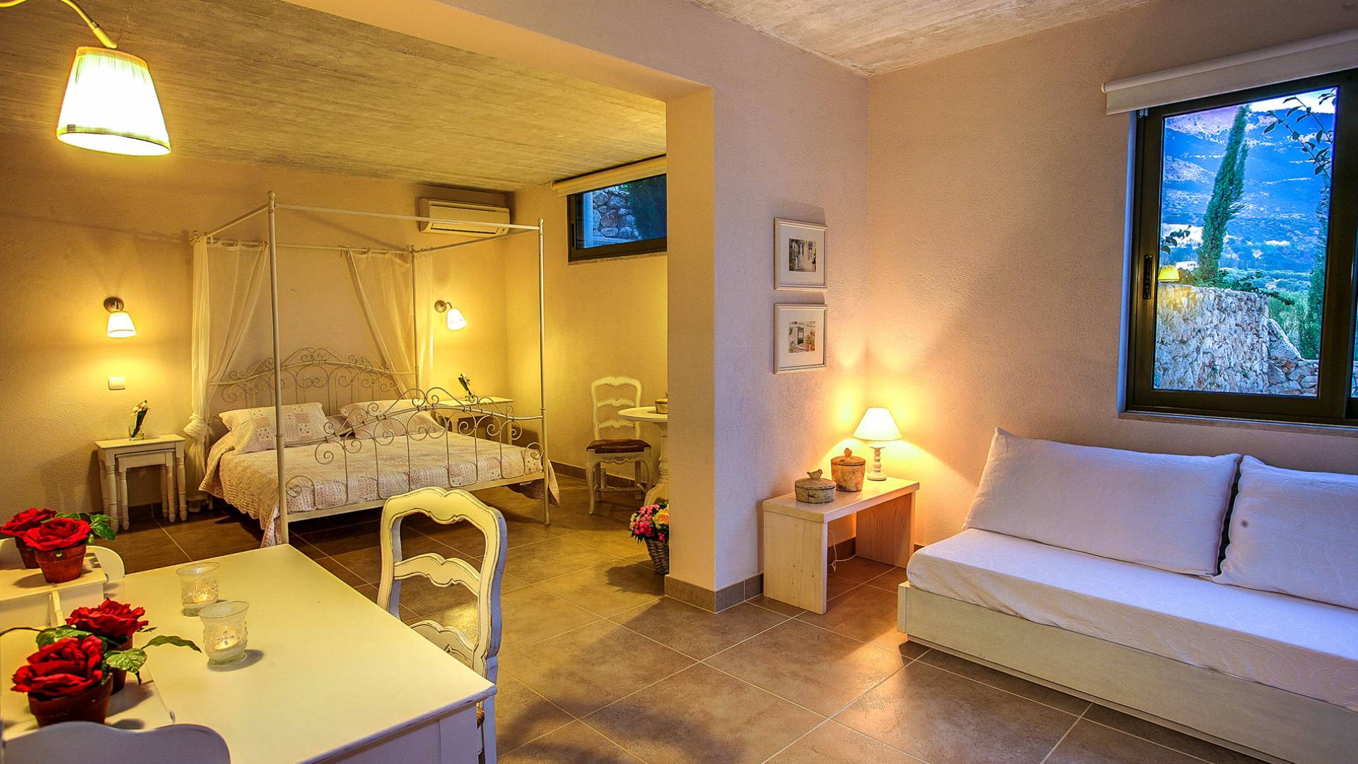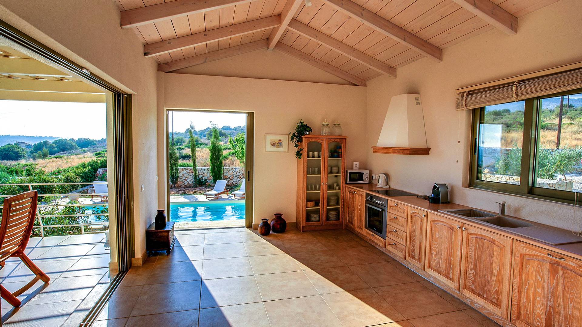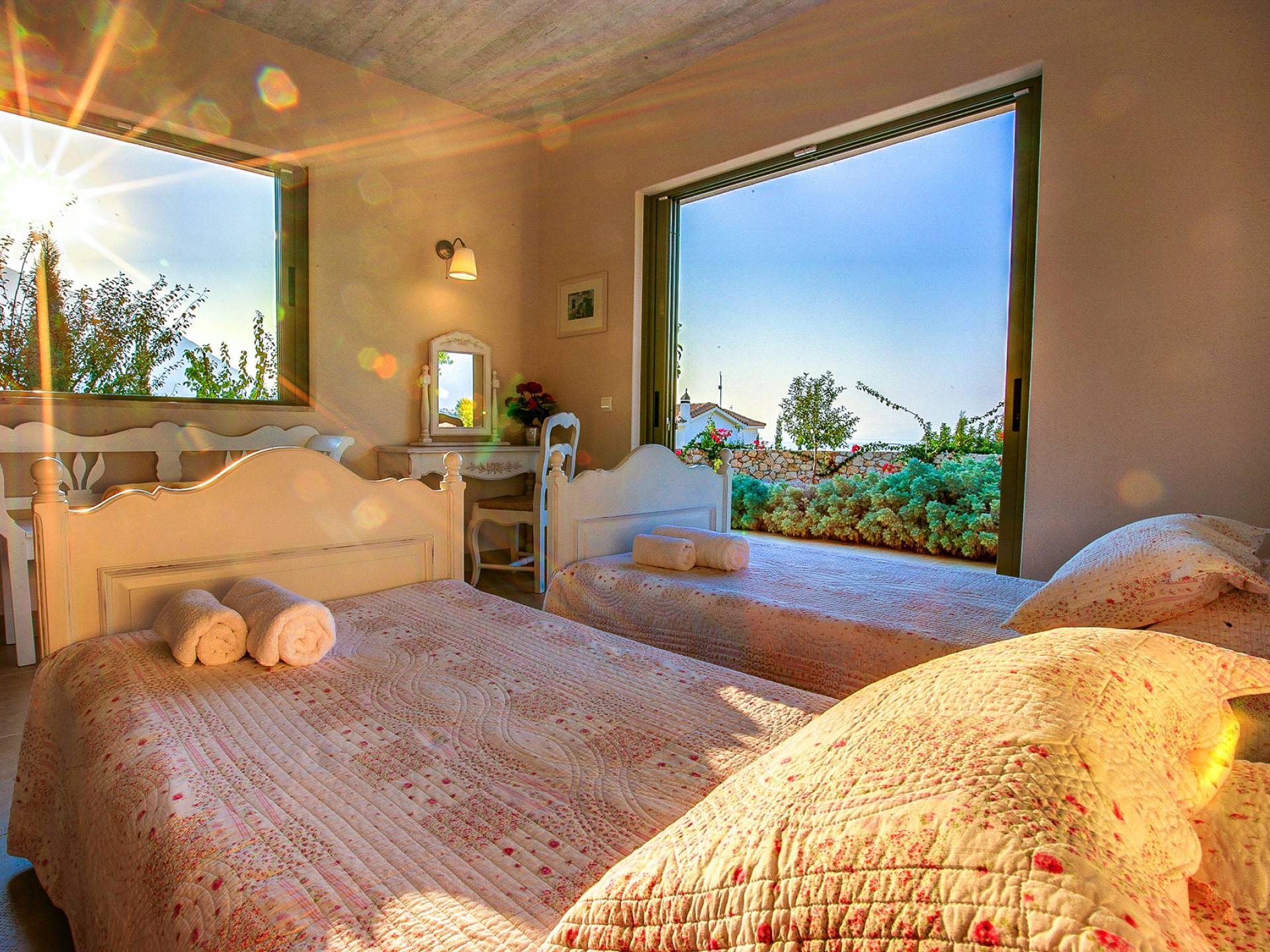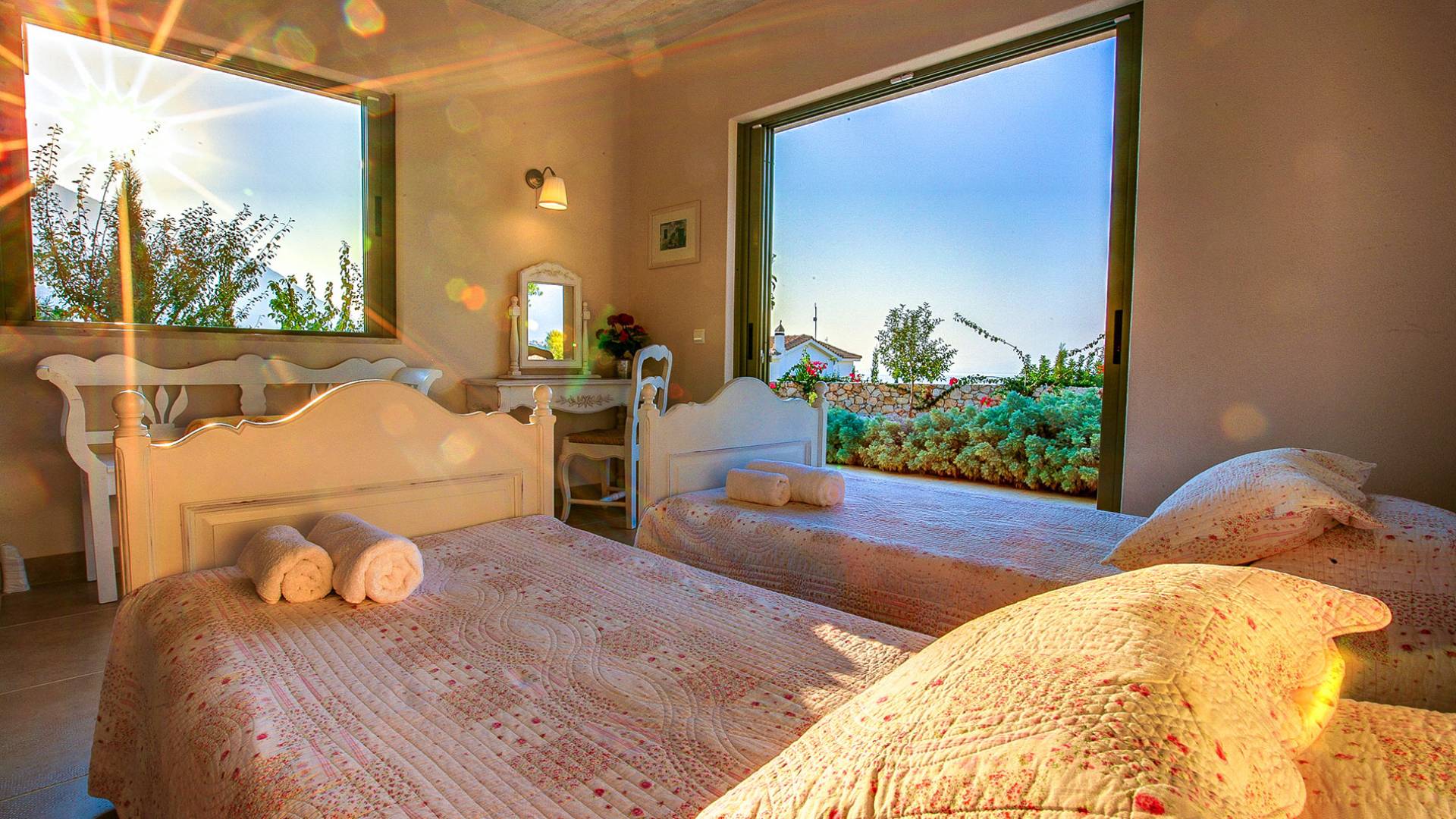 Вилла Linatela расположена на двух этажах, с основными жилыми помещениями на нижнем уровне. На первом этаже находится хорошо оборудованная просторная гостиная с каменным камином и удобными креслами. К гостиной примыкает формальная обеденная зона открытого пространства и отдельная кухня с прямым выходом на затененный балкон с беседкой и обеденным гарнитуром на открытом воздухе. Из кухни на террасу у бассейна ведут примерно 7 ступенек внешней лестницы. Терраса у бассейна переходит в просторную гостиную / обеденную зону в тени перголы, которая идеально подходит для трапез на открытом воздухе или прохладного напитка на закате. При возвращении в главный зал мраморная лестница ведет на первый этаж и в главную спальню. Во всех четырех спальнях виллы есть ванные комнаты. В главной спальне есть отдельная гостиная и открывается к тенистой открытой площадке с садовой мебелью. Две дополнительные спальни с прямым выходом в сад располагают зоной отдыха на открытом воздухе. Из окон открывается великолепный вид на природные пейзажи и Ионическое море.
