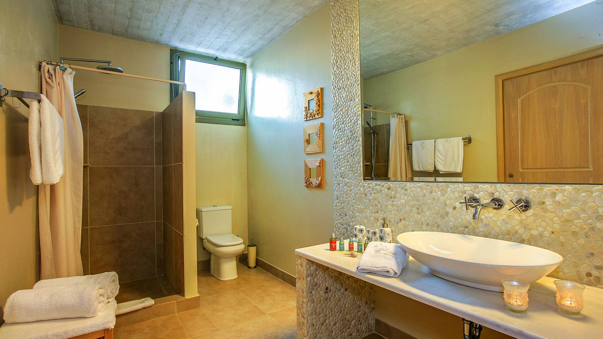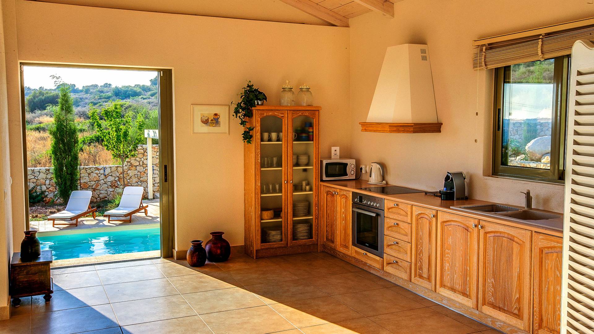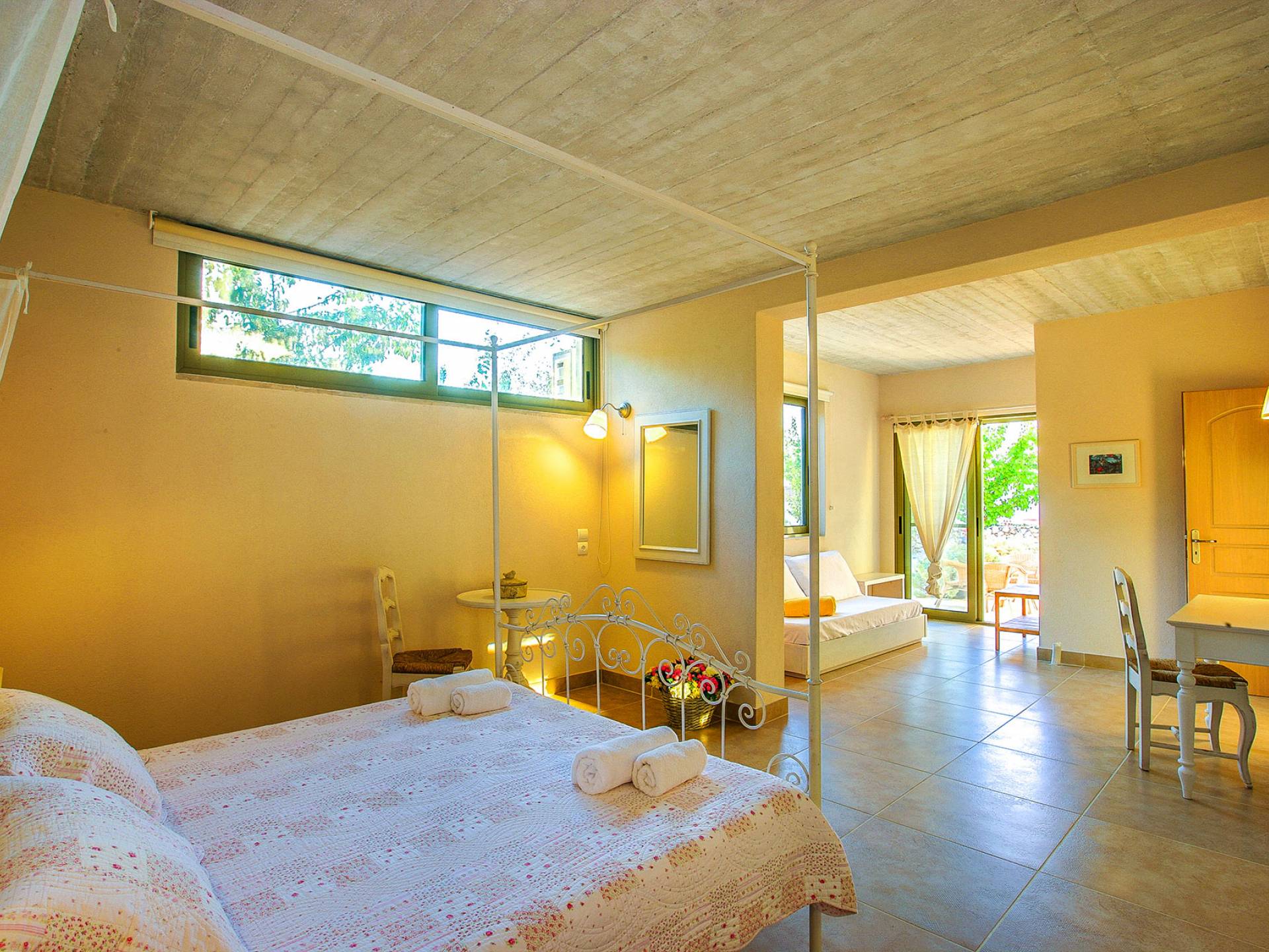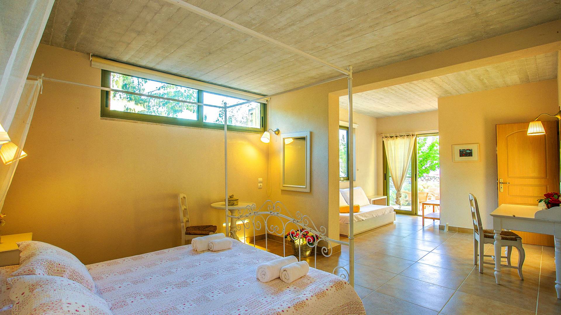Вилла Linatela расположена на двух этажах, с основными жилыми помещениями на нижнем уровне. На первом этаже находится хорошо оборудованная просторная гостиная с каменным камином и удобными креслами. К гостиной примыкает формальная обеденная зона открытого пространства и отдельная кухня с прямым выходом на затененный балкон с беседкой и обеденным гарнитуром на открытом воздухе. Из кухни на террасу у бассейна ведут примерно 7 ступенек внешней лестницы. Терраса у бассейна переходит в просторную гостиную / обеденную зону в тени перголы, которая идеально подходит для трапез на открытом воздухе или прохладного напитка на закате. При возвращении в главный зал мраморная лестница ведет на первый этаж и в главную спальню. Во всех четырех спальнях виллы есть ванные комнаты. В главной спальне есть отдельная гостиная и открывается к тенистой открытой площадке с садовой мебелью. Две дополнительные спальни с прямым выходом в сад располагают зоной отдыха на открытом воздухе. Из окон открывается великолепный вид на природные пейзажи и Ионическое море.