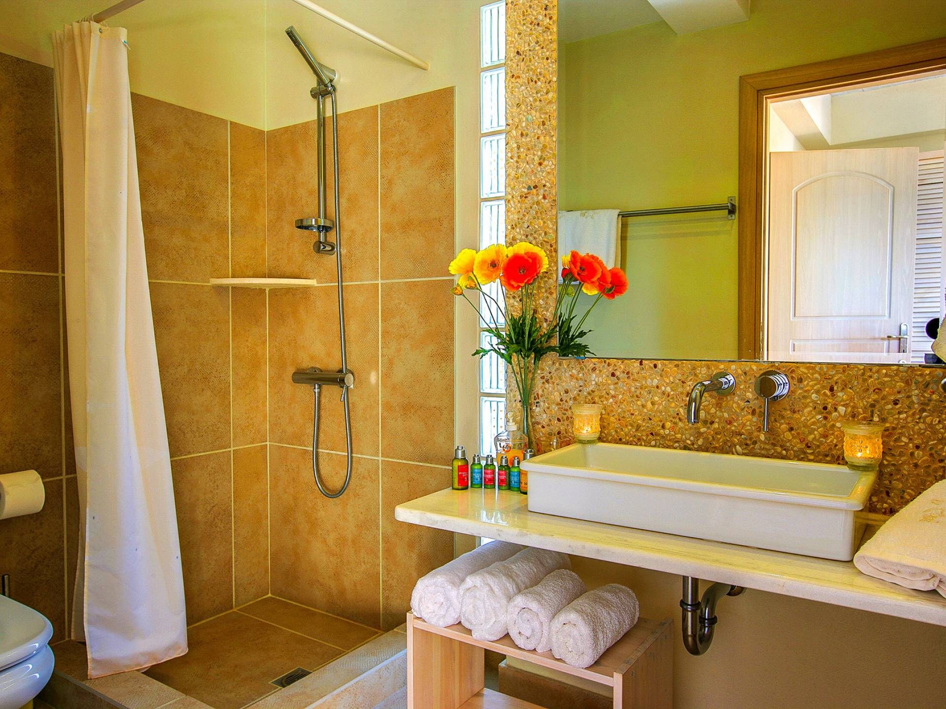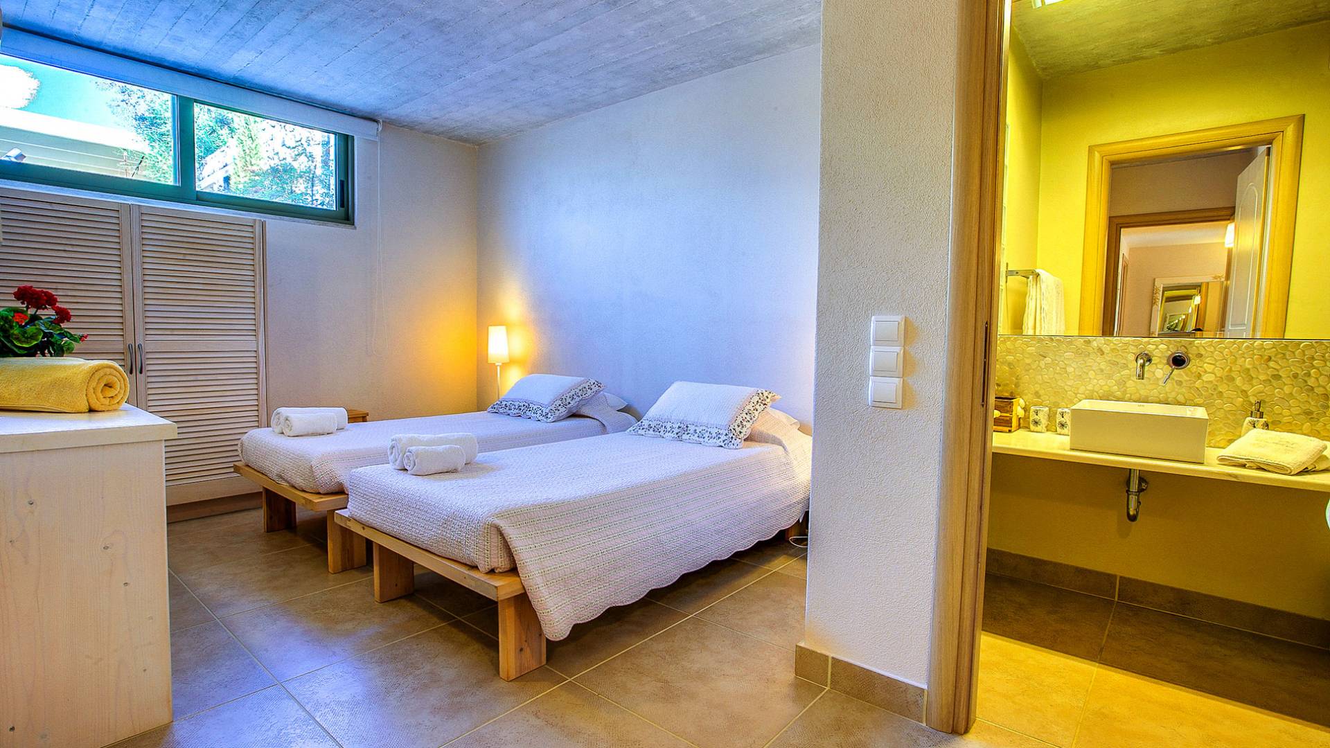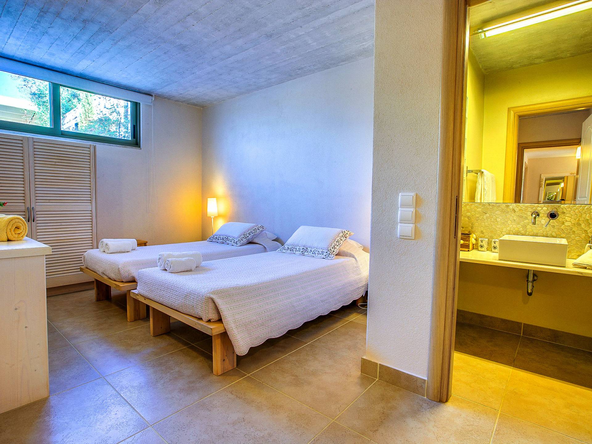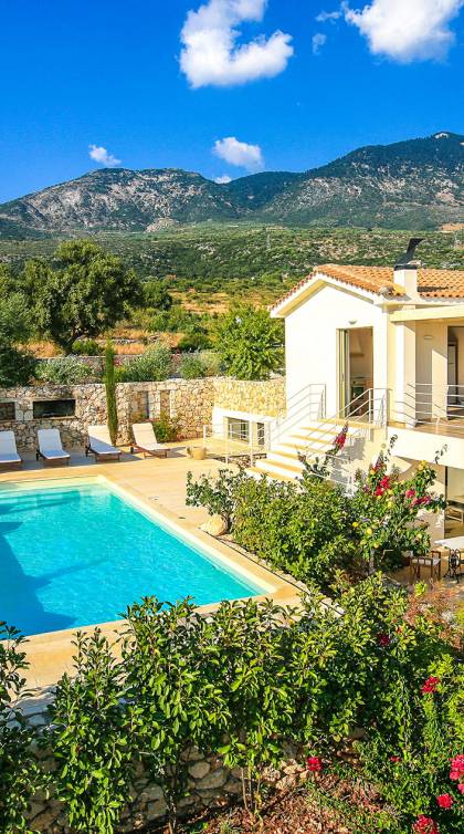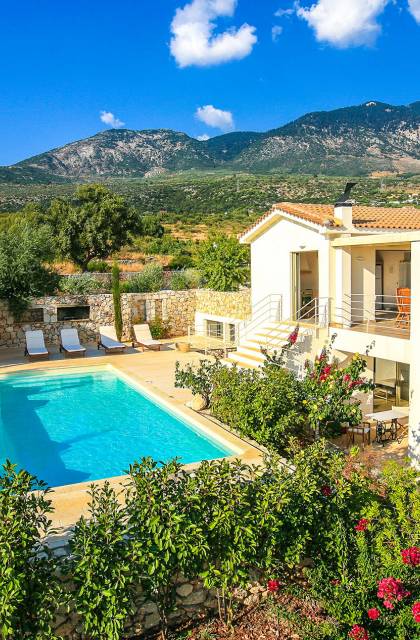 Виллы в Ideales Resort различаются по размеру, но благодаря очень большому пространству на них могут с комфортом разместиться пары, семьи или большие компании друзей. Их убранство изысканное и функциональное с теплыми штрихами, которые оставляют у вас ощущение чего-то знакомого. Их дизайн, позволяющий естественному свету наполнять просторные комнаты, полностью использует панорамный вид на море и гору Айнос (один из 10 национальных заповедников здесь, в Греции). Наконец, все виллы имеют большие сады с барбекю и частные Piscines Ideales | эко бассейны бассейны.