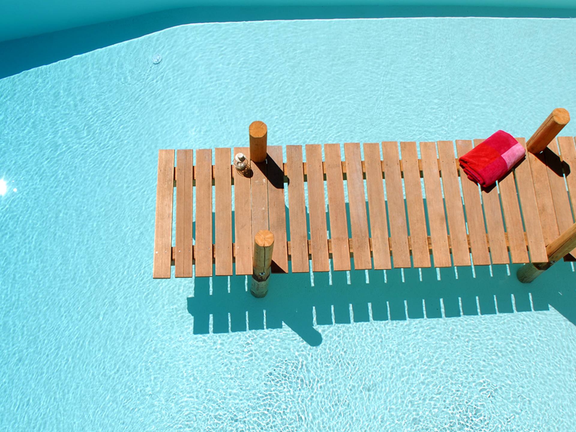 Основным местом для принятия солнечных ванн должен быть сам бассейн, пологий спускающийся с глубины всего 10 см, деревянная пристань для загорания на мелководье уступает место плавательной зоне с глубиной более 2 метров. В стиле бесконечности бассейн выходит за пределы внешнего края, так что потрясающие виды открываются внизу, когда вы плаваете!