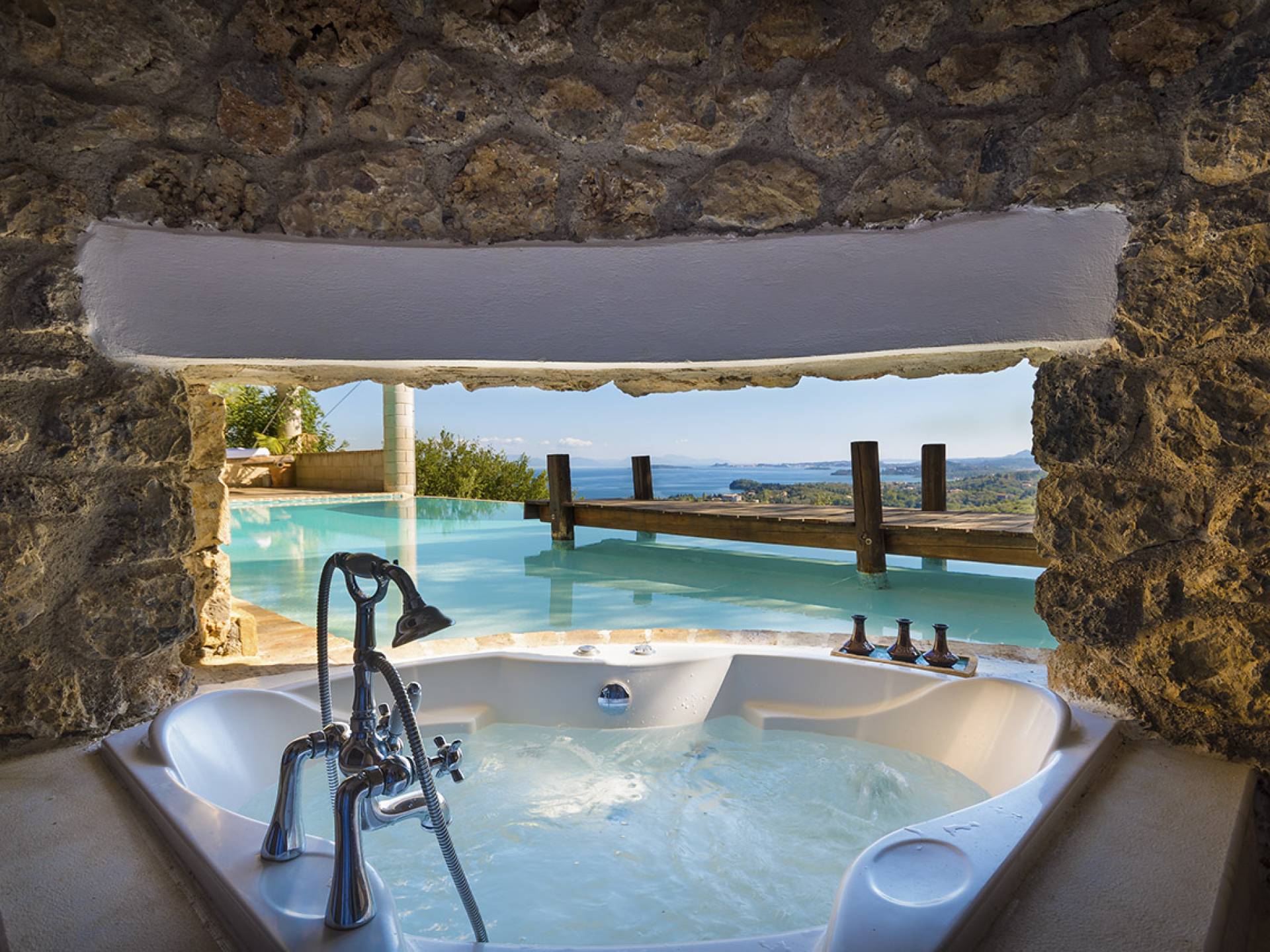 Вопреки стандартному формату описания вилл Villa Bournella Corfu уникальна и поистине романтична. Добраться до него можно по крутой тропе через оливковые рощи недалеко от традиционной деревни Агиос Маркос Бурнелла, откуда открывается вид на окрестности, изучающие ландшафт на многие мили вокруг. Внутренняя часть виллы Bournella Corfu, в каменном двухэтажном здании с круглой башней, дополнена внутренними и открытыми зонами, включая полностью оборудованную кухню, диван-кровать с домашним кинотеатром и гигантский экран у бассейна.