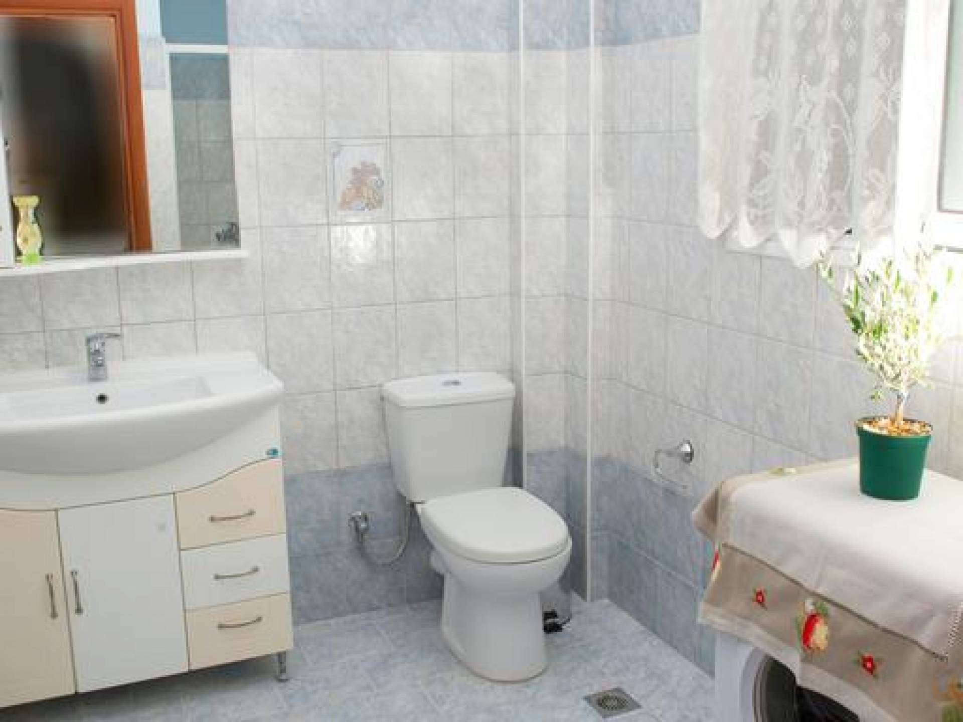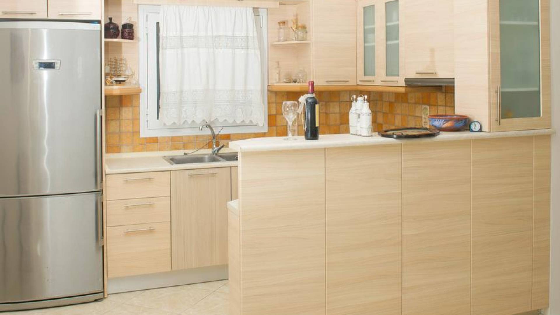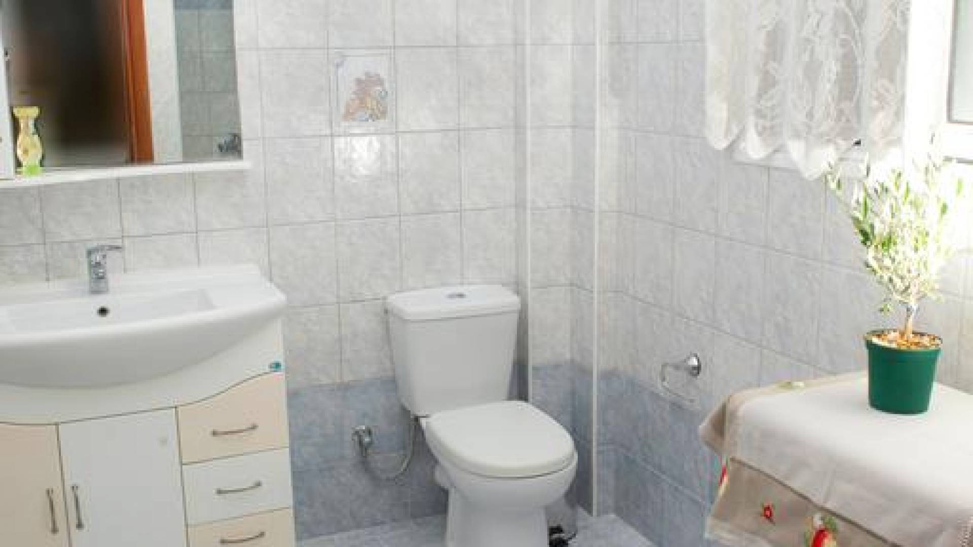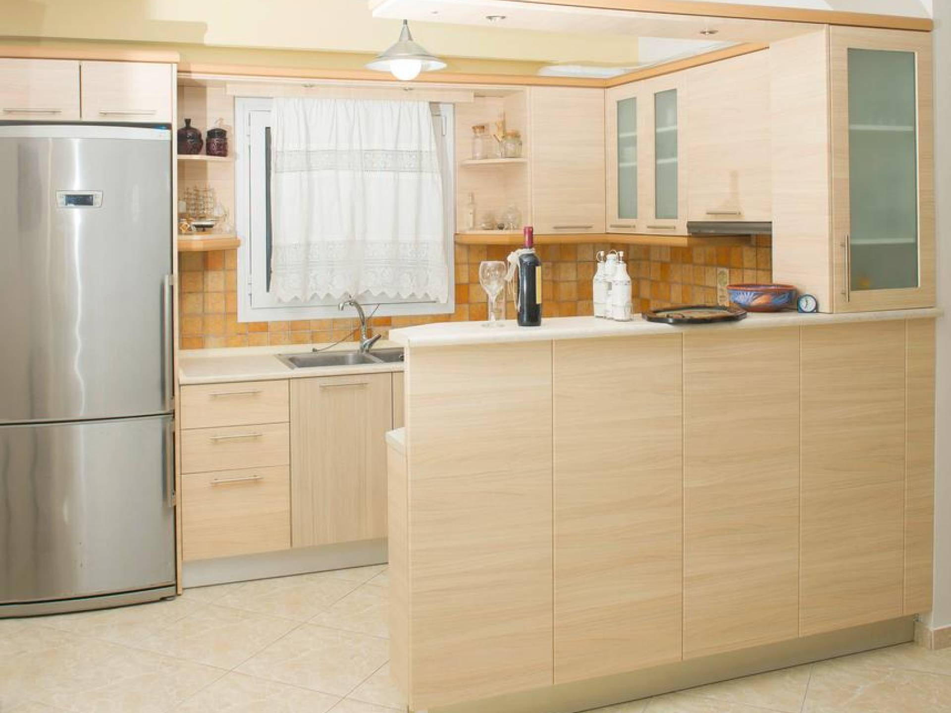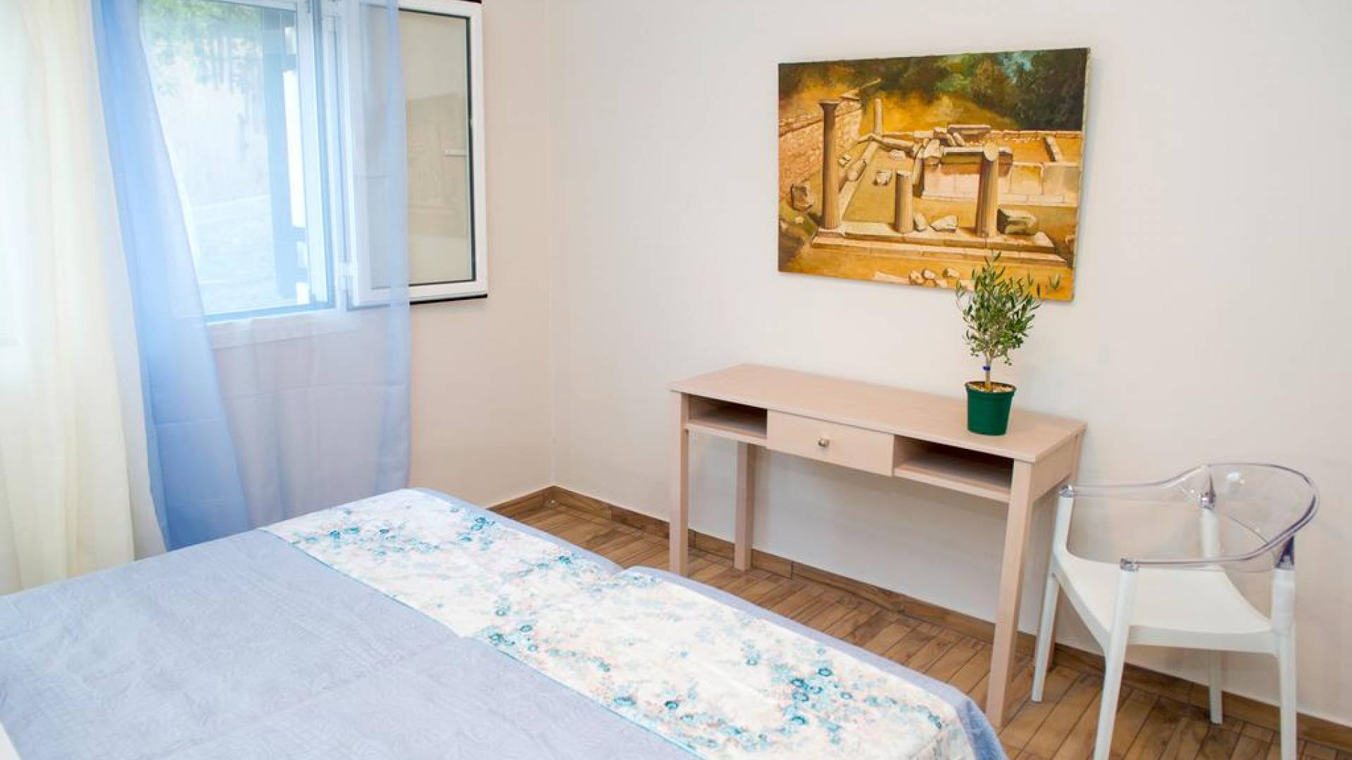 На 1 этаже (лестница) - гостиная с диваном-кроватью, открытым камином, двумя небольшими диванчиками, журнальным столиком, телевизором, балконом. Также есть санузел с кабиной (душевой кабиной), феном, стиральной машиной. Двуспальная кровать с занавесками, выносной потолочный вентилятор с балконом и очень красивый вид на бассейн, сад и сельскую местность. На 2-м этаже (лестница) находится большая кухня со всем необходимым оборудованием, таким как духовка, холодильник и электрическая кухня с обеденным столом из железа и стекла, с которой открывается панорамный вид на дворец Ахиллион (который находится в 3 км от виллы). Старая крепость, море, бассейн и город Корфу.