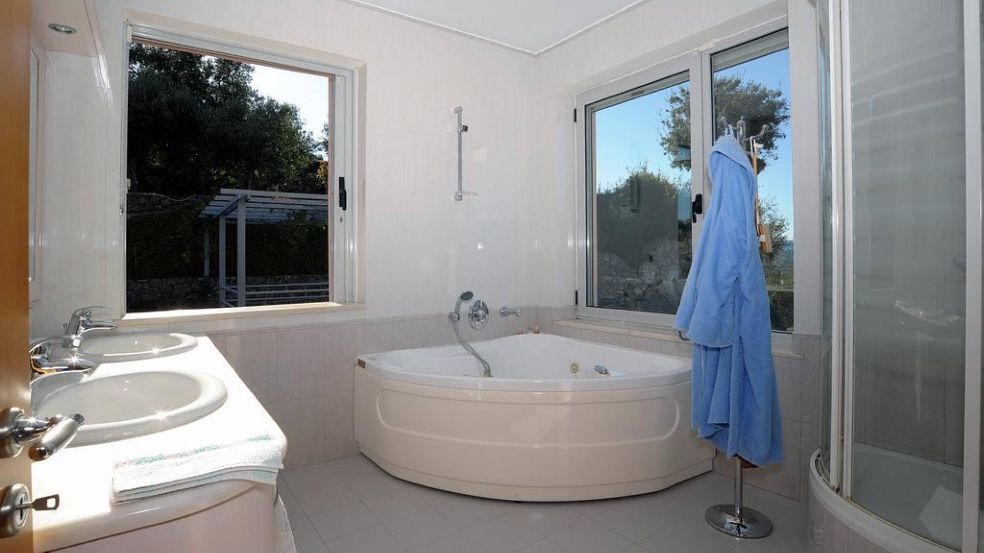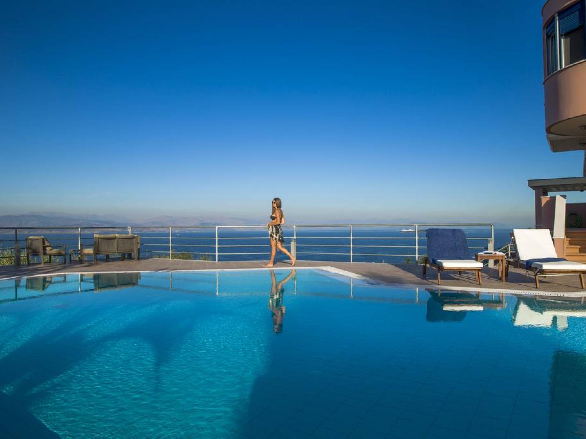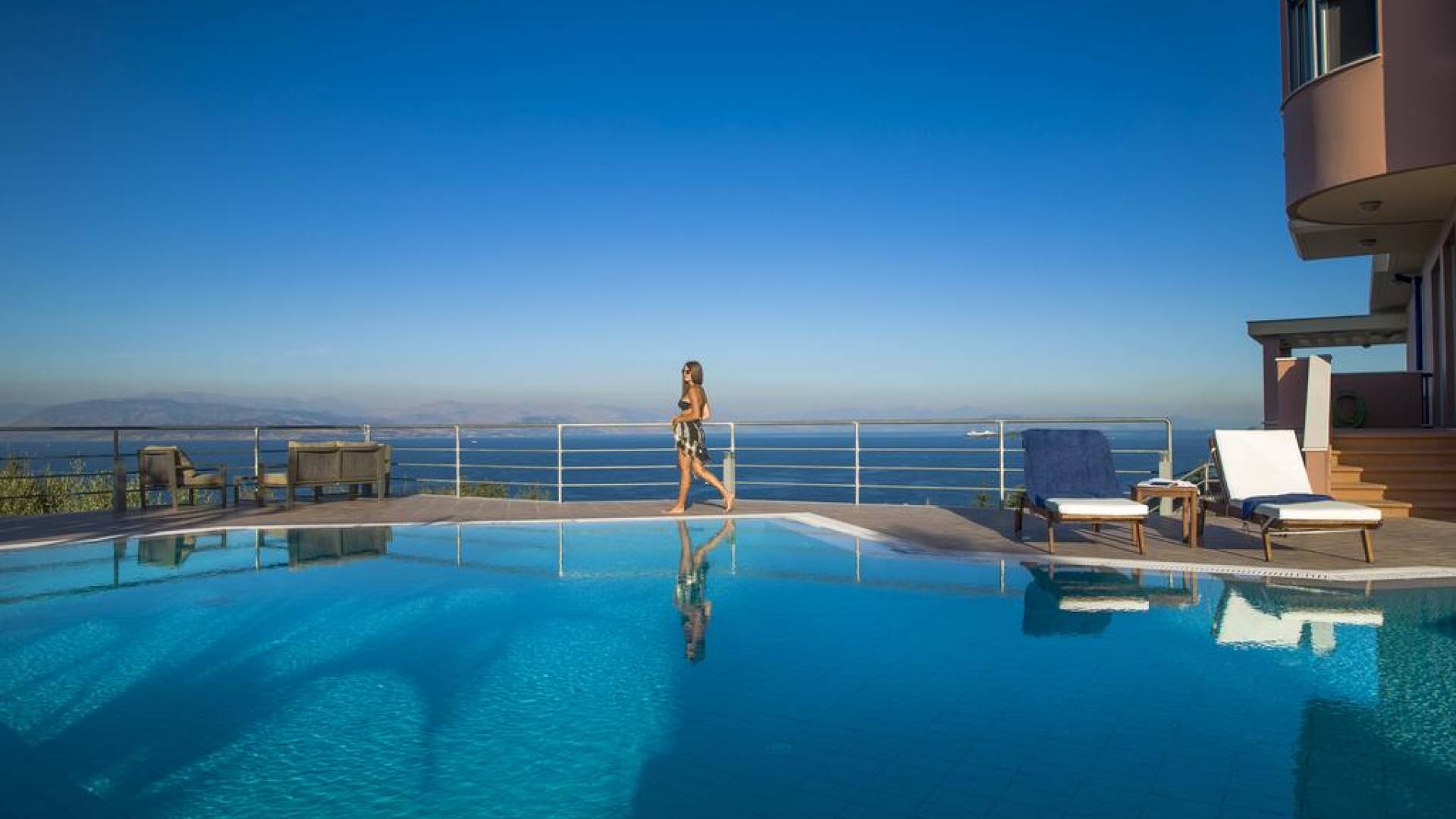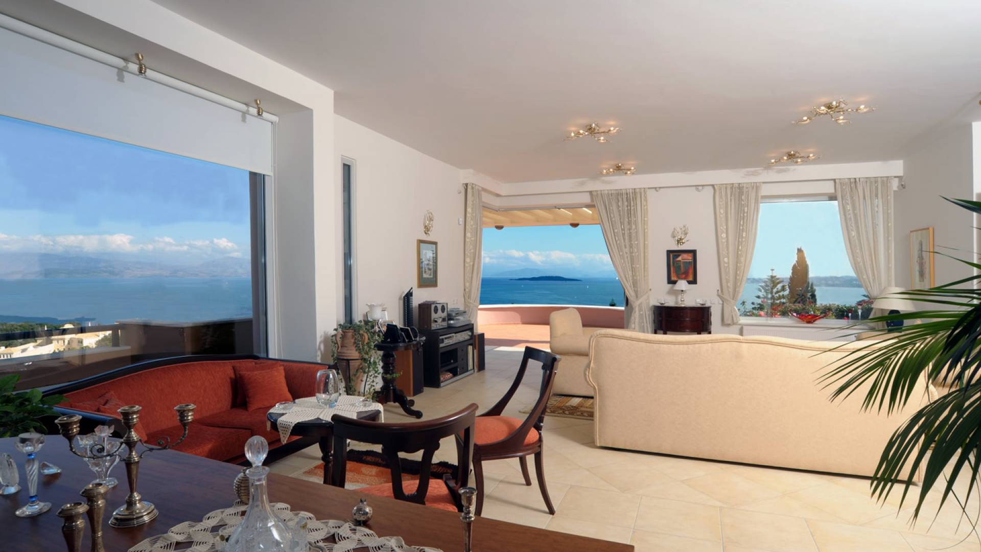 Вилла Moon Reach Corfu площадью 600 кв. метров на трех уровнях со следующими характеристиками: 5 спален, 3 обеденных зоны, 2 полностью оборудованные гостиные и 1 гостиная, 1 офисное помещение с диваном и письменным столом, 5 ванных комнат, 1 из них есть джакузи (3 ванные), 3 гостевых туалета, один из них в саду, гараж на 3 машины, электрические жалюзи, сигнализация и камеры наблюдения, 1 встроенный барбекю с духовкой для выпечки, тренажерный зал с беговой дорожкой, велотренажер и утяжелители, 2 полностью оборудованные кухни, Wi-Fi во всем доме, полностью благоустроенный сад 2000 м2 с бассейном 11 х 5,5 метров с захватывающим видом на море и окружающие горы.