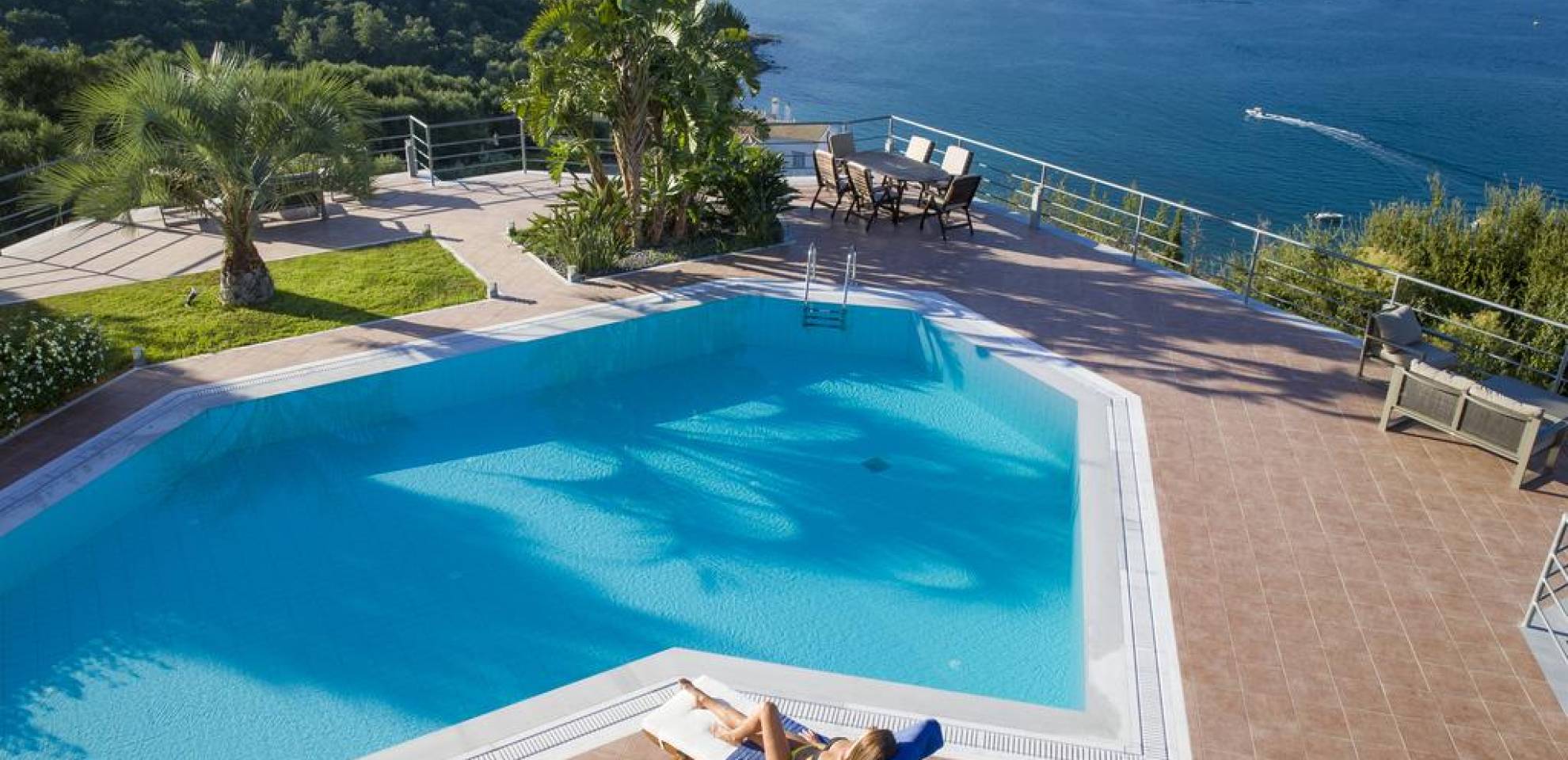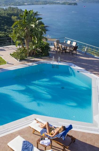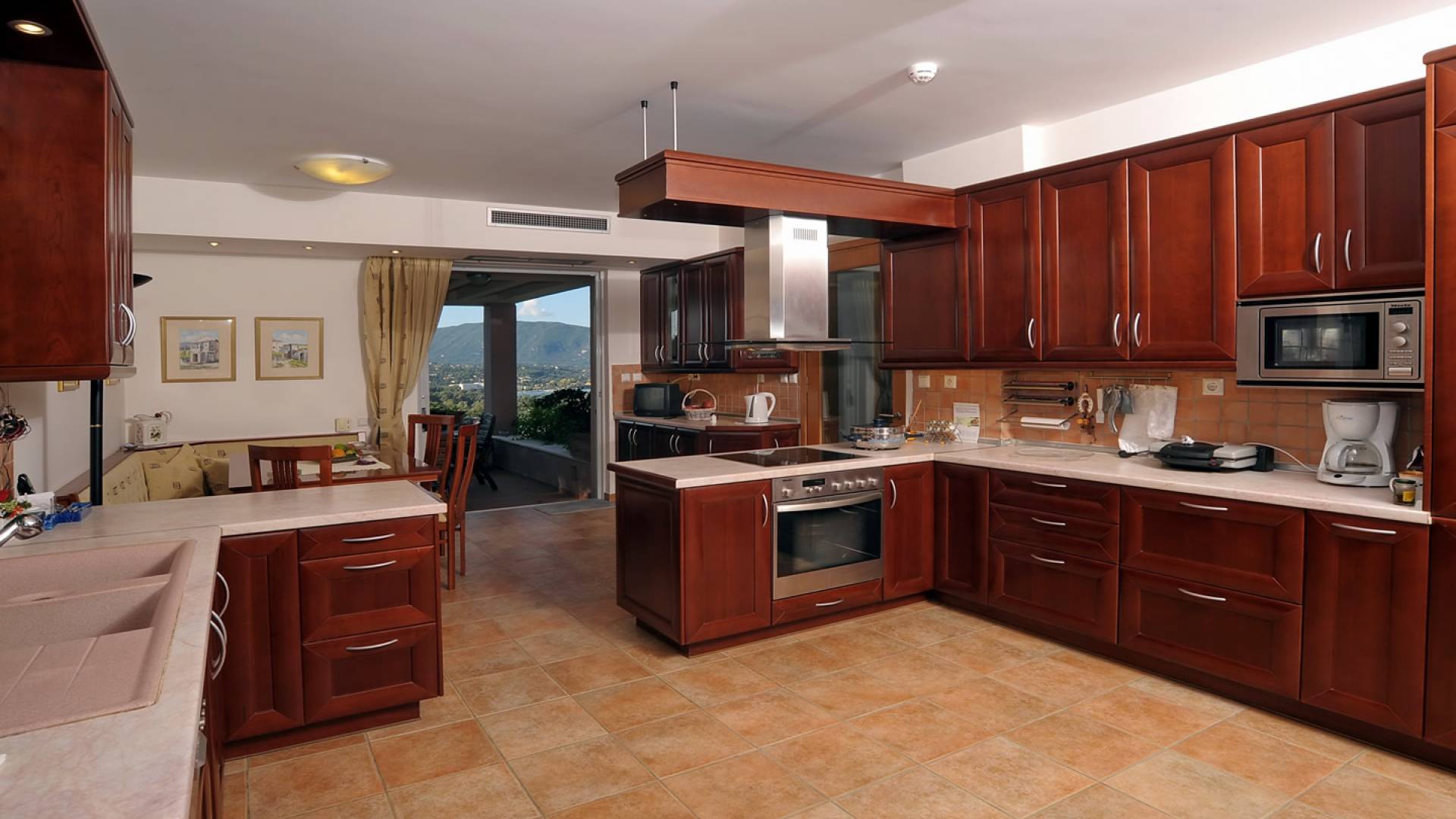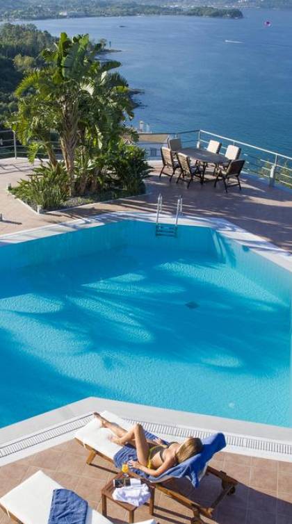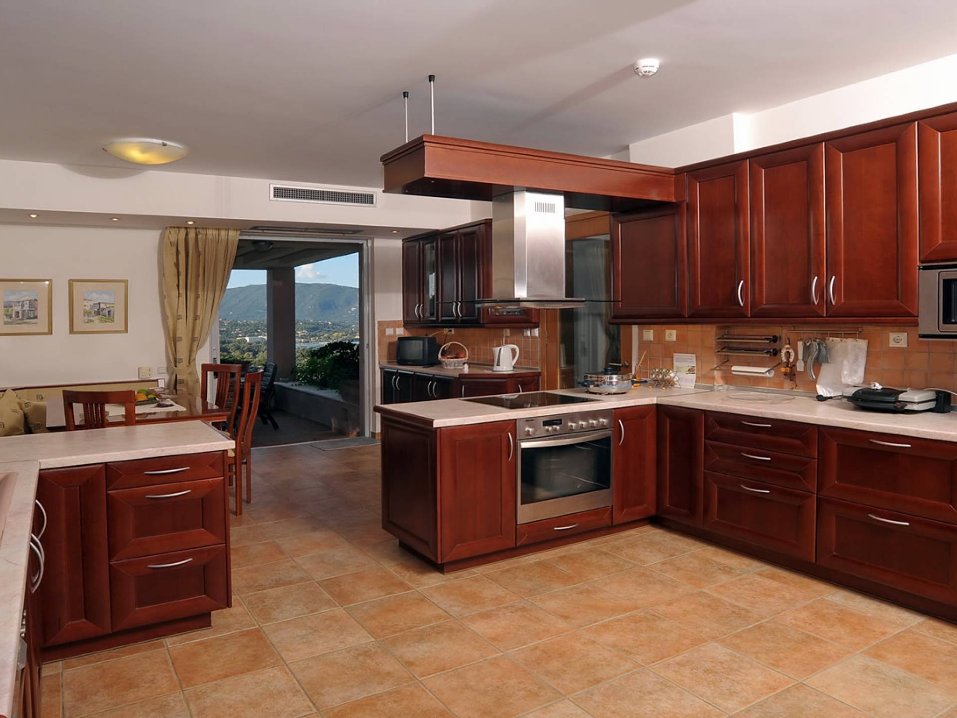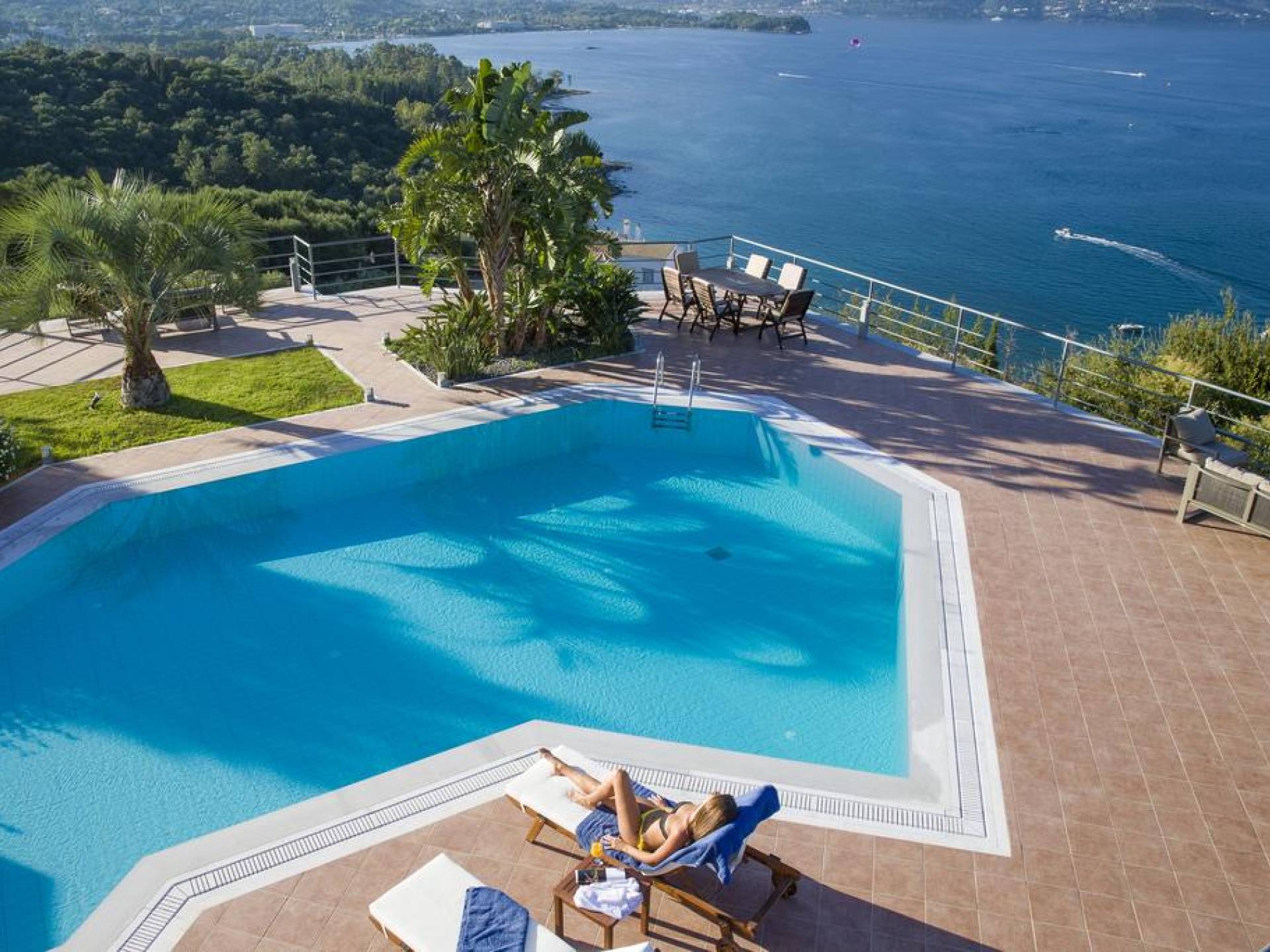 Вилла Moon Reach Corfu площадью 600 кв. метров на трех уровнях со следующими характеристиками: 5 спален, 3 обеденных зоны, 2 полностью оборудованные гостиные и 1 гостиная, 1 офисное помещение с диваном и письменным столом, 5 ванных комнат, 1 из них есть джакузи (3 ванные), 3 гостевых туалета, один из них в саду, гараж на 3 машины, электрические жалюзи, сигнализация и камеры наблюдения, 1 встроенный барбекю с духовкой для выпечки, тренажерный зал с беговой дорожкой, велотренажер и утяжелители, 2 полностью оборудованные кухни, Wi-Fi во всем доме, полностью благоустроенный сад 2000 м2 с бассейном 11 х 5,5 метров с захватывающим видом на море и окружающие горы.