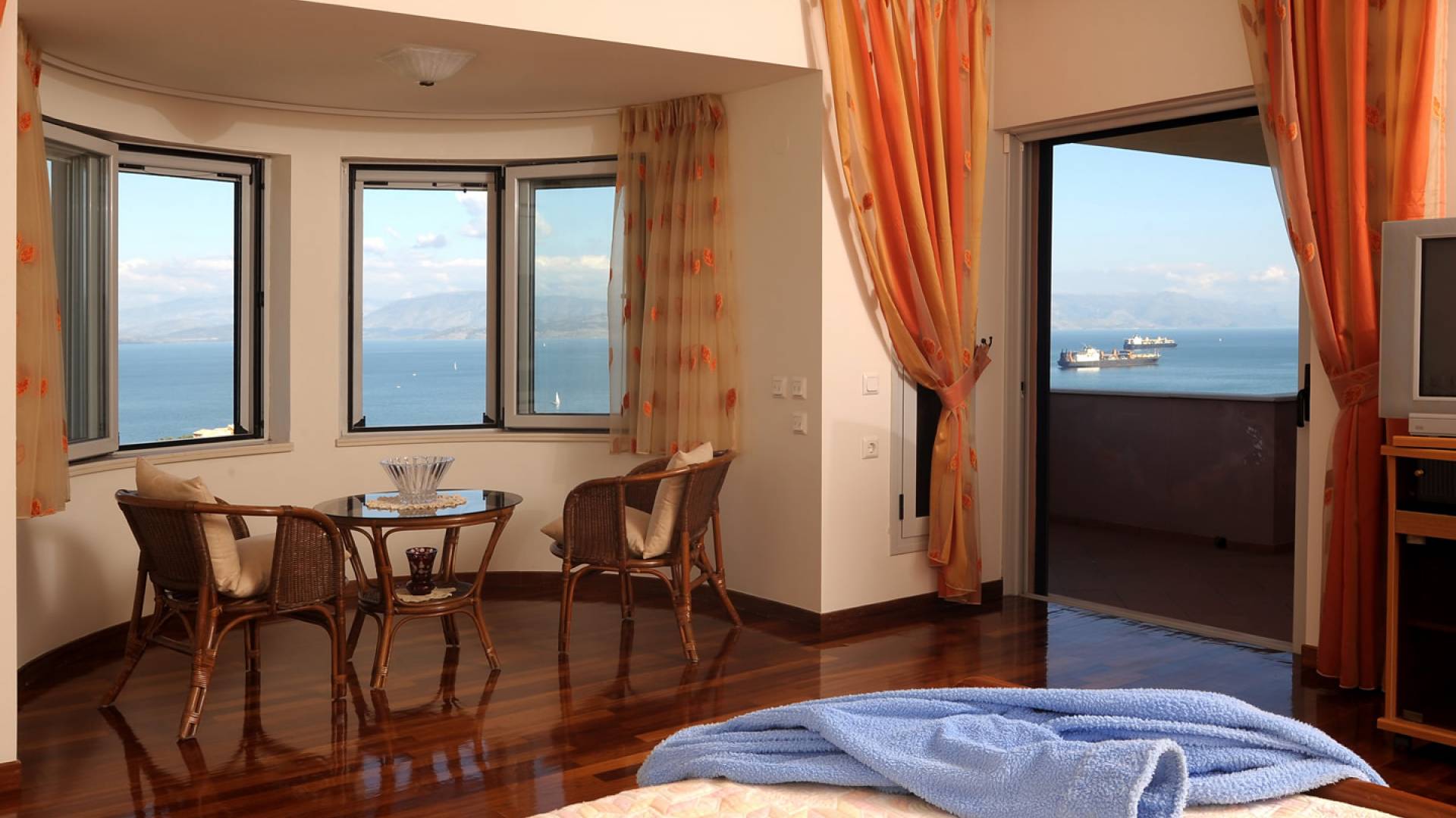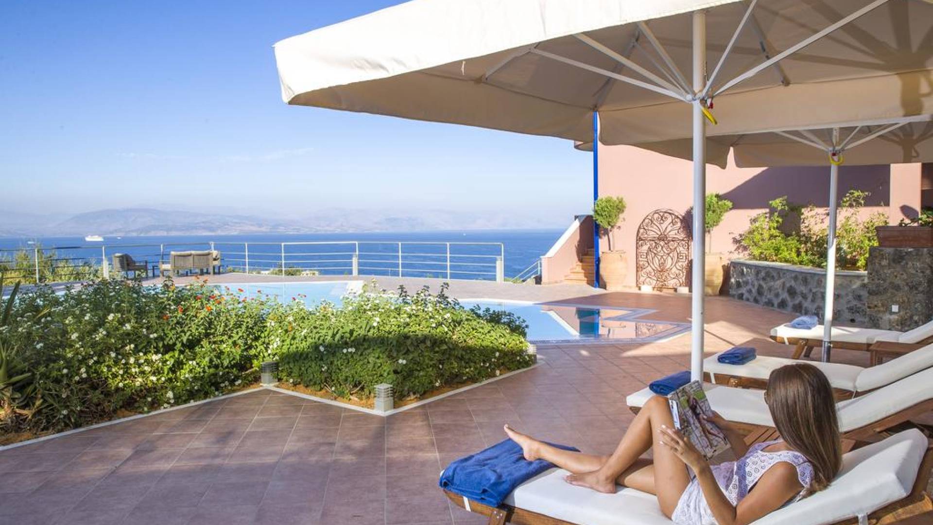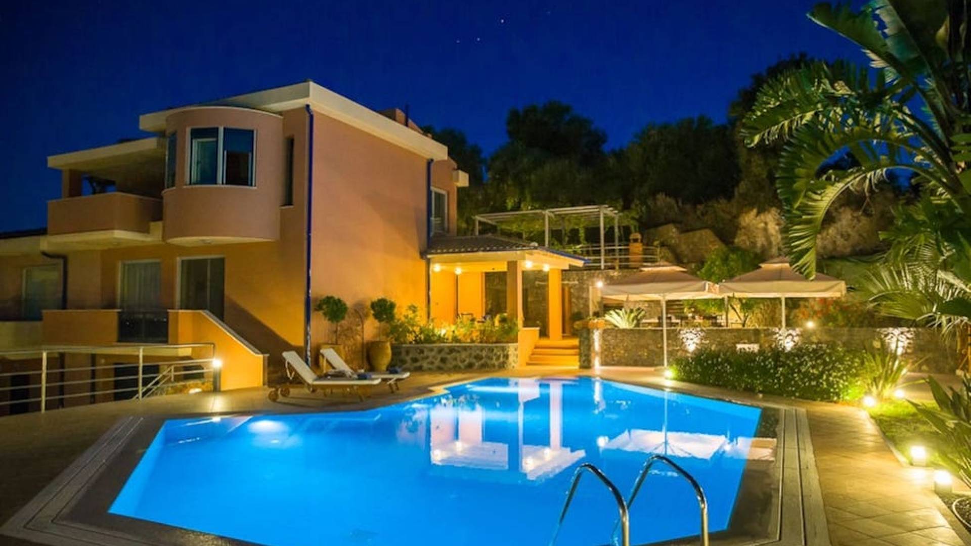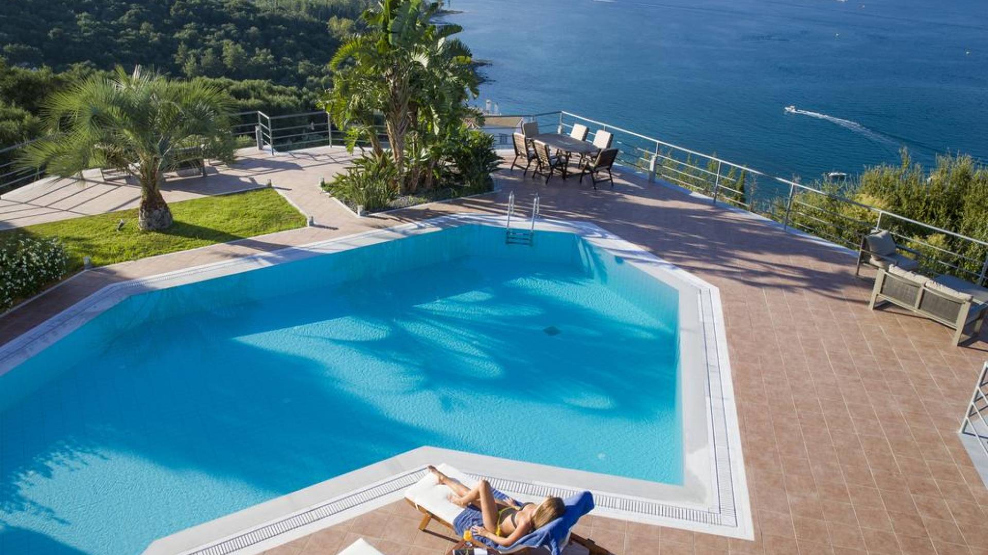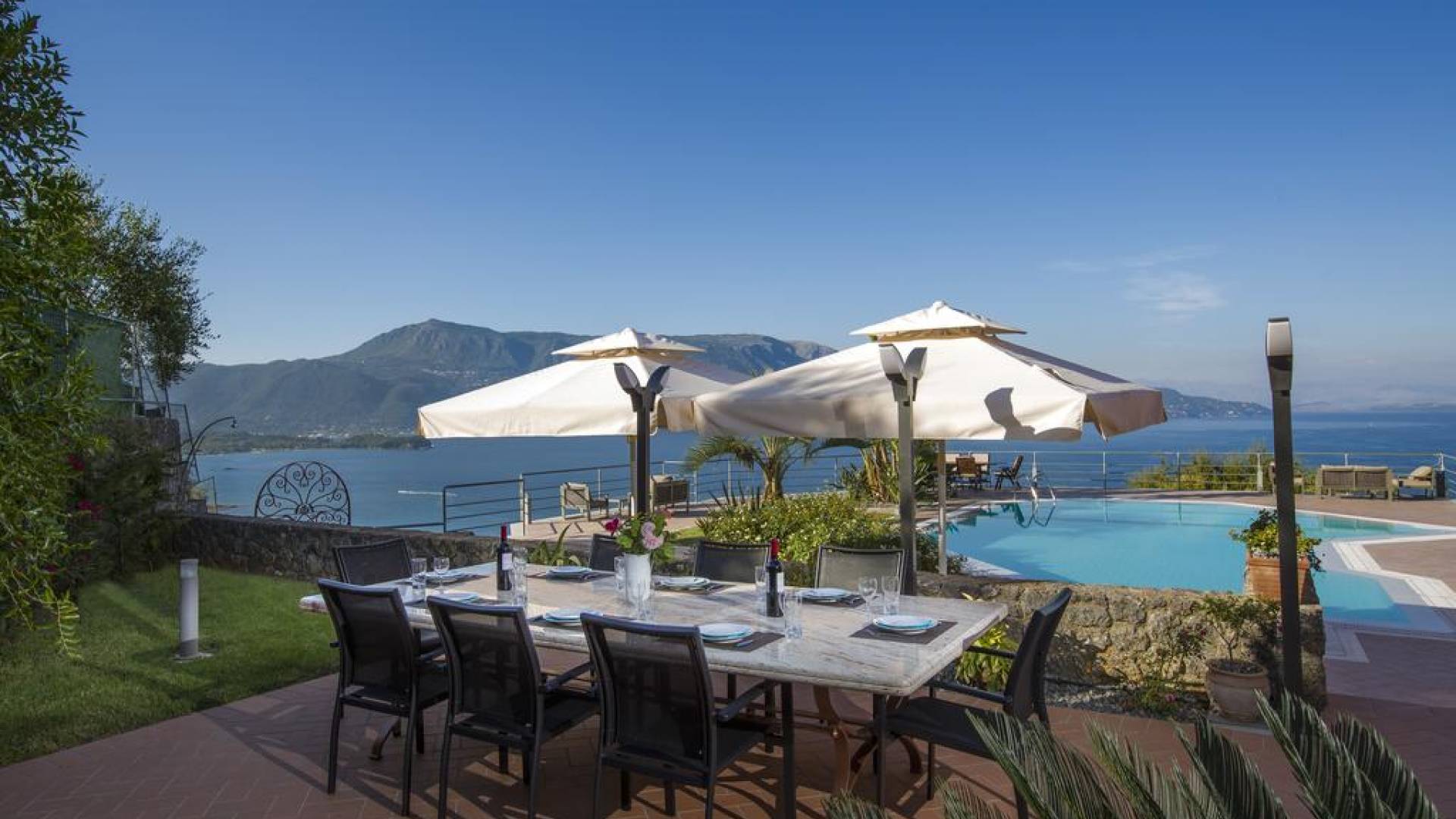 Вилла Moon Reach Corfu площадью 600 кв. метров на трех уровнях со следующими характеристиками: 5 спален, 3 обеденных зоны, 2 полностью оборудованные гостиные и 1 гостиная, 1 офисное помещение с диваном и письменным столом, 5 ванных комнат, 1 из них есть джакузи (3 ванные), 3 гостевых туалета, один из них в саду, гараж на 3 машины, электрические жалюзи, сигнализация и камеры наблюдения, 1 встроенный барбекю с духовкой для выпечки, тренажерный зал с беговой дорожкой, велотренажер и утяжелители, 2 полностью оборудованные кухни, Wi-Fi во всем доме, полностью благоустроенный сад 2000 м2 с бассейном 11 х 5,5 метров с захватывающим видом на море и окружающие горы.